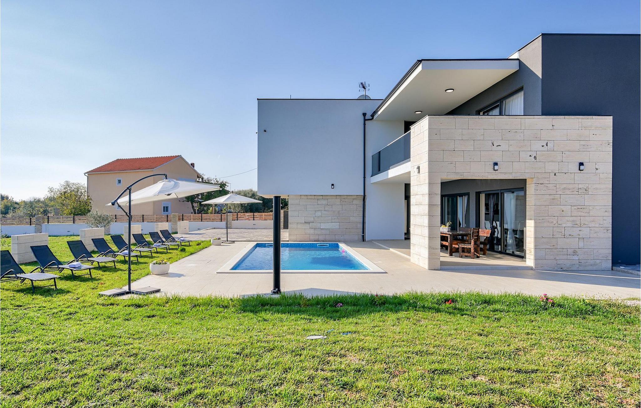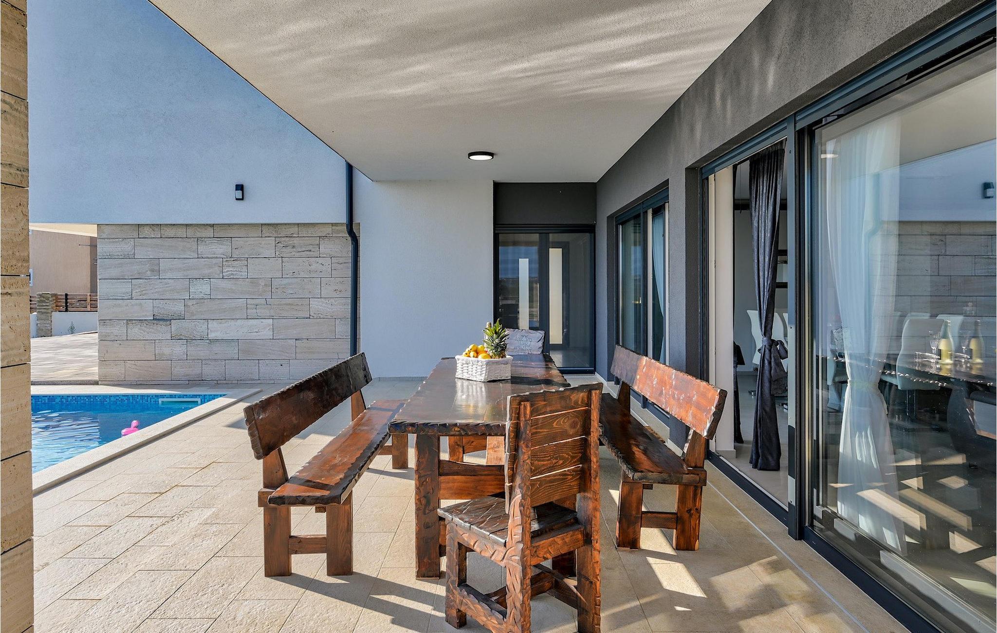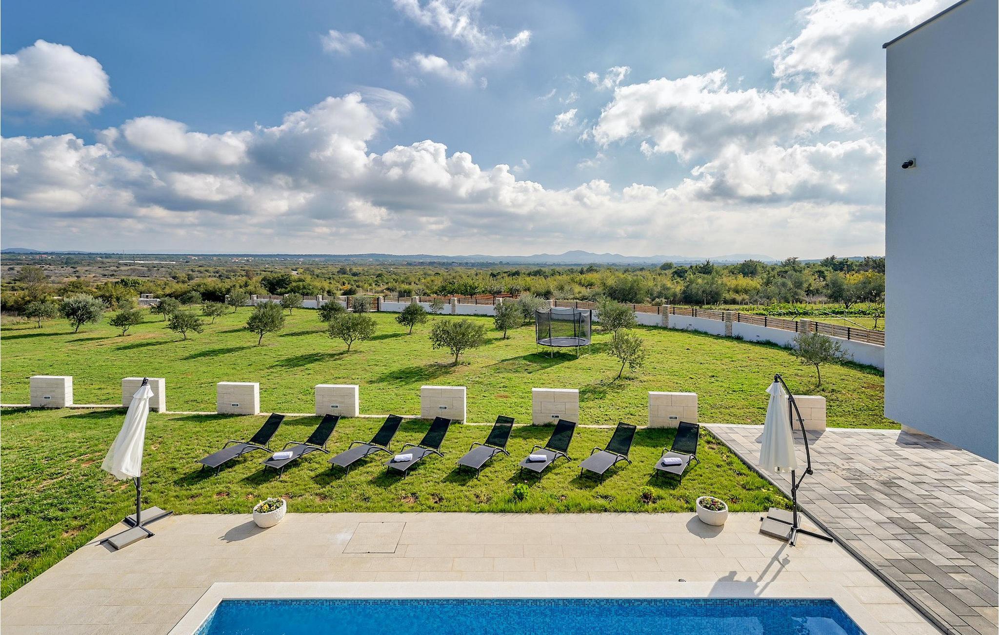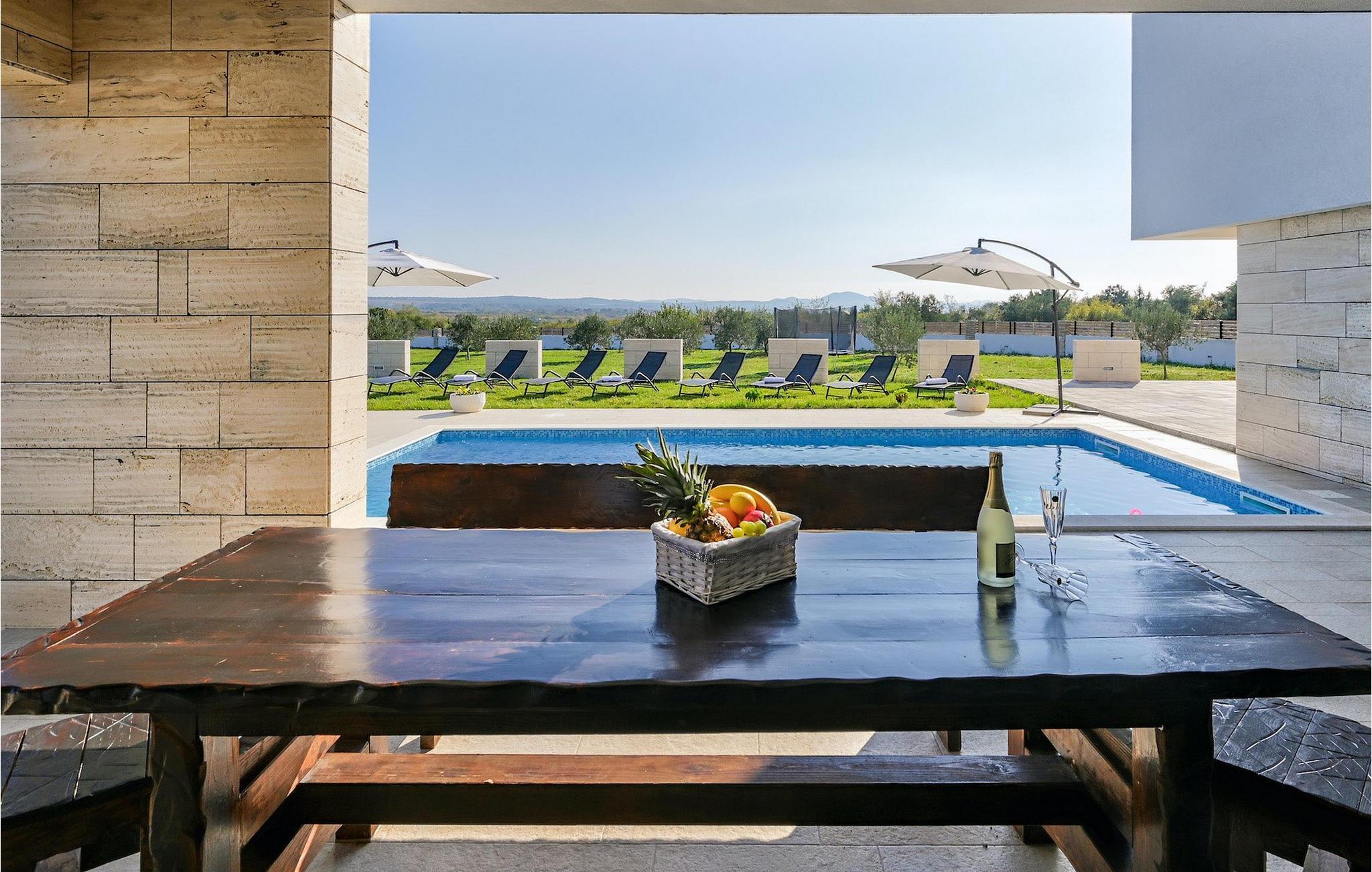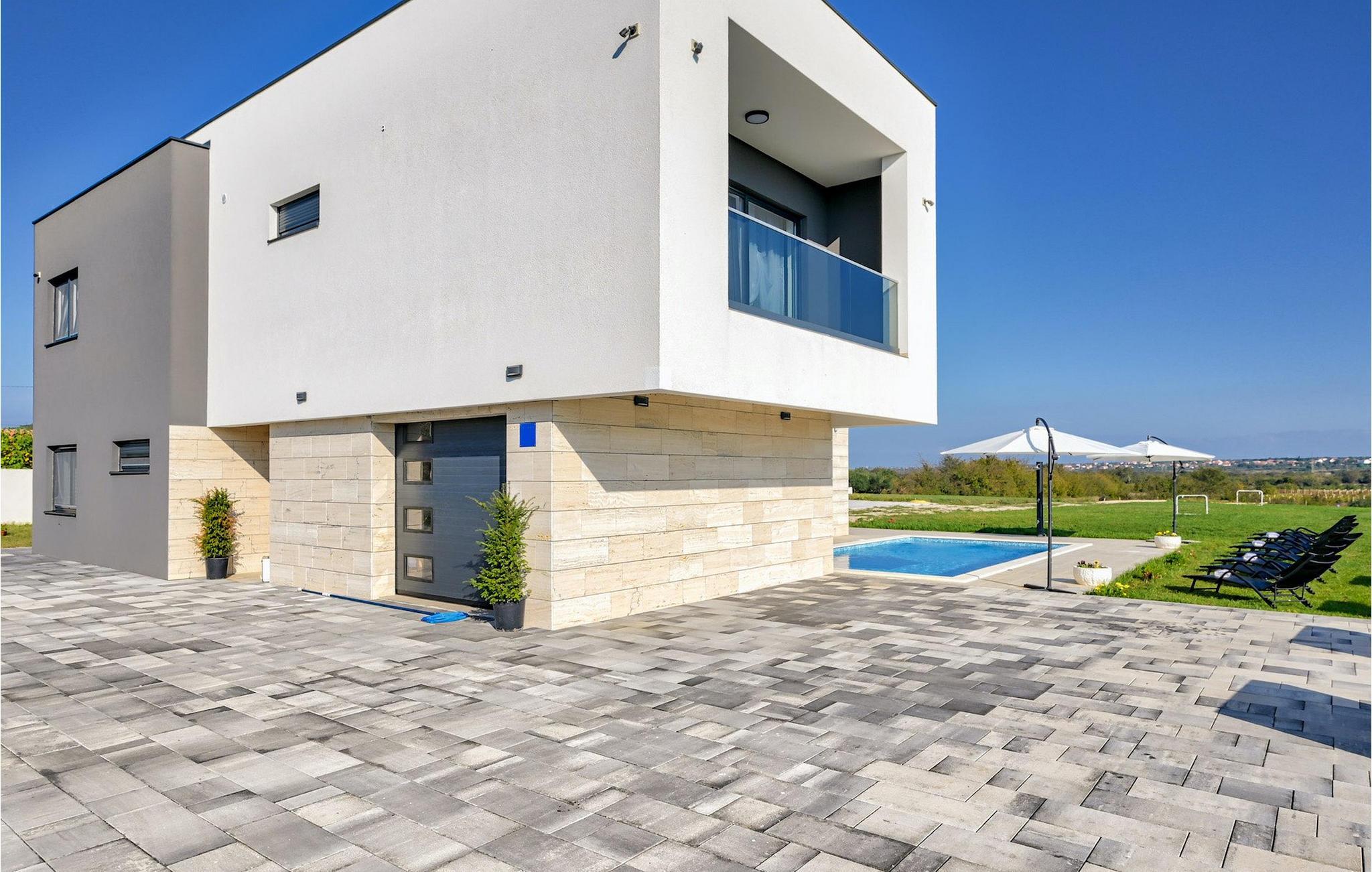 If you are looking for a beautiful, modern villa close to the sea and untouched nature, Villa FA Exclusive is your right choice! This wonderful villa can accommodate 8 guests in 4 bedrooms and it has much more to offer. If you are looking for entertainment or a little work-out session you will find some fitness equipment and darts on the ground floor. The ground floor also offers a spacious, contemporary furnished area with a living and dining room and a nice, furnished kitchen. Here you will also find a bedroom, while the other 3 are located on the first floor. All the bedrooms have double beds, air conditioners and TVs at disposal and the ones on the floor also have en suite bathrooms. The outdoor area with the inviting pool is the perfect place for sunbathing and relaxation on one of the sun loungers. If you are traveling with kids the garden disposes over a playground for children as well as a trampoline. For al fresco dinner nights there is also a grill available and the first beach is only 3 km away.Die Villa FA Exclusive befindet sich in einen kleinen Ort Donje Rastane gegenüber der Pasman Insel und nur etwa 20 km entfernt von einem der sehenswerten Touristenzentrums Dalmatiens - Zadar. Diese Lage ist perfekt für diejenigen die gerne am Strand ausruhen, aber auch für aktive Urlauber da der Nationalpark Paklenica nur 50 km entfernt ist. In der Nähe befindet sich auch der Vrana See mit schöner Natu, zwischen Meer und den Bergen. Hier kann man schön wandern, Radtouren machen und die Natur bewundern. Besuchen Sie auch unbedingt die wunderschöne Stadt Zadar mit zahlreichen kulturellen und gastronomischen Angebot. Besuchen Sie viele Museen, bewundern Sie die antike Architektur oder genießen Sie natürliche Strände und das aktive Nachtleben. Im Stadtzentrum von Zadar dürfen Sie nicht verpassen das alte Forum mit der Kirche des hl. Donatus (aus den 9. Jahrhundert) zu besuchen. Dies ist eines der wichtigsten Denkmale von Zadar, mit der Kirche im romanischen Stil erbaut.