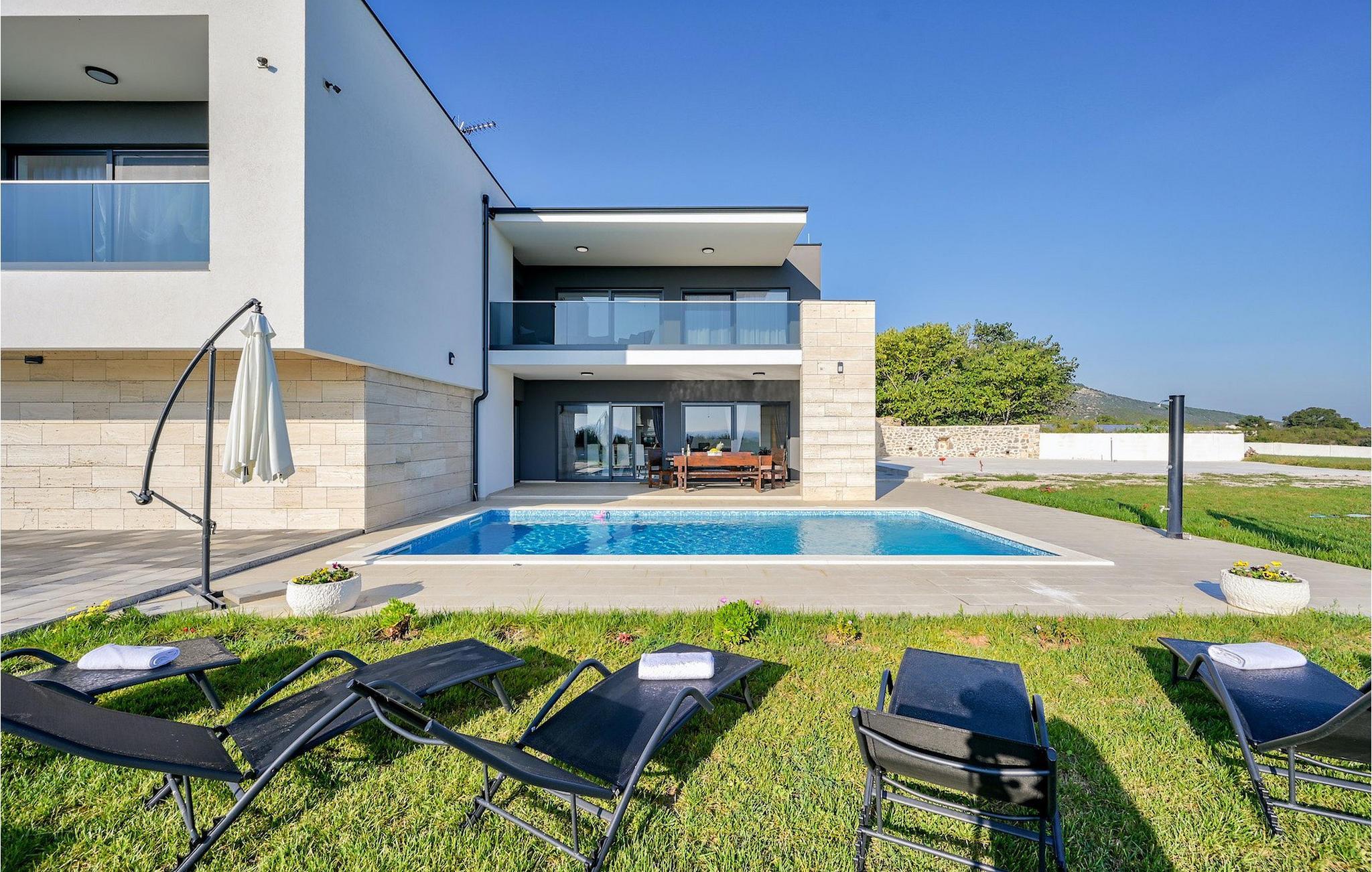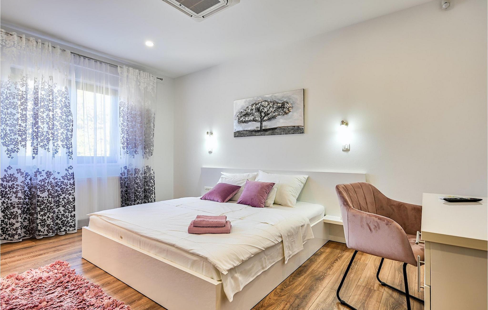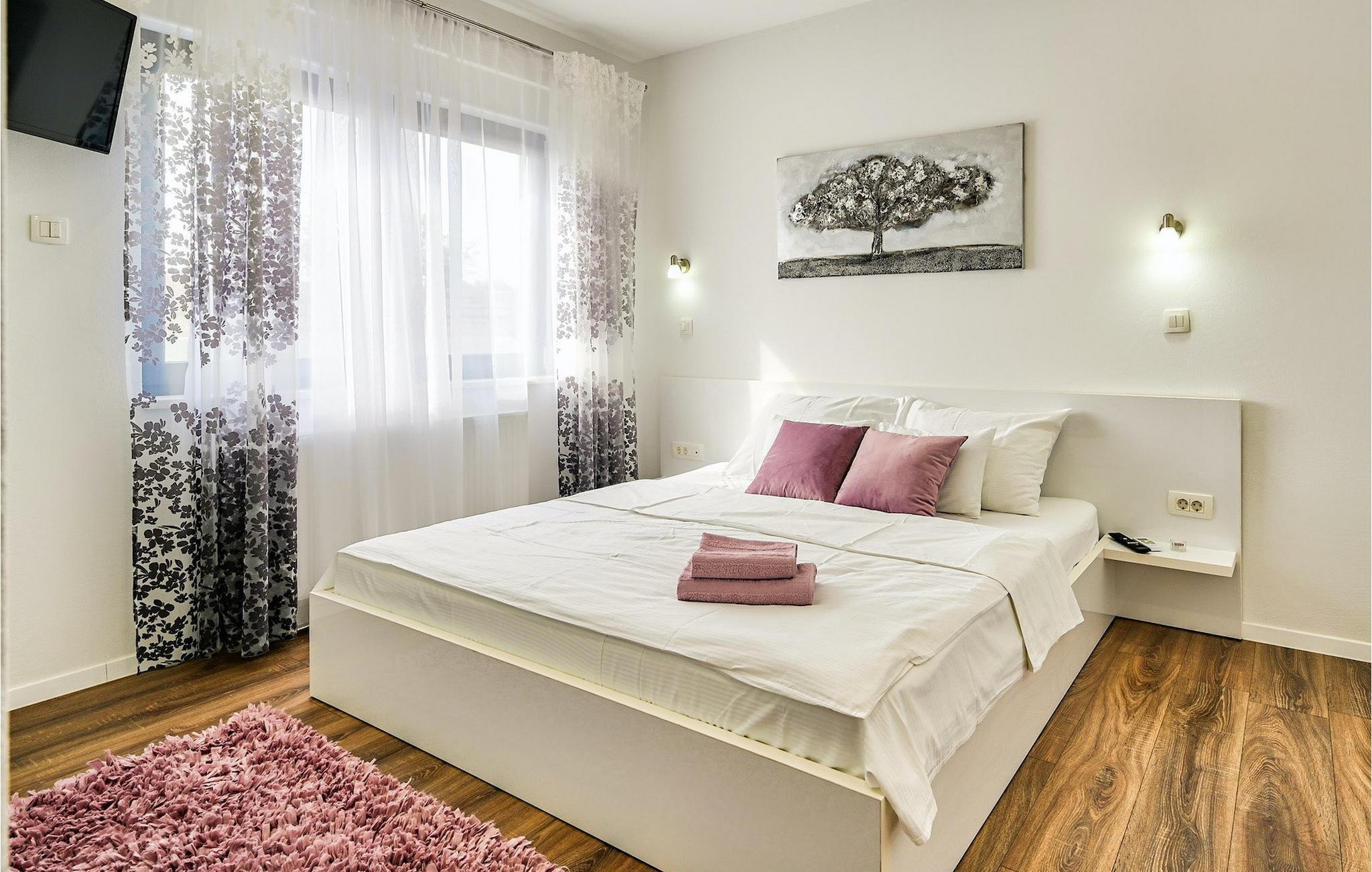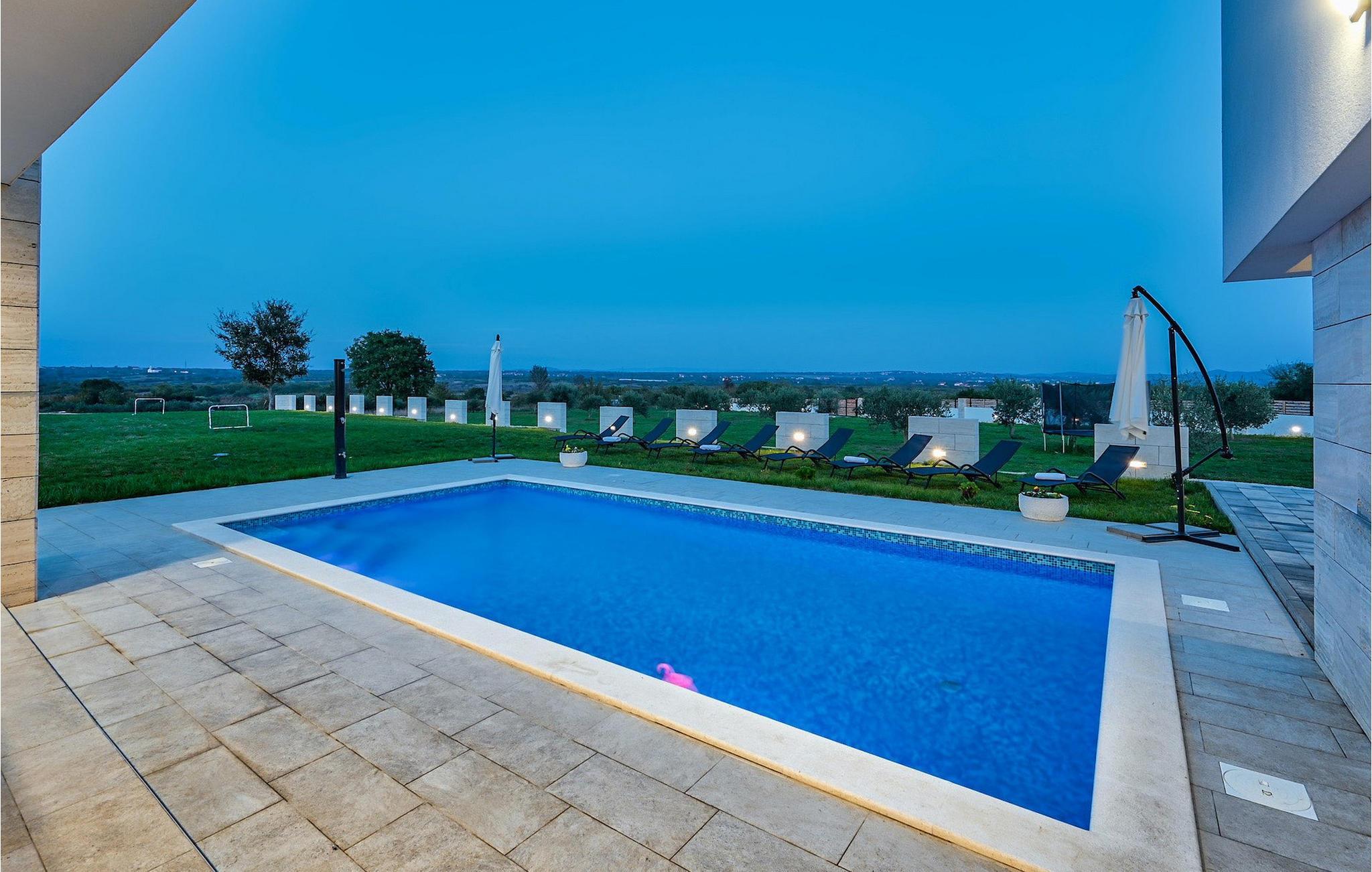 If you are looking for a beautiful, modern villa close to the sea and untouched nature, Villa FA Exclusive is your right choice! This wonderful villa can accommodate 8 guests in 4 bedrooms and it has much more to offer. If you are looking for entertainment or a little work-out session you will find some fitness equipment and darts on the ground floor. The ground floor also offers a spacious, contemporary furnished area with a living and dining room and a nice, furnished kitchen. Here you will also find a bedroom, while the other 3 are located on the first floor. All the bedrooms have double beds, air conditioners and TVs at disposal and the ones on the floor also have en suite bathrooms. The outdoor area with the inviting pool is the perfect place for sunbathing and relaxation on one of the sun loungers. If you are traveling with kids the garden disposes over a playground for children as well as a trampoline. For al fresco dinner nights there is also a grill available and the first beach is only 3 km away.Die Villa FA Exclusive befindet sich in einen kleinen Ort Donje Rastane gegenüber der Pasman Insel und nur etwa 20 km entfernt von einem der sehenswerten Touristenzentrums Dalmatiens - Zadar. Diese Lage ist perfekt für diejenigen die gerne am Strand ausruhen, aber auch für aktive Urlauber da der Nationalpark Paklenica nur 50 km entfernt ist. In der Nähe befindet sich auch der Vrana See mit schöner Natu, zwischen Meer und den Bergen. Hier kann man schön wandern, Radtouren machen und die Natur bewundern. Besuchen Sie auch unbedingt die wunderschöne Stadt Zadar mit zahlreichen kulturellen und gastronomischen Angebot. Besuchen Sie viele Museen, bewundern Sie die antike Architektur oder genießen Sie natürliche Strände und das aktive Nachtleben. Im Stadtzentrum von Zadar dürfen Sie nicht verpassen das alte Forum mit der Kirche des hl. Donatus (aus den 9. Jahrhundert) zu besuchen. Dies ist eines der wichtigsten Denkmale von Zadar, mit der Kirche im romanischen Stil erbaut.