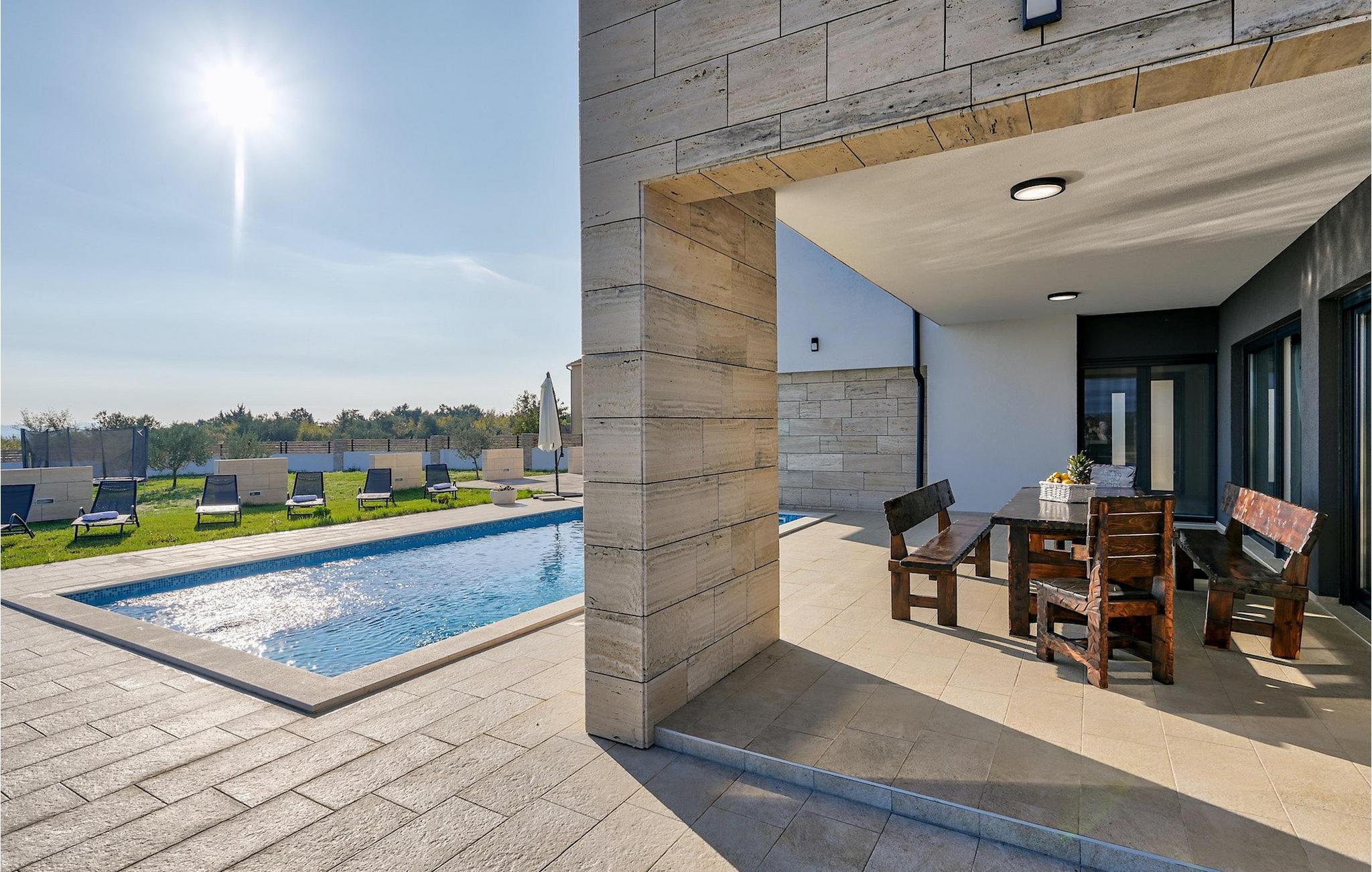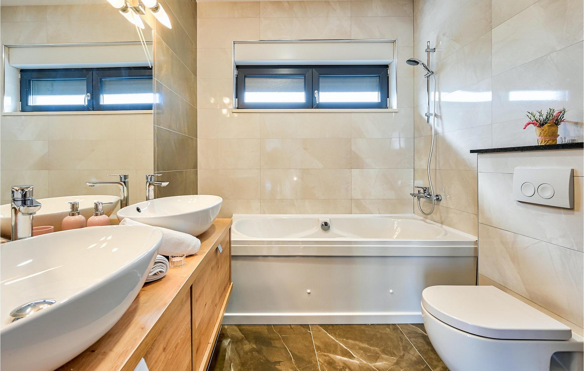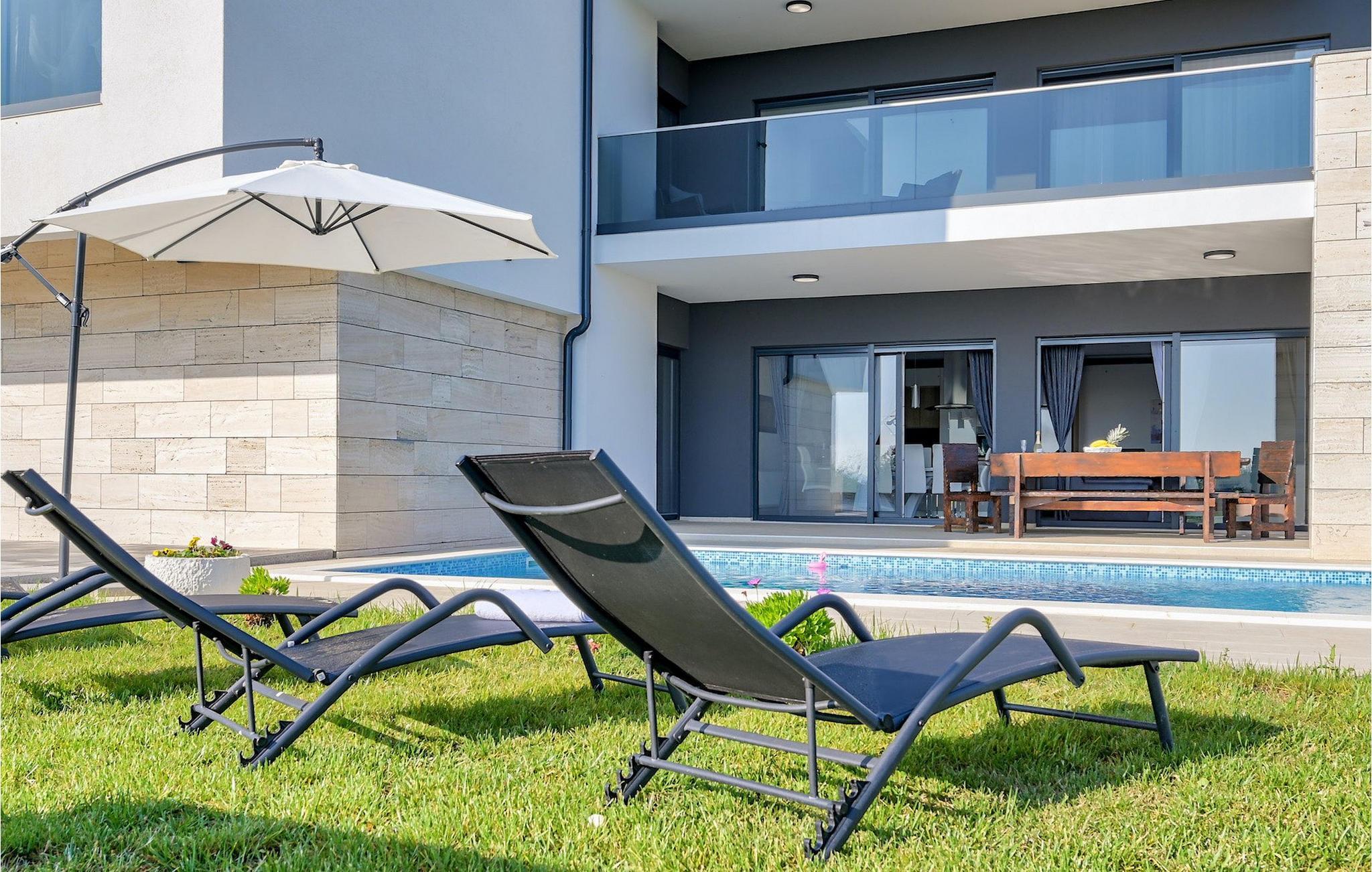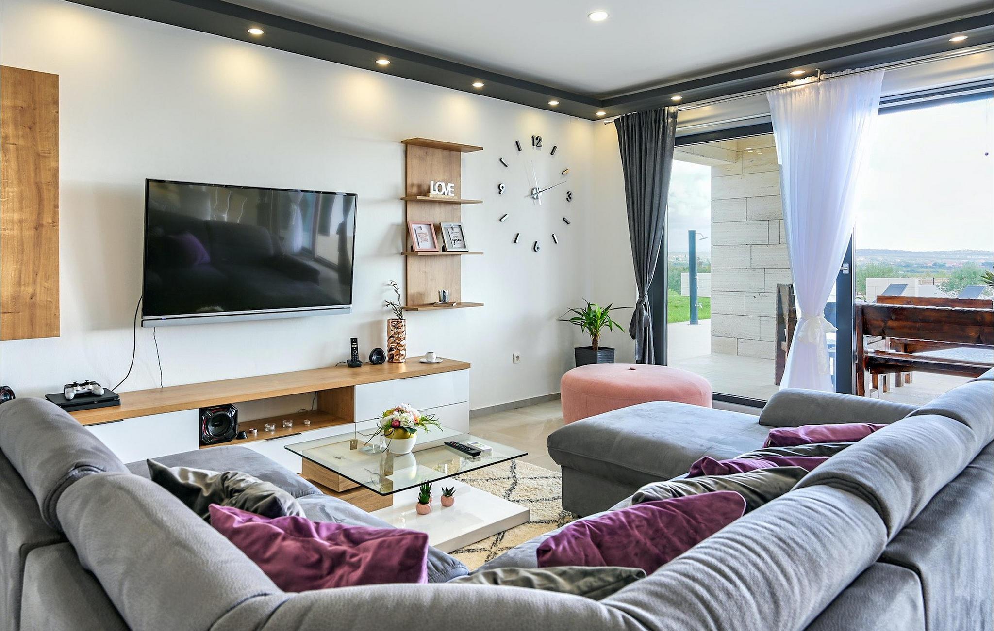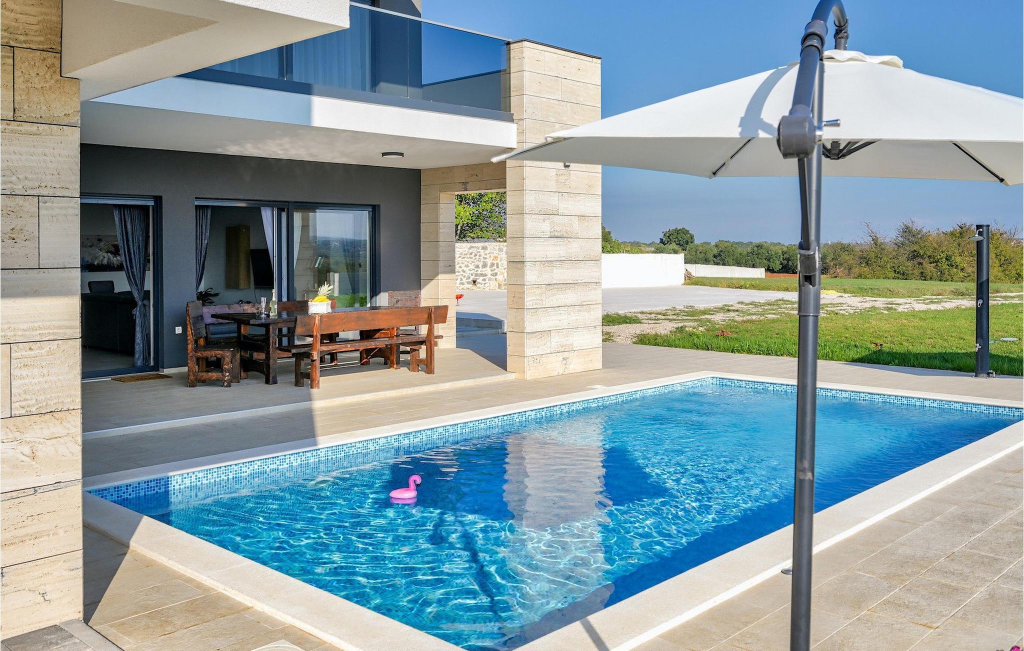 If you are looking for a beautiful, modern villa close to the sea and untouched nature, Villa FA Exclusive is your right choice! This wonderful villa can accommodate 8 guests in 4 bedrooms and it has much more to offer. If you are looking for entertainment or a little work-out session you will find some fitness equipment and darts on the ground floor. The ground floor also offers a spacious, contemporary furnished area with a living and dining room and a nice, furnished kitchen. Here you will also find a bedroom, while the other 3 are located on the first floor. All the bedrooms have double beds, air conditioners and TVs at disposal and the ones on the floor also have en suite bathrooms. The outdoor area with the inviting pool is the perfect place for sunbathing and relaxation on one of the sun loungers. If you are traveling with kids the garden disposes over a playground for children as well as a trampoline. For al fresco dinner nights there is also a grill available and the first beach is only 3 km away.Die Villa FA Exclusive befindet sich in einen kleinen Ort Donje Rastane gegenüber der Pasman Insel und nur etwa 20 km entfernt von einem der sehenswerten Touristenzentrums Dalmatiens - Zadar. Diese Lage ist perfekt für diejenigen die gerne am Strand ausruhen, aber auch für aktive Urlauber da der Nationalpark Paklenica nur 50 km entfernt ist. In der Nähe befindet sich auch der Vrana See mit schöner Natu, zwischen Meer und den Bergen. Hier kann man schön wandern, Radtouren machen und die Natur bewundern. Besuchen Sie auch unbedingt die wunderschöne Stadt Zadar mit zahlreichen kulturellen und gastronomischen Angebot. Besuchen Sie viele Museen, bewundern Sie die antike Architektur oder genießen Sie natürliche Strände und das aktive Nachtleben. Im Stadtzentrum von Zadar dürfen Sie nicht verpassen das alte Forum mit der Kirche des hl. Donatus (aus den 9. Jahrhundert) zu besuchen. Dies ist eines der wichtigsten Denkmale von Zadar, mit der Kirche im romanischen Stil erbaut.