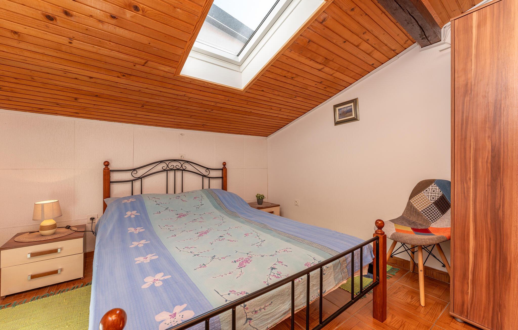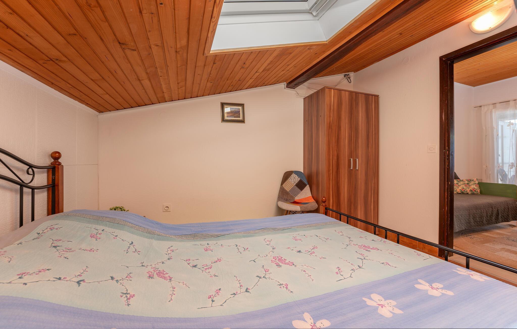 Diese hübsche Ferienwohnung mit Meerblick ist funktionell eingerichtet und verfügt über ein Zimmer im Dachgeschoss mit einer niedrigen Mansarde. Im Gartenbereich können Sie grillen, entspannen und vom hektischen Alltag abschalten. Der Vogelpark und der See Vransko jezero laden Sie zu einem Ausflug ein, genießen Sie die einzigartige Natur dieser Gegend. Besuchen Sie auch die Stadt Biograd, den Krönungsort der früheren kroatischen Könige, lernen Sie eine andere Kultur und Mentalität kennen und genießen Sie Ihren Urlaub in vollen Zügen.