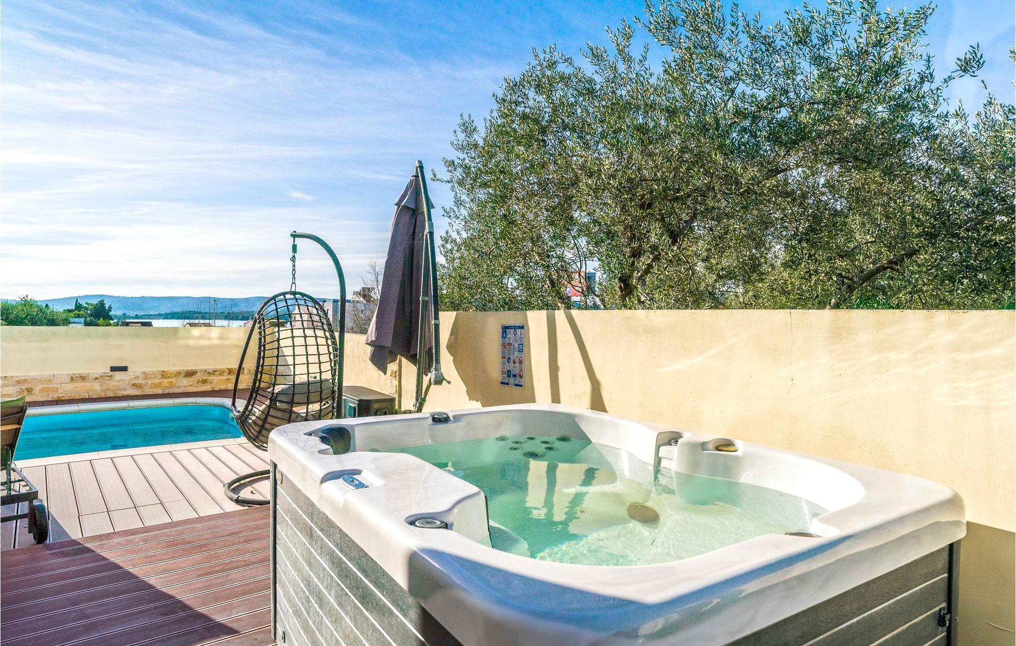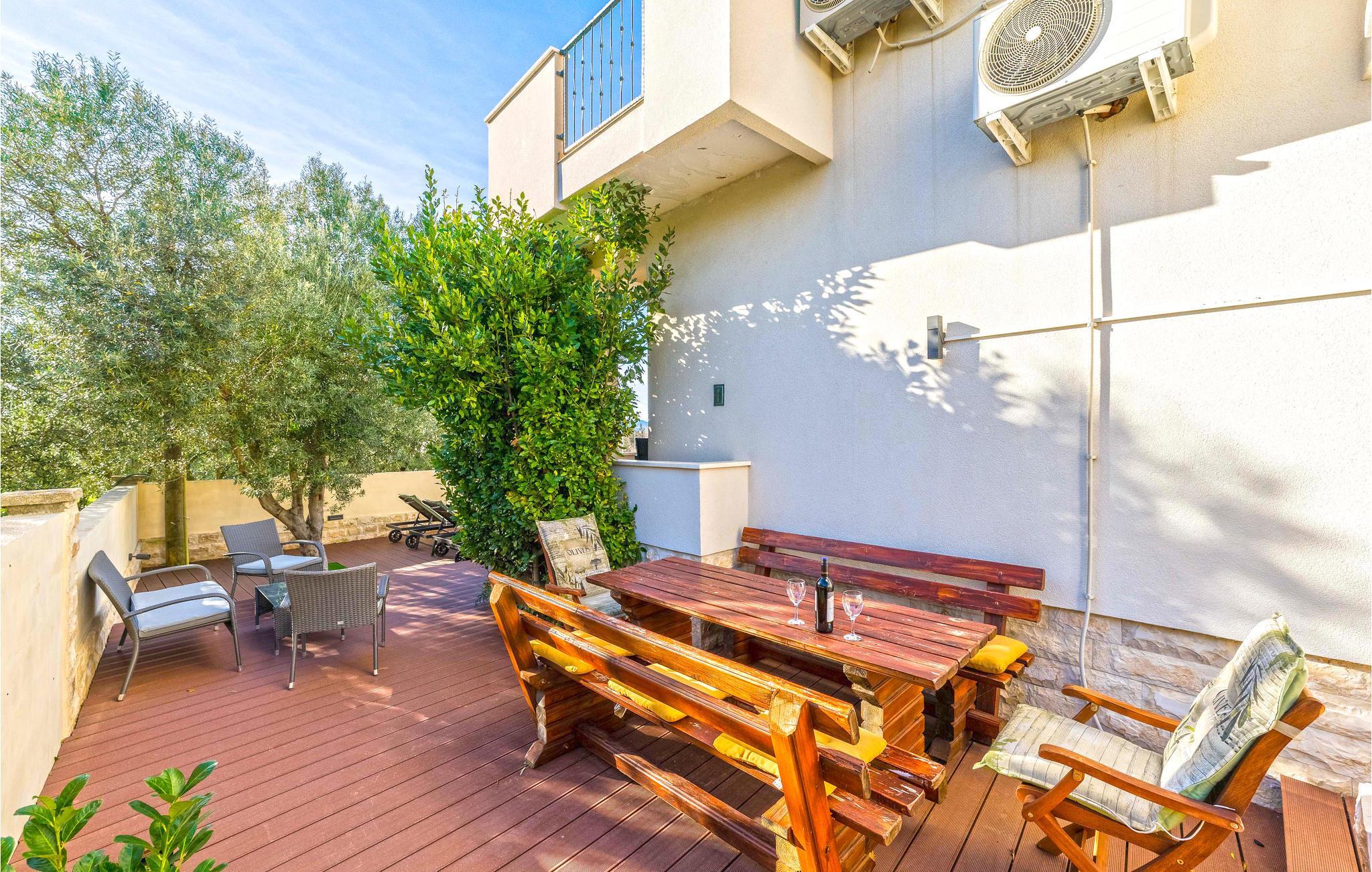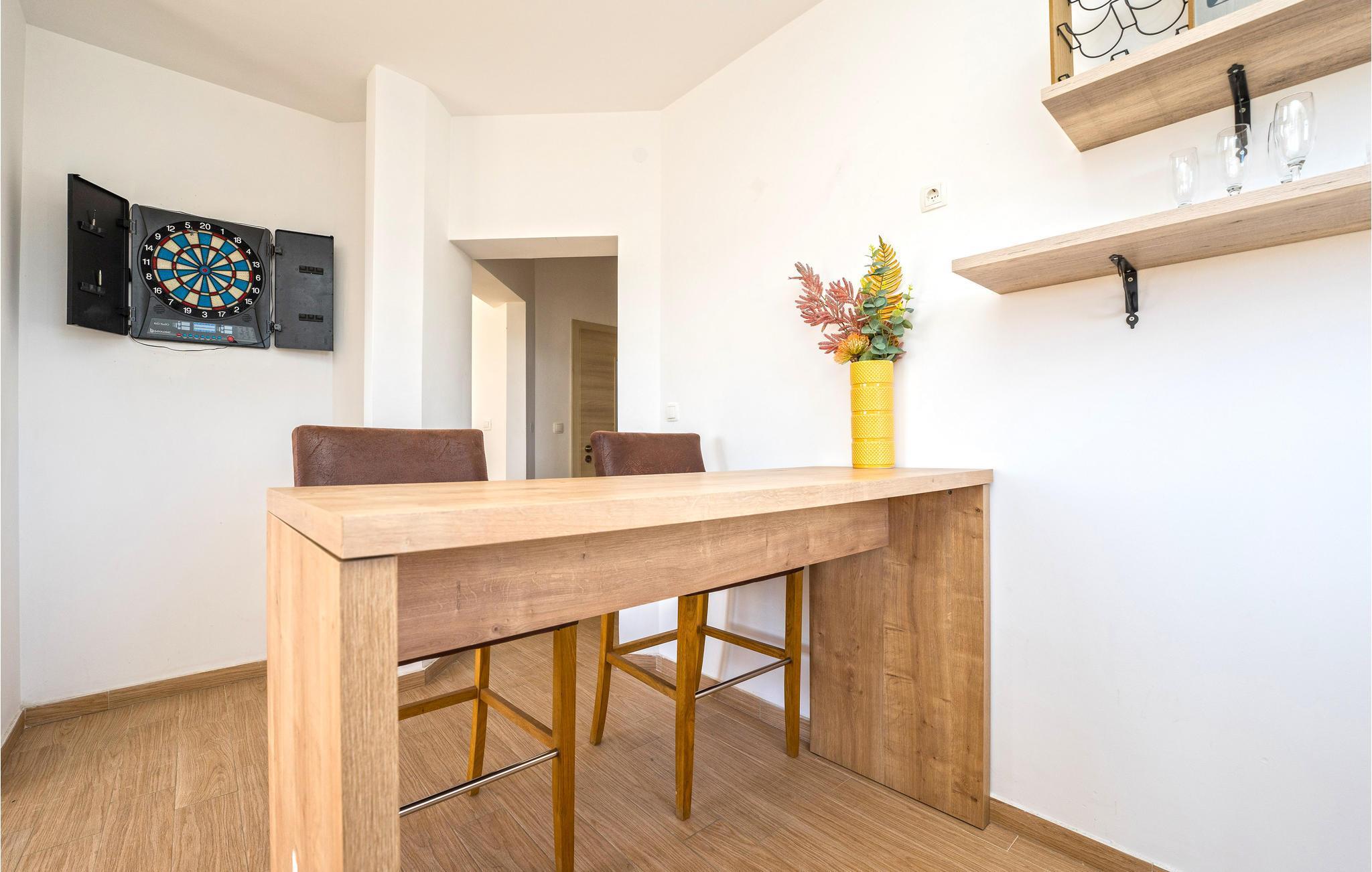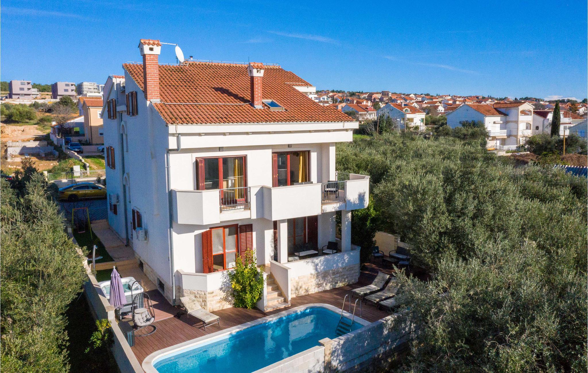 Komfortables Ferienhaus mit Pool und Kinderspielbereich nahe der königlichen Stadt Biograd, in der Sie traumhafte Strände, ausgezeichnete Restaurants und verschiedene Sommerveranstaltungen erwarten. Der nächste Strand ist ein Sandstrand, wo Sie angenehmes Baden im Meer genießen können. Das Domizil erstreckt sich über drei Etagen und im Dachgeschoss geht die Dachschräge auf ca. 170 cm. Das Innere mit insgesamt acht Klimaanlagen, besteht aus fünf Schlafzimmern, davon sind vier Schlafzimmer klimatisiert, drei Badezimmern, einer Wohnküche, einem Wohnzimmer sowie einer offenen Terrasse mit Blick auf den erfrischenden Pool, den Spielplatz und das Meer. Zusätzliche Entspannung finden Sie in der Sauna oder mit Billard, Tischtennis und Darts.
