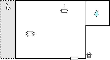 Wohnraum/Küche 19m2 - 1 Schlafmöglichkeit. (Einzelbett(en)). 2 Schlafmöglichkeiten. (Doppelbett(en)).