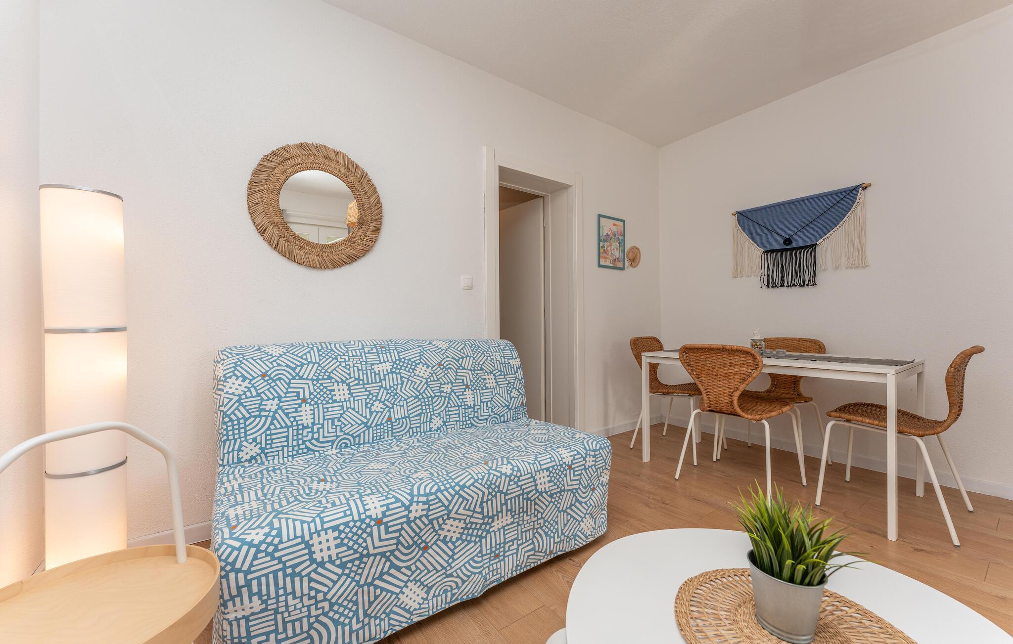Willkommen in dieser hellen und freundlichen Ferienwohnung, in der Sie nur wenige Schritte von der sonnenverwöhnten Küste entfernt eine entspannte Auszeit genießen können. Der stilvoll eingerichtete Innenbereich kombiniert Komfort mit modernen Akzenten. Starten Sie Ihren Tag mit einem Frühstück am Esstisch, bereiten Sie in der voll ausgestatteten Küche frische mediterrane Gerichte zu oder stöbern Sie auf Netflix nach einem guten Film.
