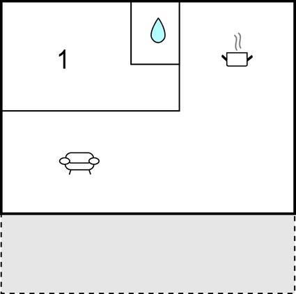 Badezimmer 5m2 (nr. 1) - WC. Warmes und kaltes Wasser. Dusche
