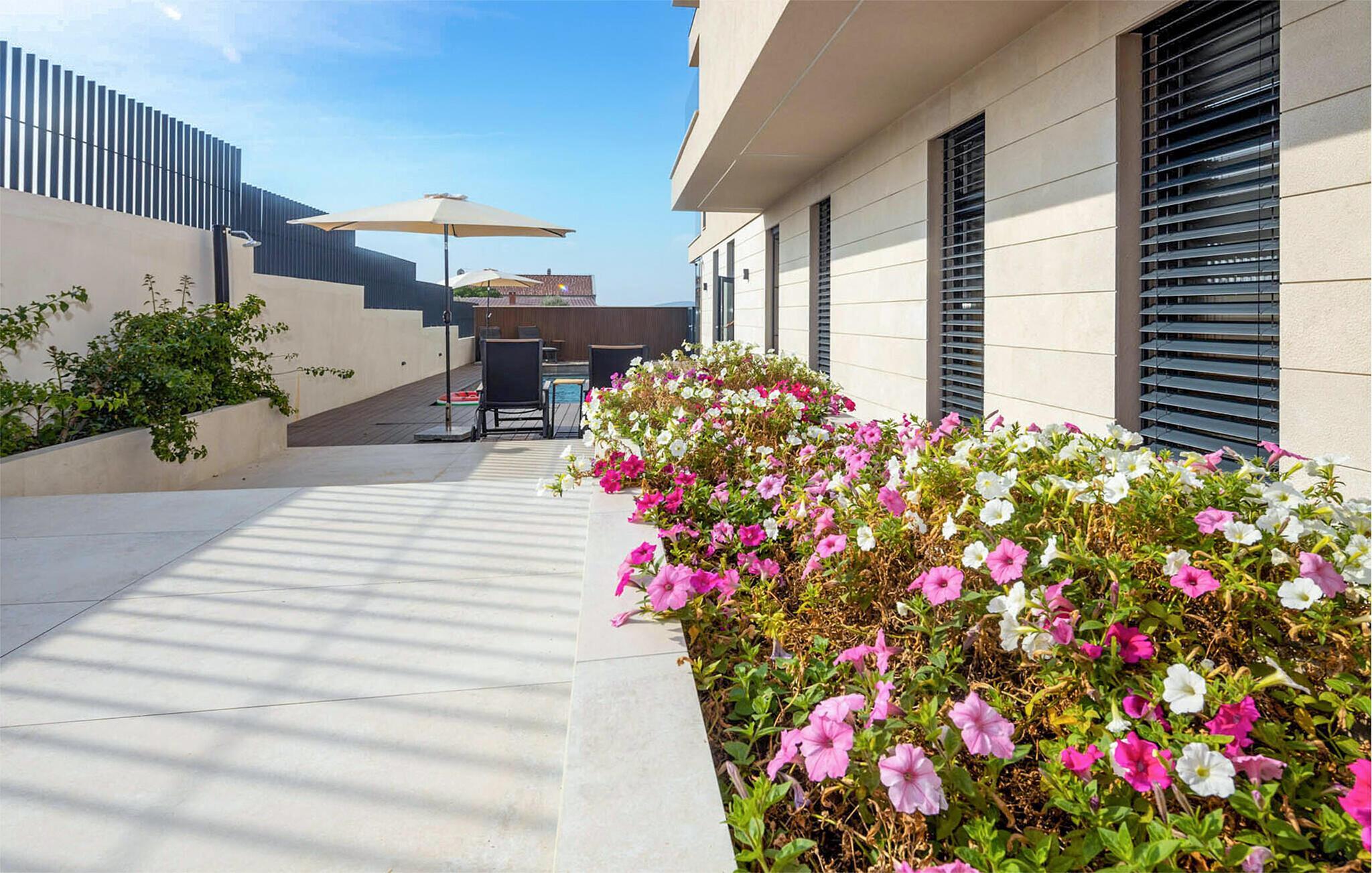 Hier werden Träume wahr! Diese wunderschöne Ferienwohnung ist ein Paradies für Ihre Familie oder befreundete Paare. Das herrliche Haus besteht aus mehreren Apartments, mit denen Sie sich die Annehmlichkeiten des Hauses teilen. Die eleganten und hochwertig eingerichteten Räume lassen keine Wünsche offen und werden Ihnen beim Kochen, Relaxen oder Spielen viel Freude bereiten. Auch an Wellness und Fitness wird gedacht, sodass Sie im Fitnessraum im Erdgeschoss Ihren täglichen Übungen nachgehen, mit den anderen Gästen ins Gespräch kommen und in der Sauna Ihren Alltagsstress ausschwitzen können. Diese Einrichtungen, wie auch die Außenküche und die Kinderspielgeräte im Garten teilen Sie sich mit weiteren Ferienunterkünften.