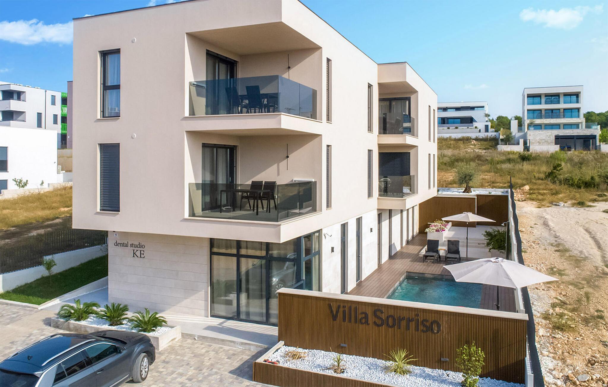 Hier werden Träume wahr! Diese wunderschöne Ferienwohnung ist ein Paradies für Ihre Familie oder befreundete Paare. Das herrliche Haus besteht aus mehreren Apartments, mit denen Sie sich die Annehmlichkeiten des Hauses teilen. Die eleganten und hochwertig eingerichteten Räume lassen keine Wünsche offen und werden Ihnen beim Kochen, Relaxen oder Spielen viel Freude bereiten. Auch an Wellness und Fitness wird gedacht, sodass Sie im Fitnessraum im Erdgeschoss Ihren täglichen Übungen nachgehen, mit den anderen Gästen ins Gespräch kommen und in der Sauna Ihren Alltagsstress ausschwitzen können.Diese Einrichtungen, wie auch die Außenküche und die Kinderspielgeräte im Garten teilen Sie sich mit weiteren Ferienunterkünften.