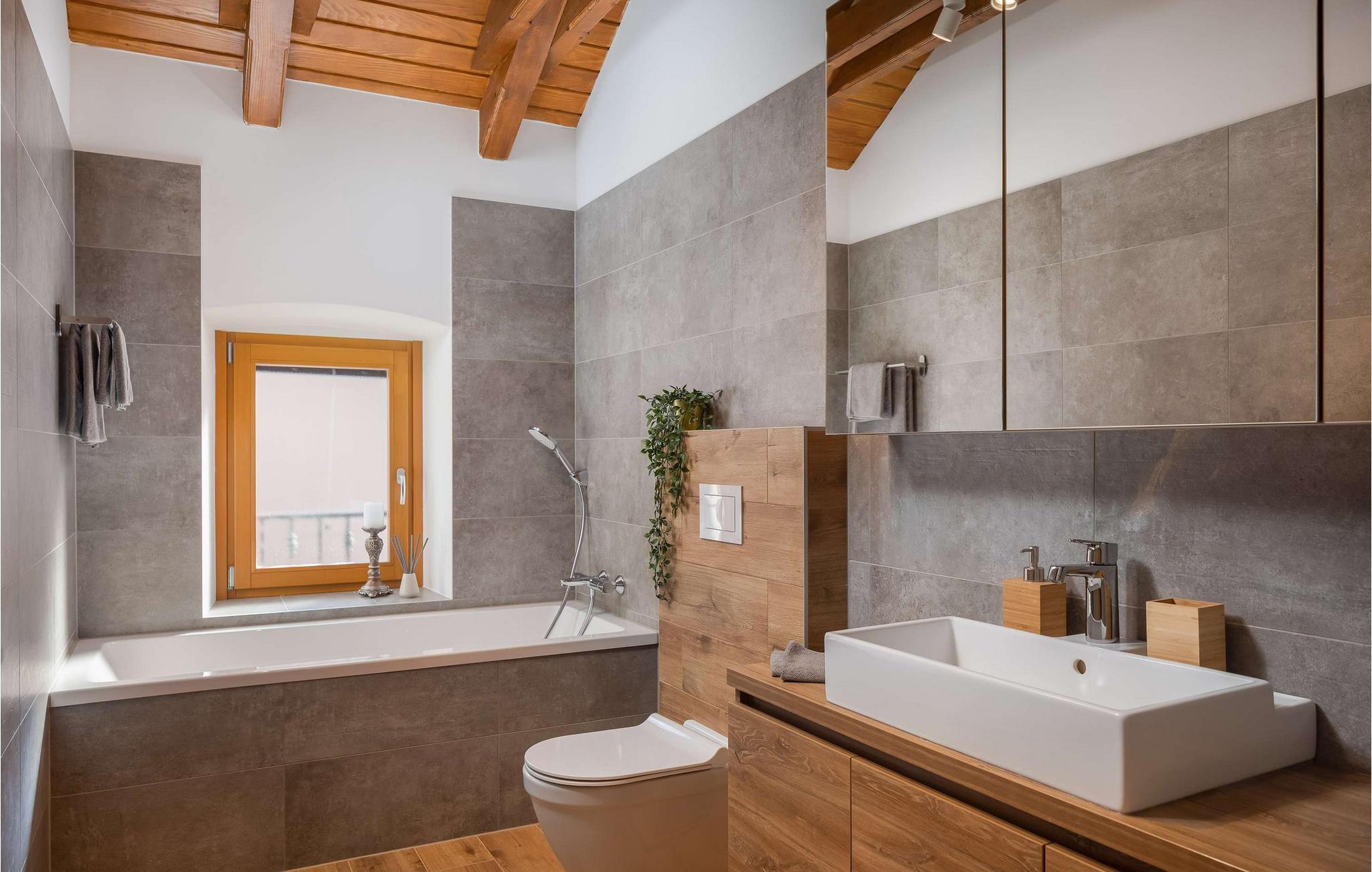Badezimmer (nr. 1) - WC. Warmes und kaltes Wasser. Badewanne