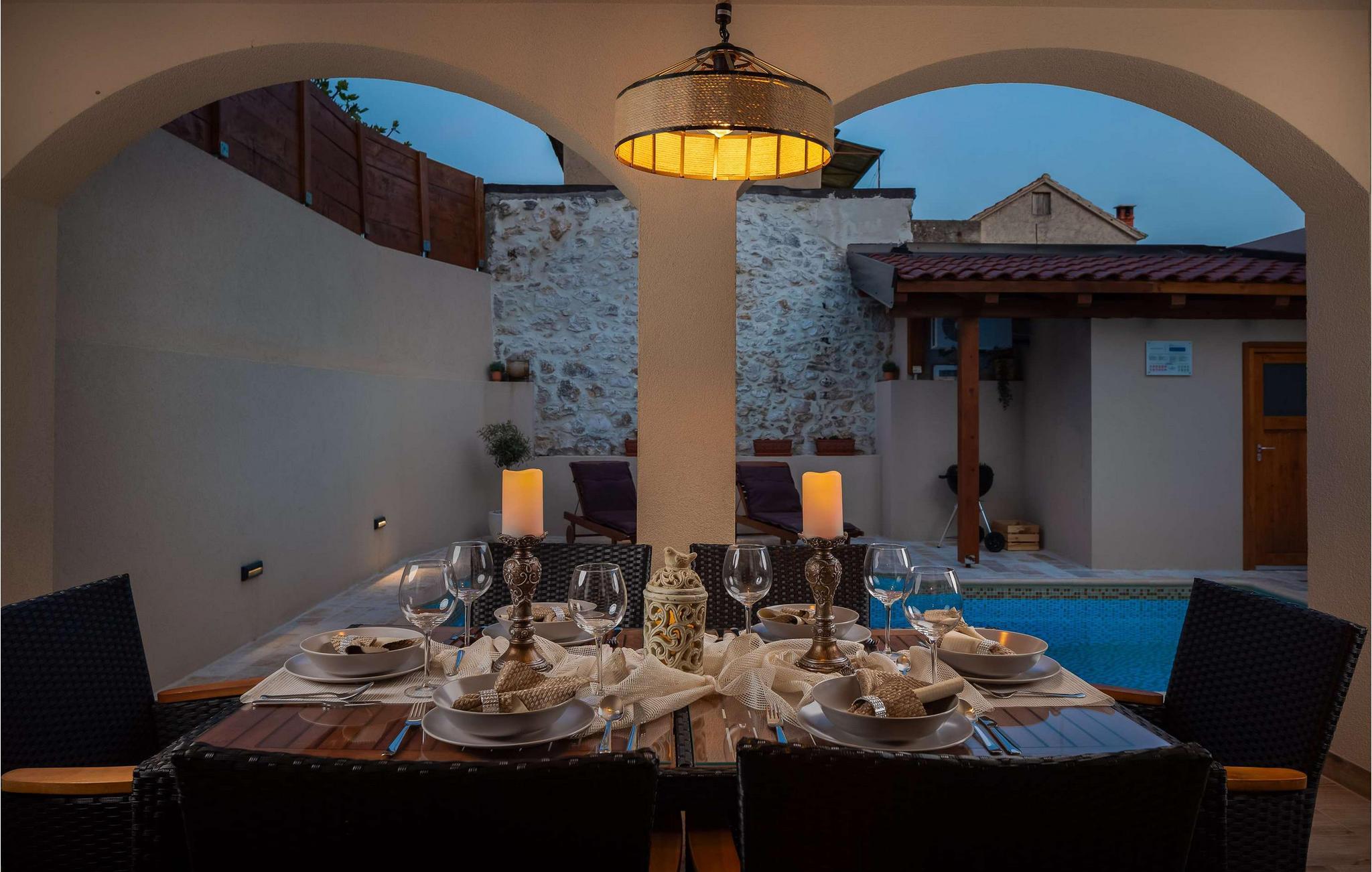 Die wunderschöne Villa Kameni Dvori vereint rustikalen Charme mit modernem Luxus und begrüßt Sie in der malerischen Küstenstadt Sveti Filip i Jakov, unweit des Stadtzentrums von Zadar. Zaubern Sie kulinarische Highlights in der offenen Küche, genießen Sie harmonische Mahlzeiten im behaglichen Wohnbereich und vergnügen Sie sich an der PlayStation oder plaudern Sie im gemütlichen Wohnzimmer über vergangene Zeiten.