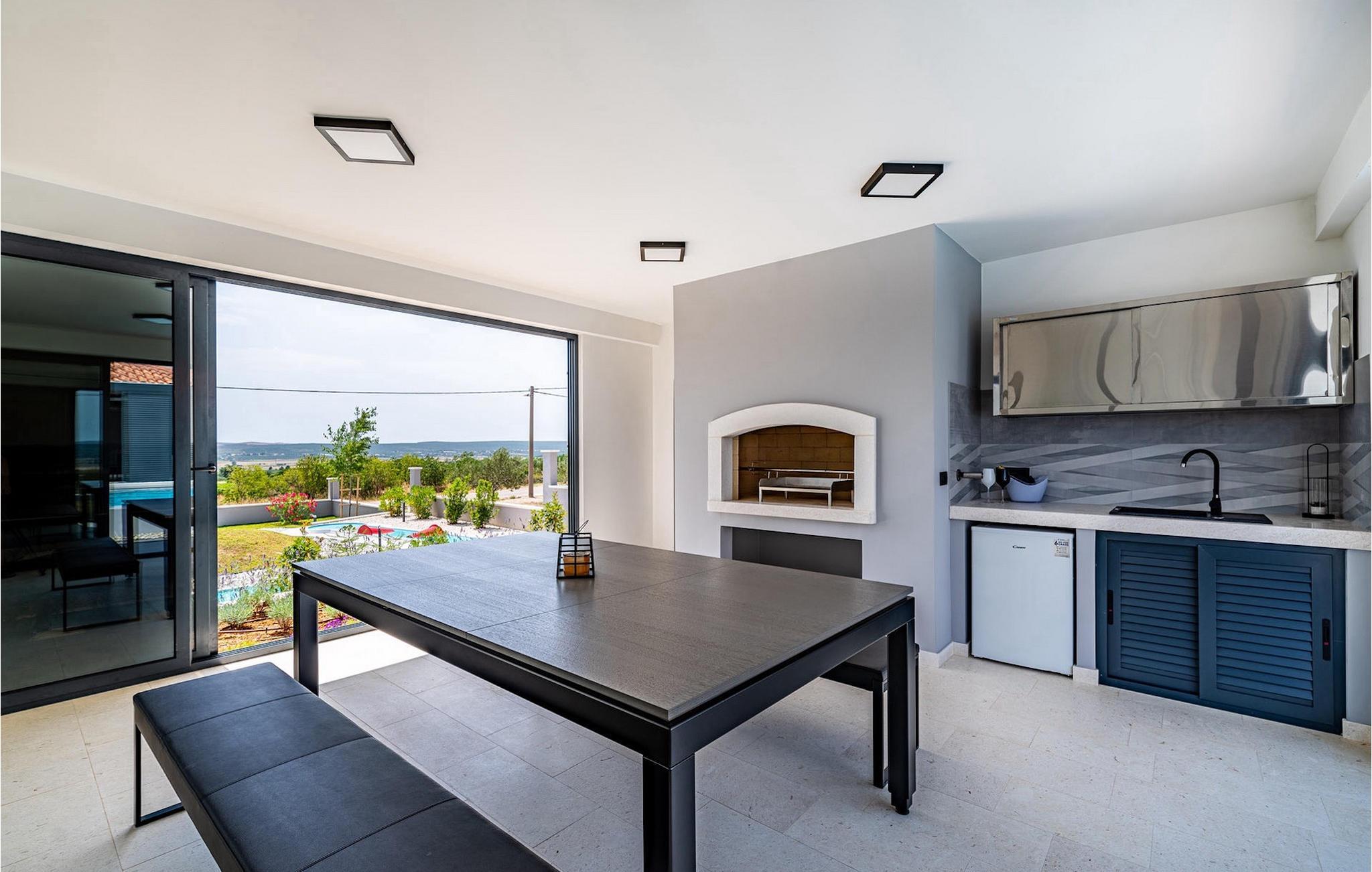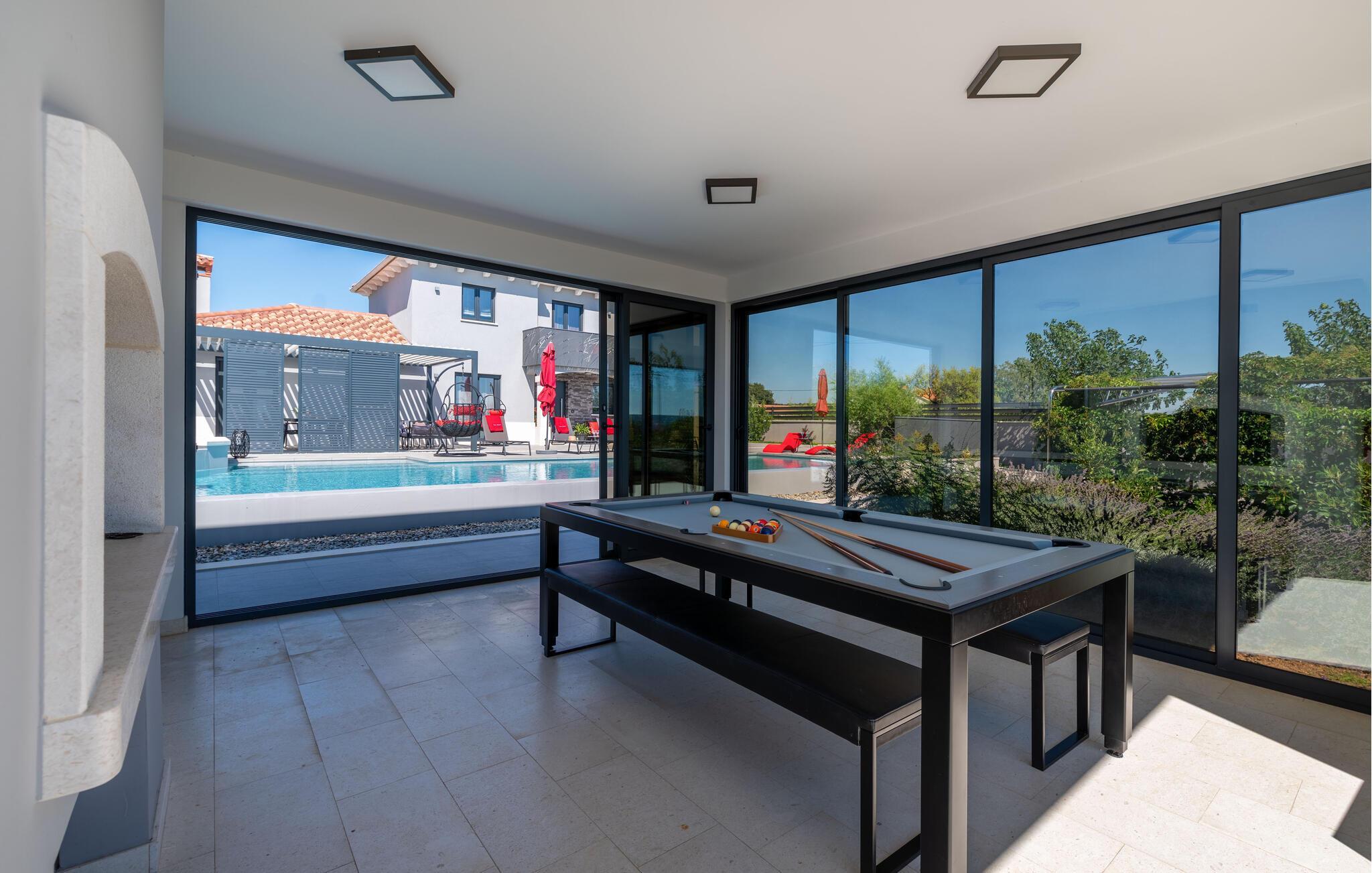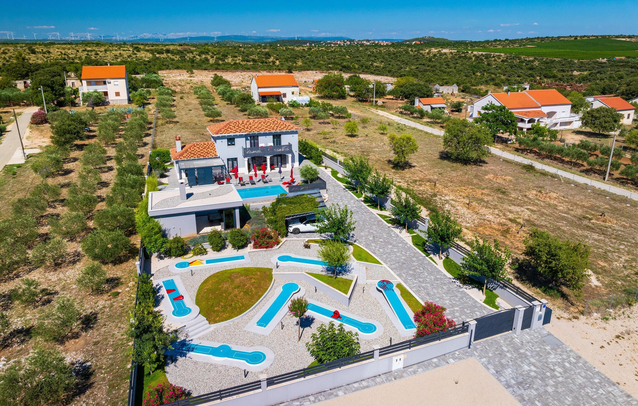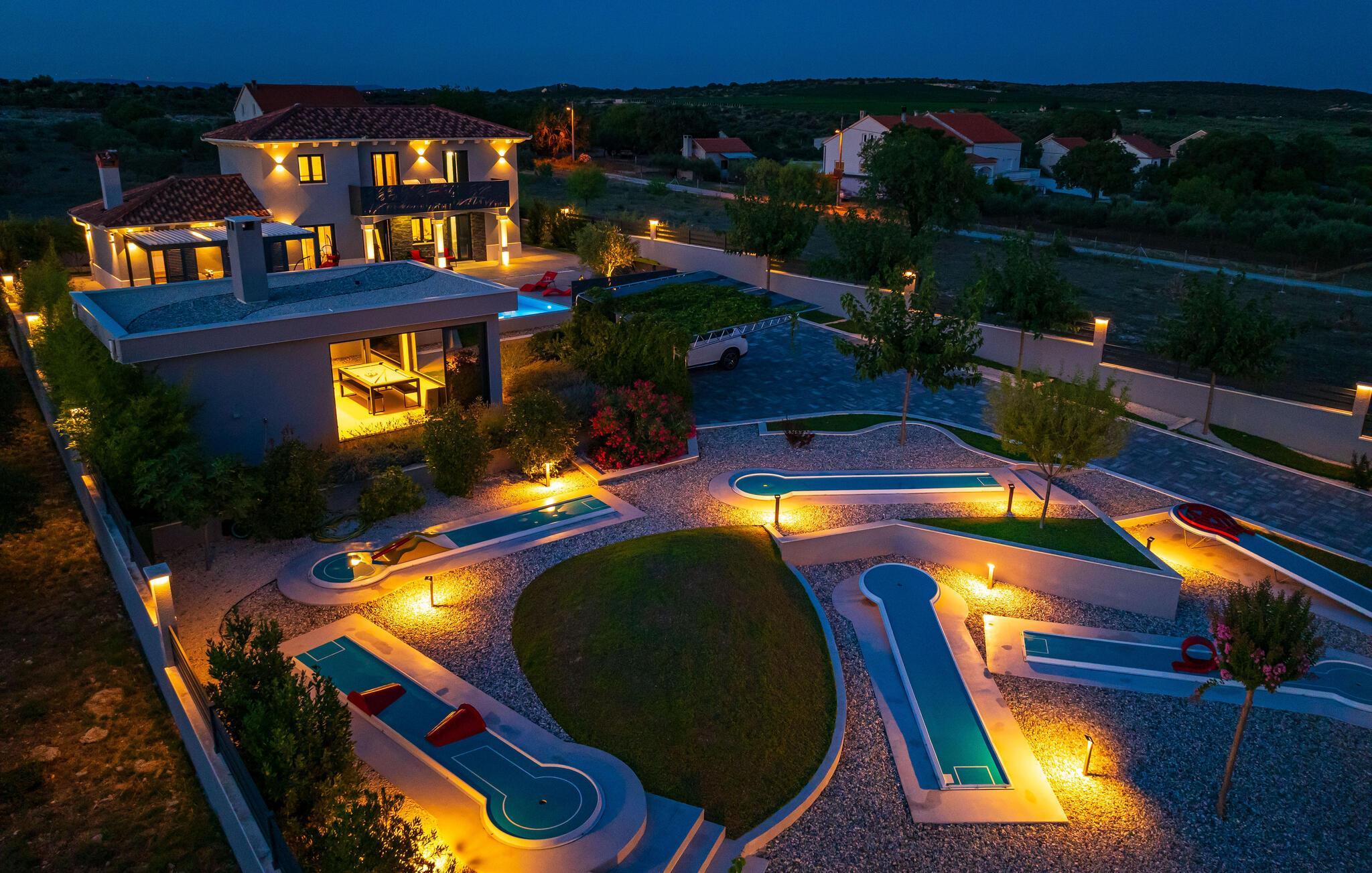 Stehen Ruhe, Entspannung und ein erlebnisvoller Urlaub mit Ihren liebsten hoch auf Ihrer Wunschliste? Dann wird Sie dieses Traumanwesen verzaubern. Die Villa Casa Grigia befindet sich inmitten einer idyllischen Lage nahe an der Küstenstadt Biograd na Moru. Mit ihrem vielfältigen Unterhaltungsangebot, sowie der pittoresken Umgebung ist die Villa zweifellos eine ganz einzigartige Ferienvilla. Sie werden auch die heißesten Sommertage entspannt genießen, da ein herrlicher erfrischender Pool mit Hydromassage den Mittelpunkt des Anwesens bildet. Um den Pool befinden sich Liegestühle, an welchen Sie sich bei einem erfrischenden Getränk entspannen können. Wenn Sie gerne Minigolf spielen, steht Ihnen ein eigener Minigolfplatz zur Verfügung. Das separate 40m2 große Objekt mit Grill, Essbereich und einem Billardtisch steht Ihnen ebenfalls zur Verfügung um sich mit Ihren Liebsten zu versammeln und unvergessliche Abende verbringen. Nutzen Sie die Gelegenheit um köstliche Mahlzeiten am Grill vorzubereiten. Betreten Sie von dem Außenbereich das Innere der Villa, so bietet sich Ihnen ein offener, geschmackvoll eingerichteter Wohnbereich mit Esstisch und voll ausgestatteter Küche. Die Villa bietet Platz für insgesamt 6 Personen mit 3 komfortablen Schlafzimmern. Eines der Schlafzimmer befindet sich im Erdgeschoss, 3 weitere Schlafzimmer befinden sich auf der ersten Etage. Jedes der schick eingerichteten Schlafzimmer verfügt über ein eigenes modernes Badezimmer, eine Klimaanlage und TV. Sie werden es kaum erwarten Ihren Urlaub in der Villa Casa Grigia zu verbringen!Villa Casa Grigia befindet sich in einem kleinen Dorf Names Tinj, in der Nähe der Küstenstadt Biograd na Moru. Die “weiße Stadt am Meer” bietet traumhafte Strände und Buchten, zahlreiche Restaurants und Tavernen in welchen Sie die hervorragende dalmatische Küche genießen können, sowie den Fun Park Mirnovec, falls Sie zusätzliche Aktivitäten für Ihre Familie wünschen. Die Lage der Villa bietet einen ausgezeichneter Ausgangspunkt für Ausflüge. Die Küstenstädte Zadar und Sibenik, die jeweils nur eine kurze Autofahrt entfernt sind, laden mit ihrer reichen Geschichte und zahlreichen Sehenswürdigkeiten zu einem Tagesausflug ein. Zadar ist eine historische Stadt und bietet eine Kombination aus Sightseeing, Gastronomie und Strand. Ganz besonders ist die Altstadt die sich auf einer Halbinsel, getrennt von der Neustadt befindet. Bekannt ist die “Meeresorgel” und der sogenannte “Gruß an die Sonne” Platz welche sich direkt an der Promenade befinden. Buchen Sie die besondere Villa Casa Grigia und lassen Sie sich von Dalmatien verzaubern!