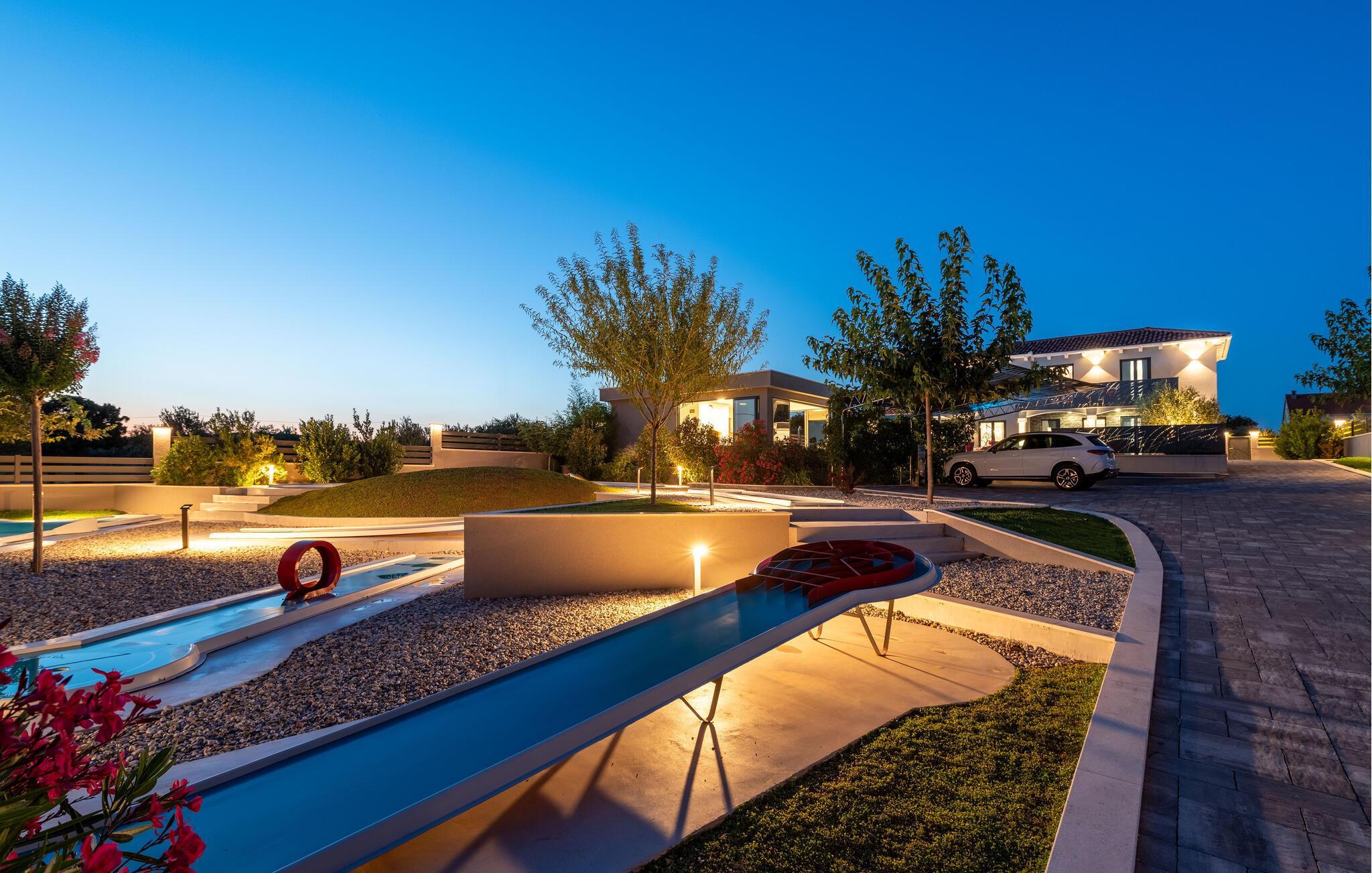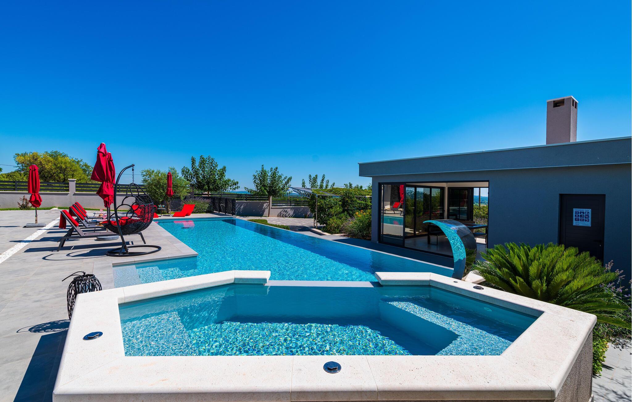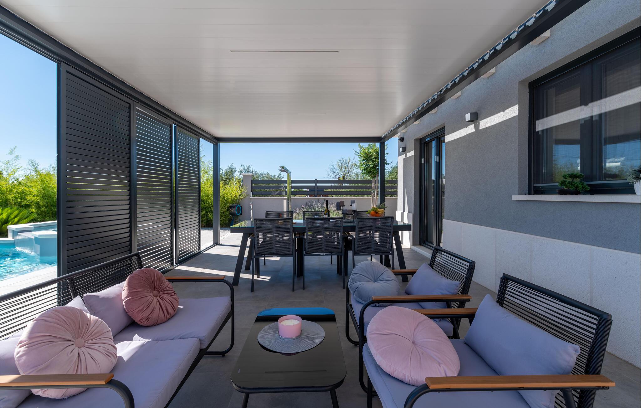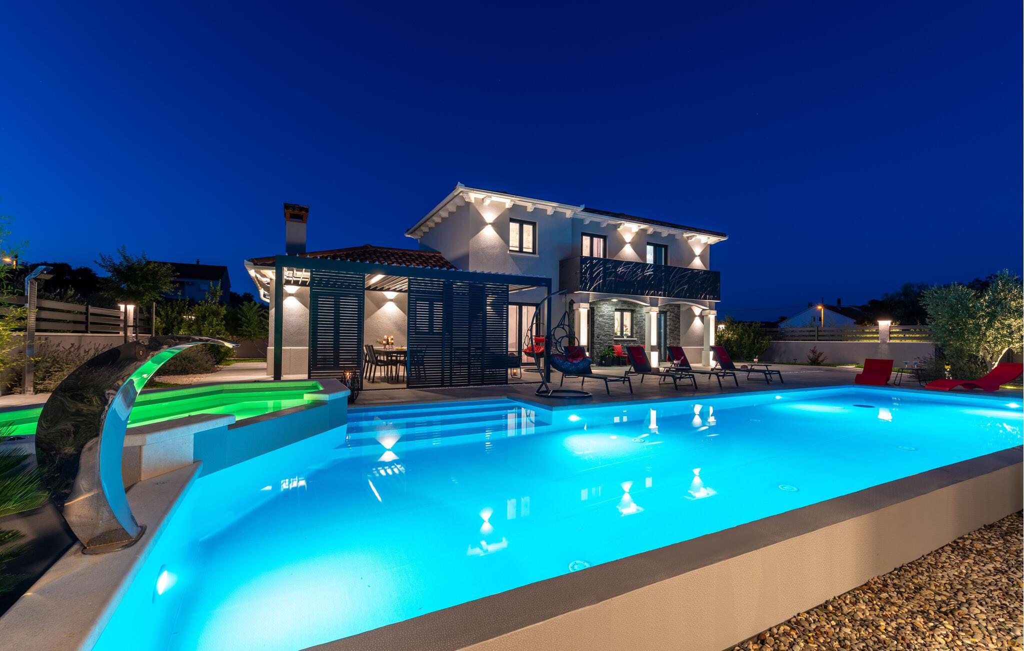 Stehen Ruhe, Entspannung und ein erlebnisvoller Urlaub mit Ihren liebsten hoch auf Ihrer Wunschliste? Dann wird Sie dieses Traumanwesen verzaubern. Die Villa Casa Grigia befindet sich inmitten einer idyllischen Lage nahe an der Küstenstadt Biograd na Moru. Mit ihrem vielfältigen Unterhaltungsangebot, sowie der pittoresken Umgebung ist die Villa zweifellos eine ganz einzigartige Ferienvilla. Sie werden auch die heißesten Sommertage entspannt genießen, da ein herrlicher erfrischender Pool mit Hydromassage den Mittelpunkt des Anwesens bildet. Um den Pool befinden sich Liegestühle, an welchen Sie sich bei einem erfrischenden Getränk entspannen können. Wenn Sie gerne Minigolf spielen, steht Ihnen ein eigener Minigolfplatz zur Verfügung. Das separate 40m2 große Objekt mit Grill, Essbereich und einem Billardtisch steht Ihnen ebenfalls zur Verfügung um sich mit Ihren Liebsten zu versammeln und unvergessliche Abende verbringen. Nutzen Sie die Gelegenheit um köstliche Mahlzeiten am Grill vorzubereiten. Betreten Sie von dem Außenbereich das Innere der Villa, so bietet sich Ihnen ein offener, geschmackvoll eingerichteter Wohnbereich mit Esstisch und voll ausgestatteter Küche. Die Villa bietet Platz für insgesamt 6 Personen mit 3 komfortablen Schlafzimmern. Eines der Schlafzimmer befindet sich im Erdgeschoss, 3 weitere Schlafzimmer befinden sich auf der ersten Etage. Jedes der schick eingerichteten Schlafzimmer verfügt über ein eigenes modernes Badezimmer, eine Klimaanlage und TV. Sie werden es kaum erwarten Ihren Urlaub in der Villa Casa Grigia zu verbringen!Villa Casa Grigia befindet sich in einem kleinen Dorf Names Tinj, in der Nähe der Küstenstadt Biograd na Moru. Die “weiße Stadt am Meer” bietet traumhafte Strände und Buchten, zahlreiche Restaurants und Tavernen in welchen Sie die hervorragende dalmatische Küche genießen können, sowie den Fun Park Mirnovec, falls Sie zusätzliche Aktivitäten für Ihre Familie wünschen. Die Lage der Villa bietet einen ausgezeichneter Ausgangspunkt für Ausflüge. Die Küstenstädte Zadar und Sibenik, die jeweils nur eine kurze Autofahrt entfernt sind, laden mit ihrer reichen Geschichte und zahlreichen Sehenswürdigkeiten zu einem Tagesausflug ein. Zadar ist eine historische Stadt und bietet eine Kombination aus Sightseeing, Gastronomie und Strand. Ganz besonders ist die Altstadt die sich auf einer Halbinsel, getrennt von der Neustadt befindet. Bekannt ist die “Meeresorgel” und der sogenannte “Gruß an die Sonne” Platz welche sich direkt an der Promenade befinden. Buchen Sie die besondere Villa Casa Grigia und lassen Sie sich von Dalmatien verzaubern!
