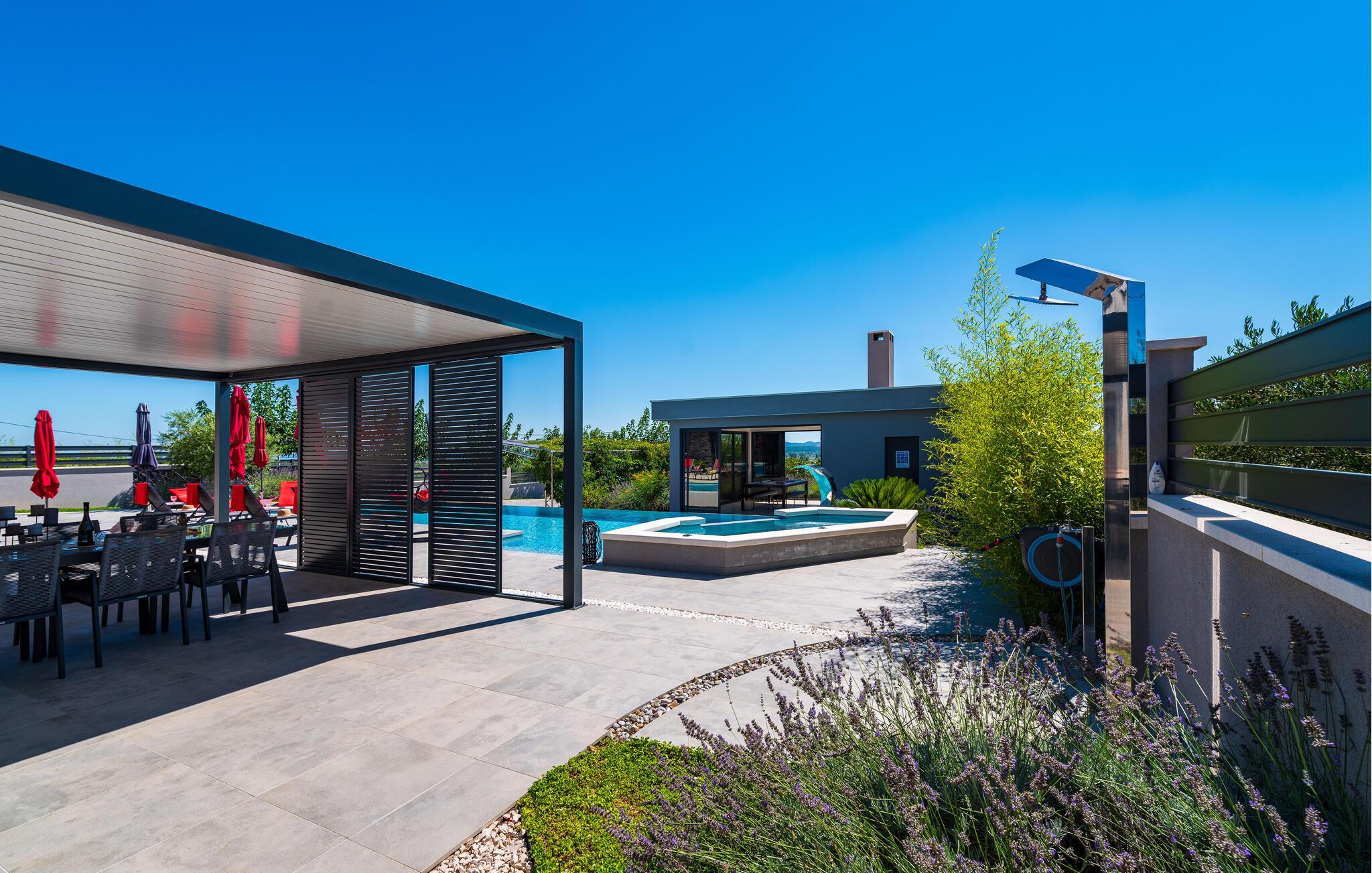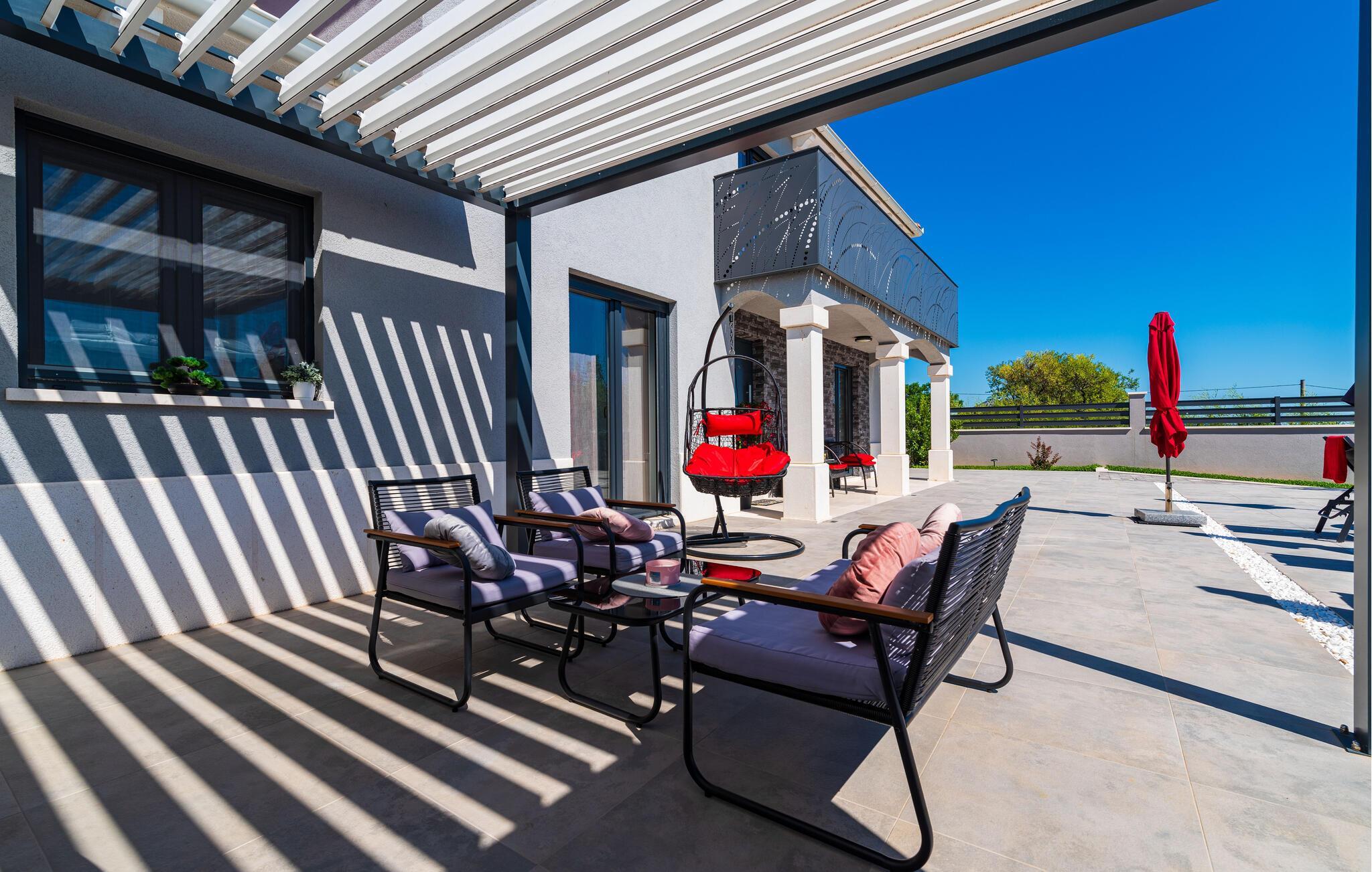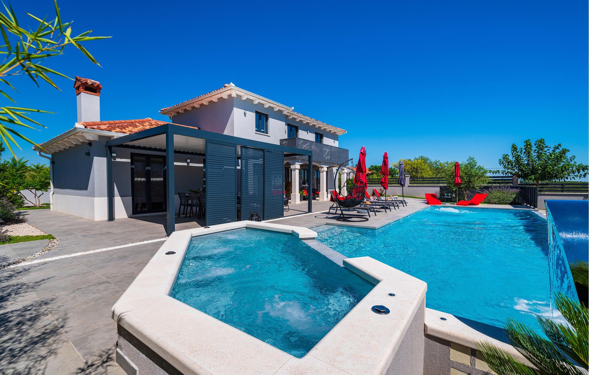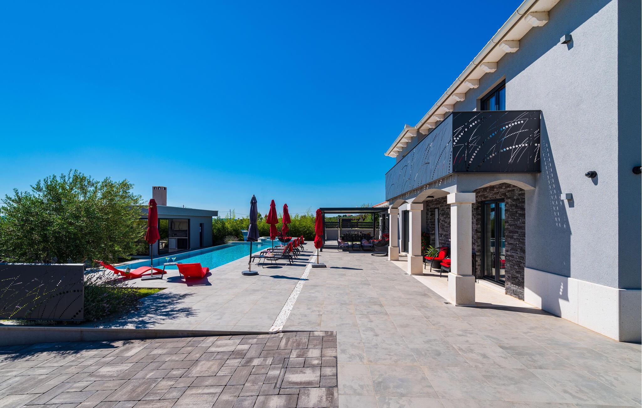 Stehen Ruhe, Entspannung und ein erlebnisvoller Urlaub mit Ihren liebsten hoch auf Ihrer Wunschliste? Dann wird Sie dieses Traumanwesen verzaubern. Die Villa Casa Grigia befindet sich inmitten einer idyllischen Lage nahe an der Küstenstadt Biograd na Moru. Mit ihrem vielfältigen Unterhaltungsangebot, sowie der pittoresken Umgebung ist die Villa zweifellos eine ganz einzigartige Ferienvilla. Sie werden auch die heißesten Sommertage entspannt genießen, da ein herrlicher erfrischender Pool mit Hydromassage den Mittelpunkt des Anwesens bildet. Um den Pool befinden sich Liegestühle, an welchen Sie sich bei einem erfrischenden Getränk entspannen können. Wenn Sie gerne Minigolf spielen, steht Ihnen ein eigener Minigolfplatz zur Verfügung. Das separate 40m2 große Objekt mit Grill, Essbereich und einem Billardtisch steht Ihnen ebenfalls zur Verfügung um sich mit Ihren Liebsten zu versammeln und unvergessliche Abende verbringen. Nutzen Sie die Gelegenheit um köstliche Mahlzeiten am Grill vorzubereiten. Betreten Sie von dem Außenbereich das Innere der Villa, so bietet sich Ihnen ein offener, geschmackvoll eingerichteter Wohnbereich mit Esstisch und voll ausgestatteter Küche. Die Villa bietet Platz für insgesamt 6 Personen mit 3 komfortablen Schlafzimmern. Eines der Schlafzimmer befindet sich im Erdgeschoss, 3 weitere Schlafzimmer befinden sich auf der ersten Etage. Jedes der schick eingerichteten Schlafzimmer verfügt über ein eigenes modernes Badezimmer, eine Klimaanlage und TV. Sie werden es kaum erwarten Ihren Urlaub in der Villa Casa Grigia zu verbringen!Villa Casa Grigia befindet sich in einem kleinen Dorf Names Tinj, in der Nähe der Küstenstadt Biograd na Moru. Die “weiße Stadt am Meer” bietet traumhafte Strände und Buchten, zahlreiche Restaurants und Tavernen in welchen Sie die hervorragende dalmatische Küche genießen können, sowie den Fun Park Mirnovec, falls Sie zusätzliche Aktivitäten für Ihre Familie wünschen. Die Lage der Villa bietet einen ausgezeichneter Ausgangspunkt für Ausflüge. Die Küstenstädte Zadar und Sibenik, die jeweils nur eine kurze Autofahrt entfernt sind, laden mit ihrer reichen Geschichte und zahlreichen Sehenswürdigkeiten zu einem Tagesausflug ein. Zadar ist eine historische Stadt und bietet eine Kombination aus Sightseeing, Gastronomie und Strand. Ganz besonders ist die Altstadt die sich auf einer Halbinsel, getrennt von der Neustadt befindet. Bekannt ist die “Meeresorgel” und der sogenannte “Gruß an die Sonne” Platz welche sich direkt an der Promenade befinden. Buchen Sie die besondere Villa Casa Grigia und lassen Sie sich von Dalmatien verzaubern!