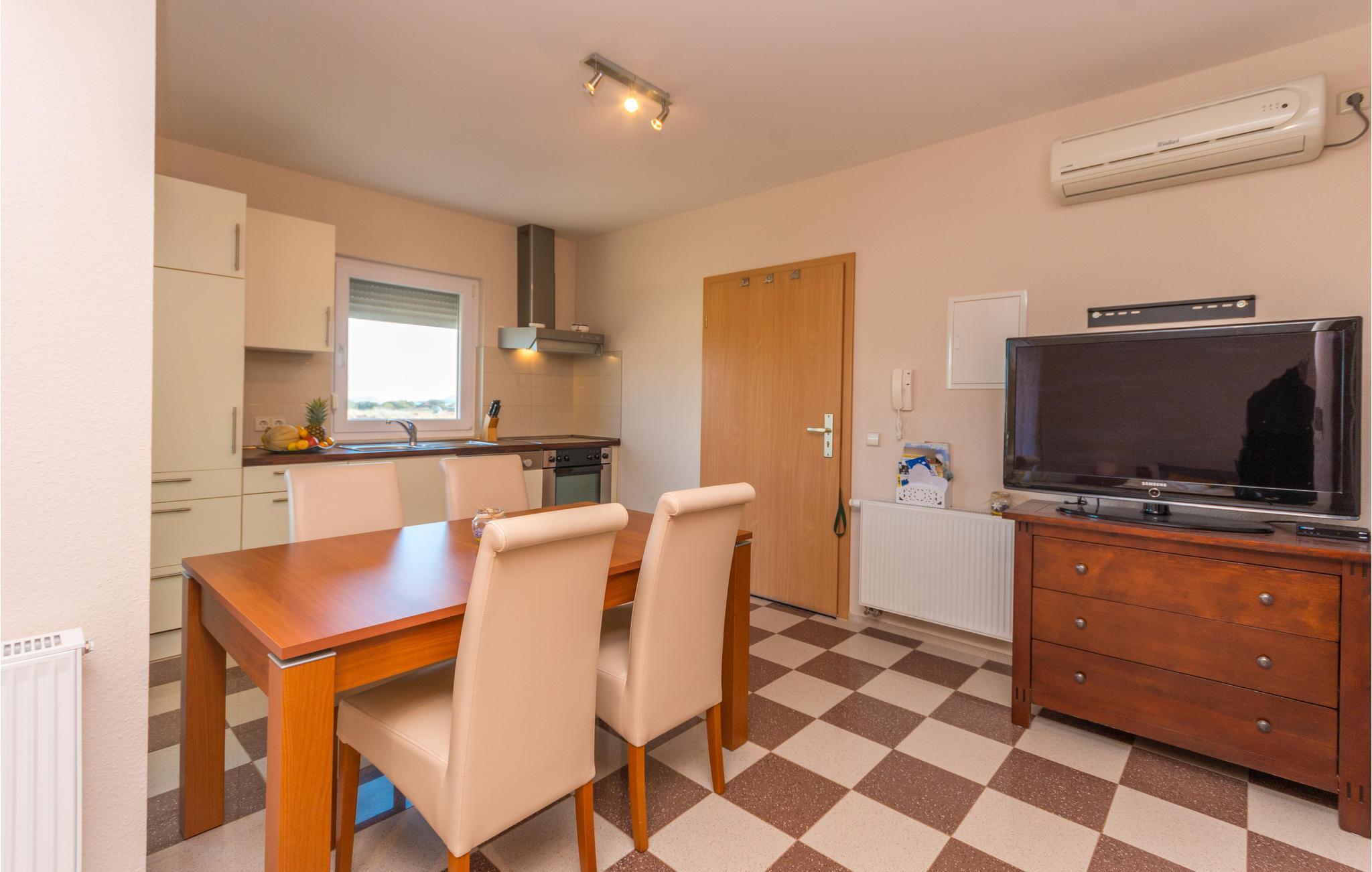 Dieses Ferienhaus mit Pool befindet sich im ruhigen Ortsteil von Turanj, nahe Zadar. Es hat eine große Wohnung im Erdgeschoss und im Obergeschoss befinden sich mehrere Wohneinheiten: zwei Wohnungen mit je zwei Schlafzimmern, eine Wohnung mit einem Schlafzimmer und ein Studio-Apartment. Das Haus ist sehr geräumig und mit allem ausgestattet, was Sie für einen komfortablen Urlaub benötigen. Auf dem begrünten und umzäunten Grundstück gibt es einen beheizten Pool, neben dem eine Konoba mit Kamin, eine zusätzliche Toilette und eine Dusche eingerichtet sind. Jeder Teil des Ferienhauses ist gut ausgestattet und bietet ausreichend Komfort, während der Außenbereich mit Freizeiteinrichtungen Abwechslung bietet. Die überdachte Terrasse bietet kühlenden Schatten an heißen Sommertagen. Kinder werden den Platz auf jeden Fall für Spiele auf dem Rasen oder im Pool nutzen. Biograd ist ein touristisches und nautisches Reiseziel in Norddalmatien und ein ausgezeichneter Ausgangspunkt für den Besuch von Nationalparks wie Kornati, Paklenica, Krka-Wasserfällen und Plitvicer Seen.