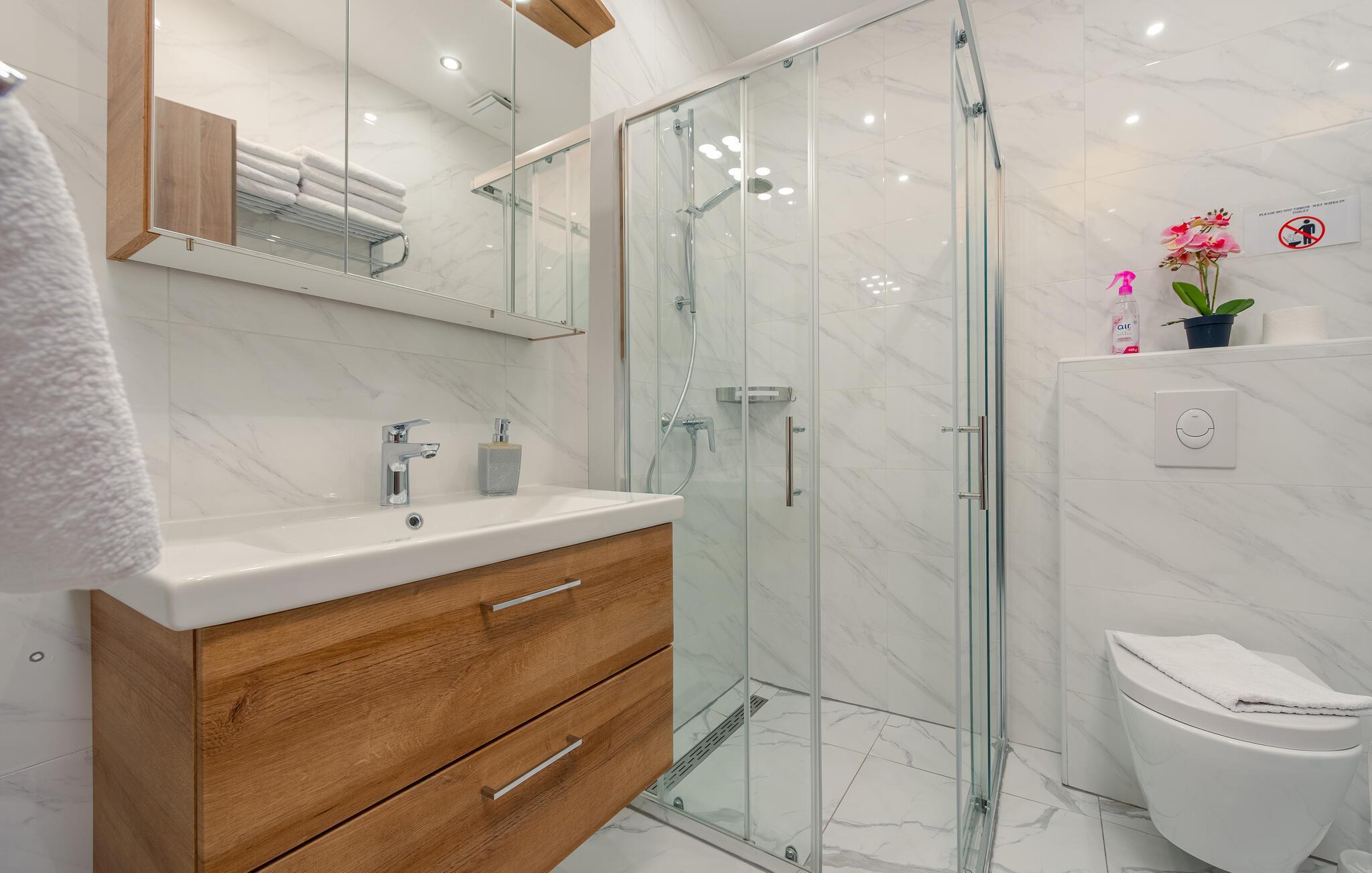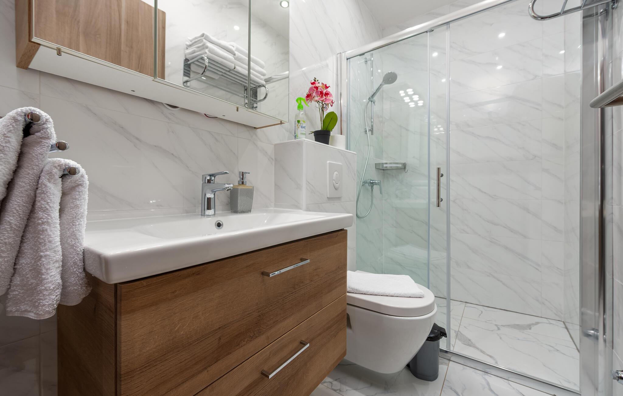 Badezimmer 4m2 (nr. 1) - WC. Warmes und kaltes Wasser. Dusche