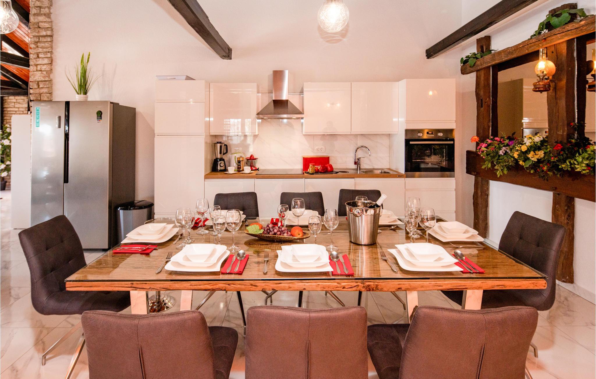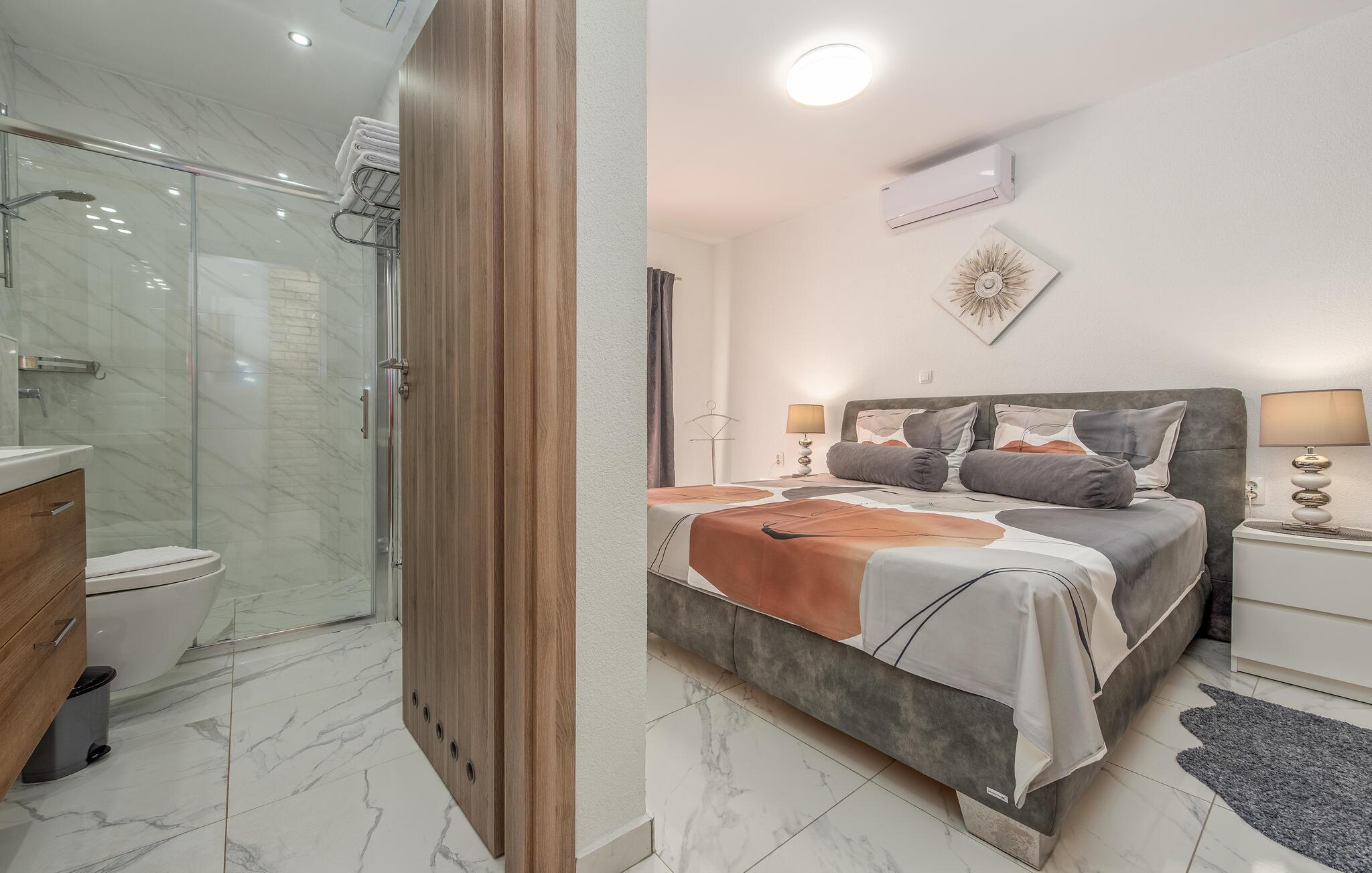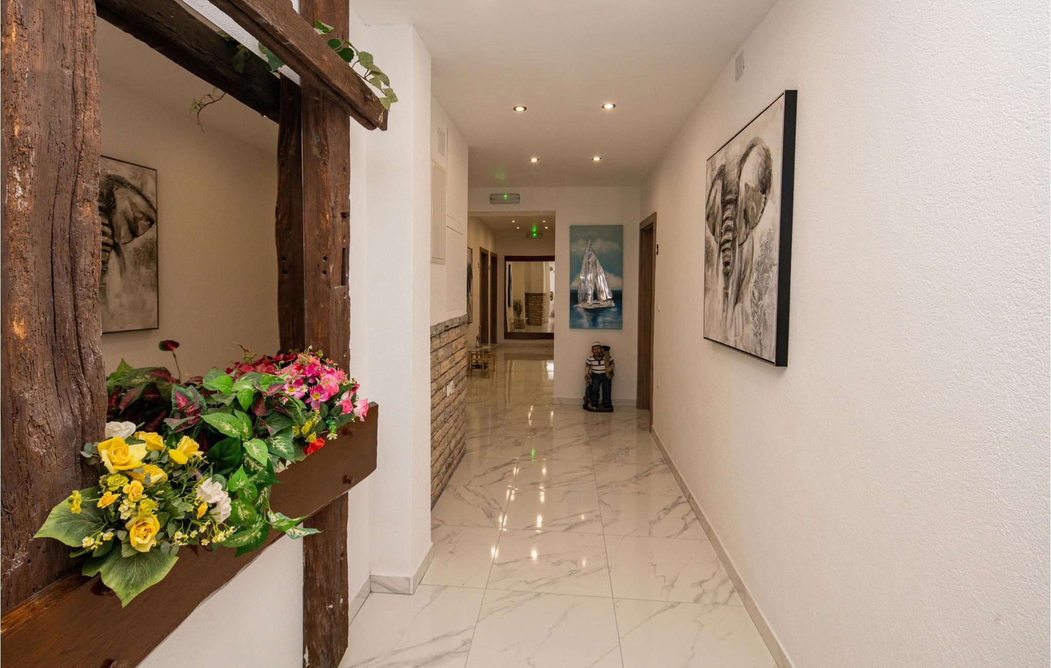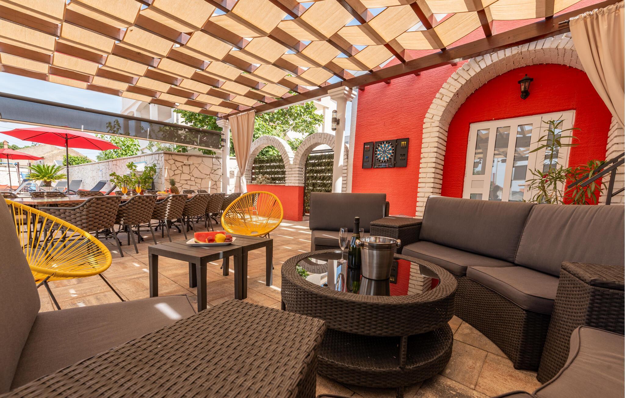 Das wunderschön eingerichtete Interieur bietet 8 klimatisierte Schlafzimmer mit 8 Bädern. Es gibt auch eine Gemeinschaftsküche und ein komfortables Wohnzimmer mit vielen Unterhaltungs- und Entspannungsmöglichkeiten. Für zusätzlichen Komfort gibt es eine finnische Sauna, einen beheizten Pool und einen Whirlpool sowie eine wunderschöne Sonnenterrasse. Für die Kleinsten gibt es ein Kinderbecken von 9 m2, aber auch zusätzliche Kindereinrichtungen.
