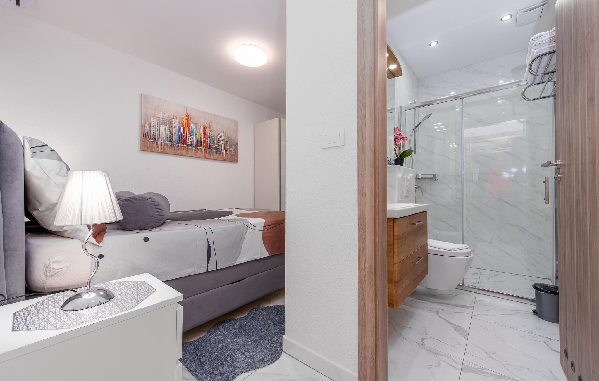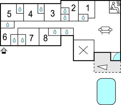 Badezimmer 4m2 (nr. 8) - WC. Warmes und kaltes Wasser. Dusche