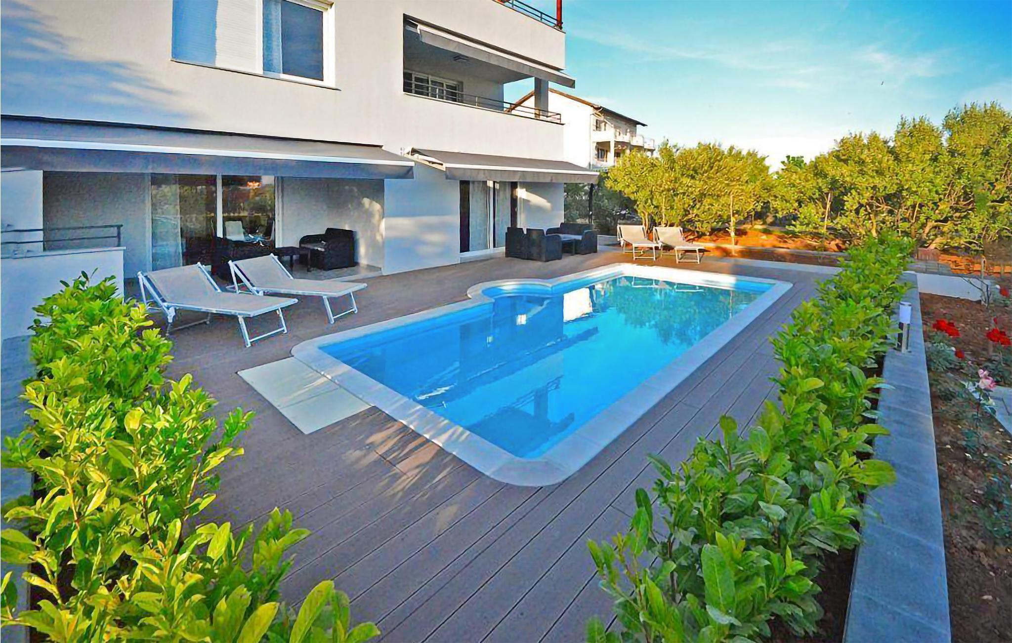 Wenn Ihnen das Meer lieber ist als der Pool, brauchen Sie nur das Handtuch über die Schulter werfen und den kurzen Weg zum Kiesstrand gehen und den Wellen entgegenspringen. Das türkisfarbene Meer lädt zum Baden und Tauchen ein oder Sie verweilen in der Sonne. Besuchen Sie Biograd, wo Sie in der Marina bummeln und Boote bestaunen können. Die Stadt bietet außerdem Restaurants und Cafés, wo Sie unbedingt die lokalen Spezialitäten probieren sollten. Im Vraner See Naturpark können Sie beim Wandern und Radfahren wunderschöne Natur entdecken und werden die Ruhe und Friedlichkeit der Landschaft zu schätzen wissen.