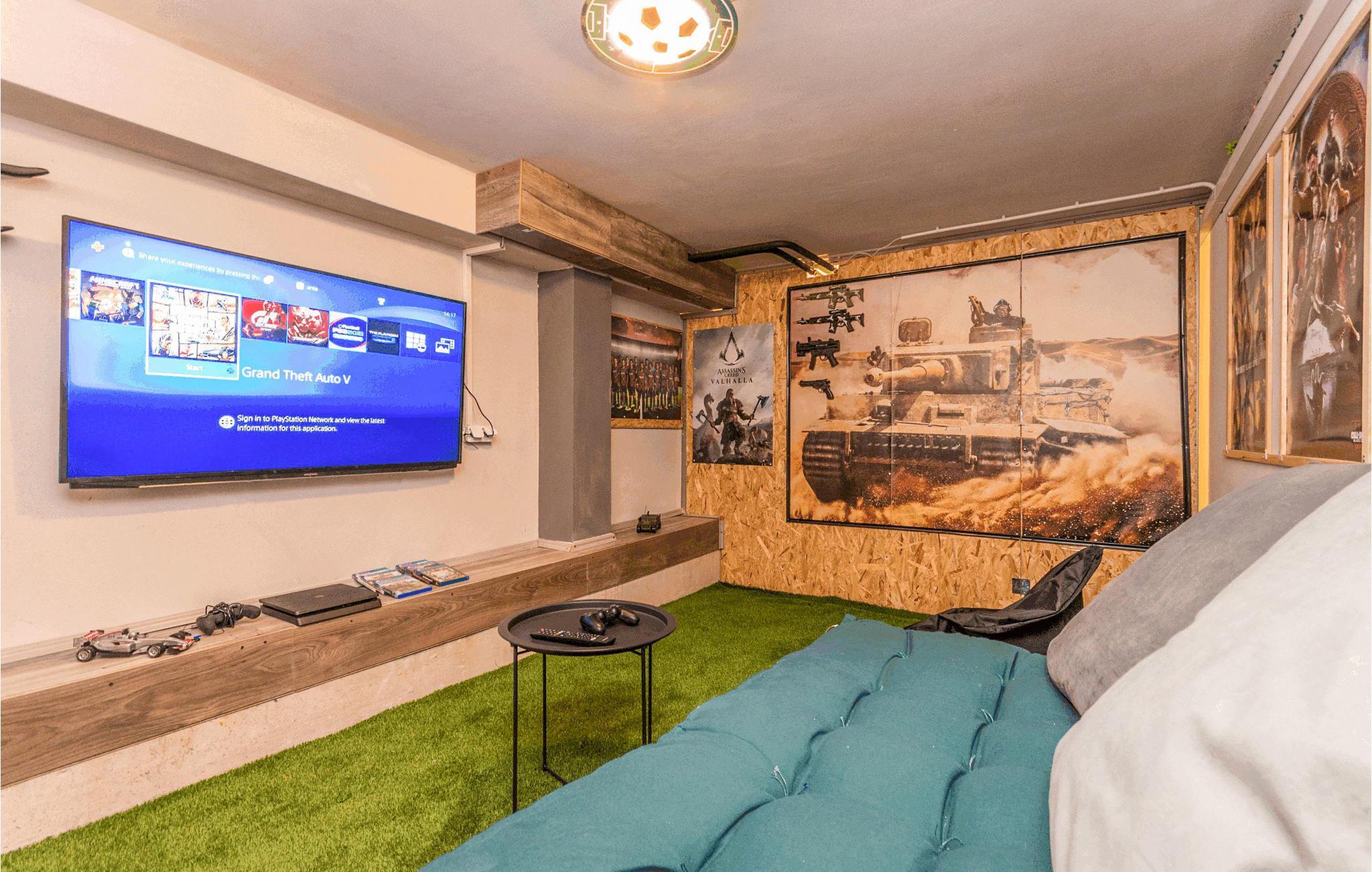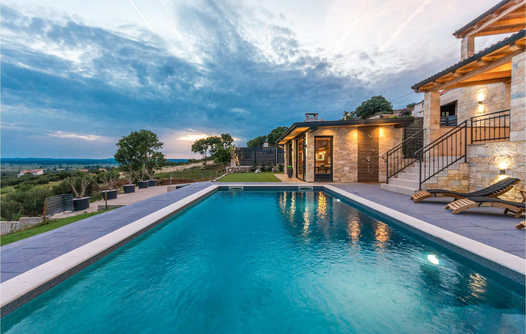 Willkommen in der wunderschönen Villa La Vrana. Diese außergewöhnliche Lage verbindet Natur und Luxus. Das Erdgeschoss bietet Ihnen ein elegantes Wohnzimmer mit Panoramablick, eine voll ausgestattete Küche und ein Esszimmer, das ideal für Ihre gemeinsame Mahlzeiten ist. Entdecken Sie die geschmackvoll und individuell eingerichteten Räume auf mehreren Etagen. Der Entertainmentraum bietet Ihren Kindern zudem Unterhaltung mit Videospielen.