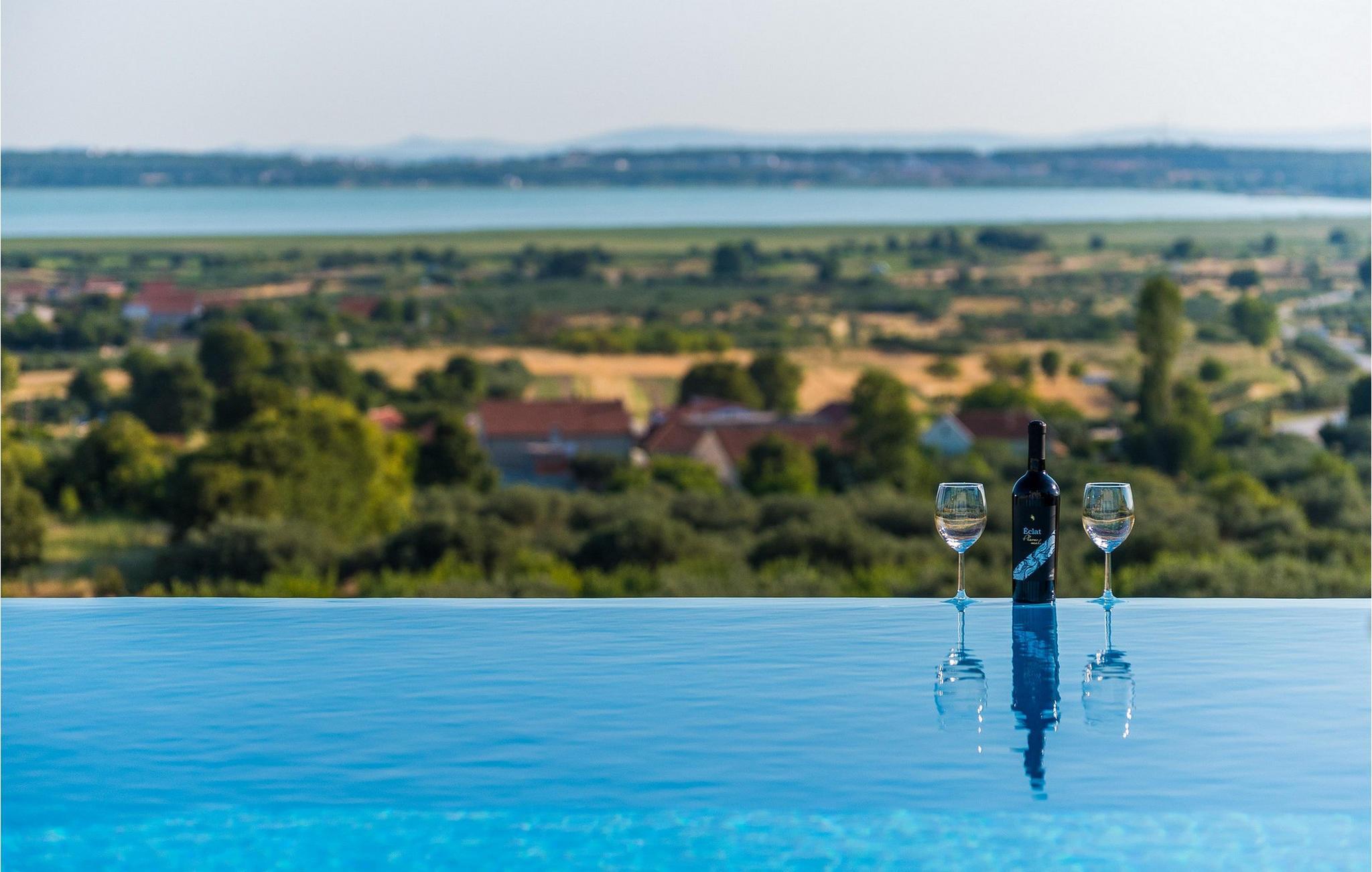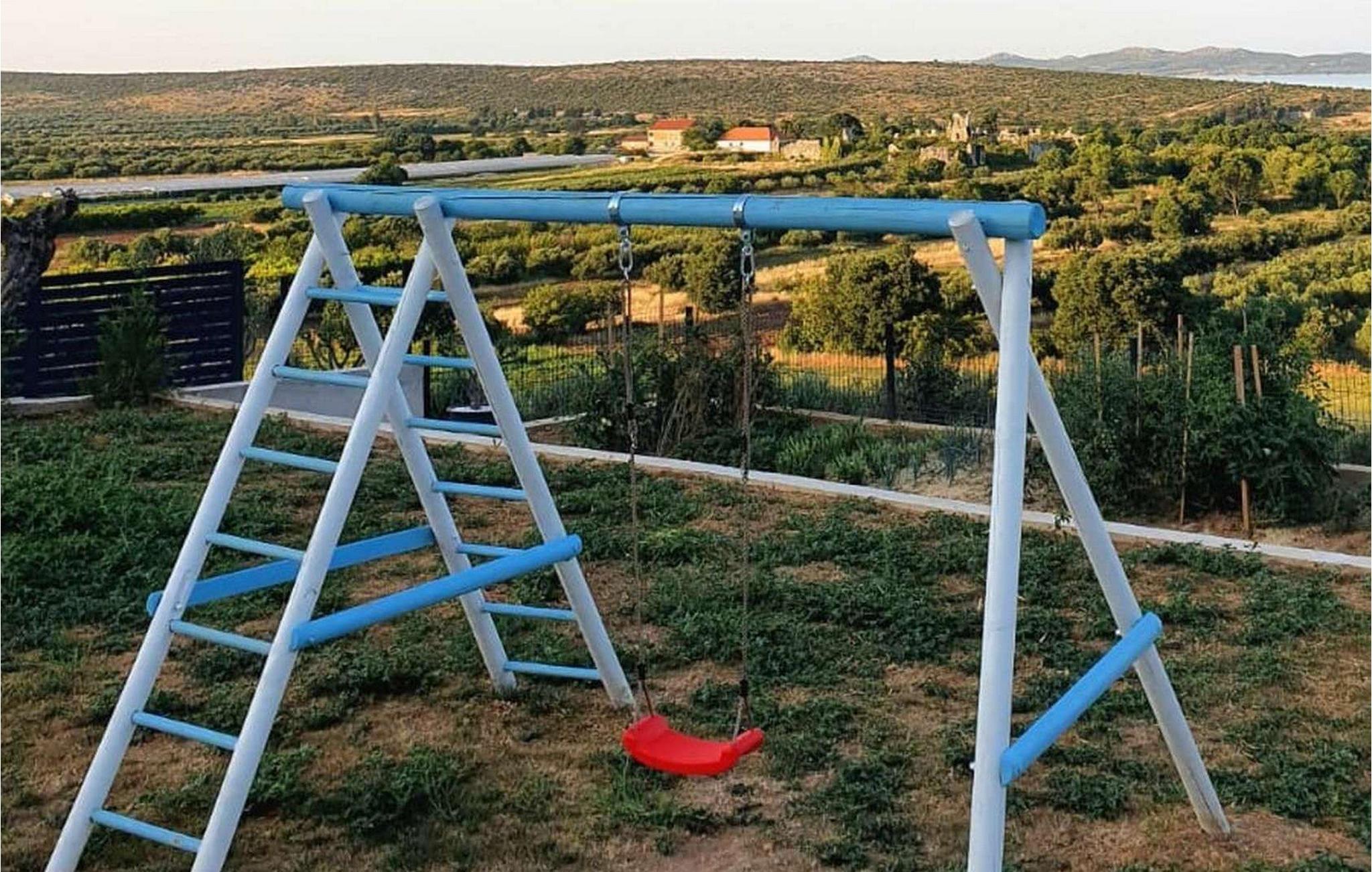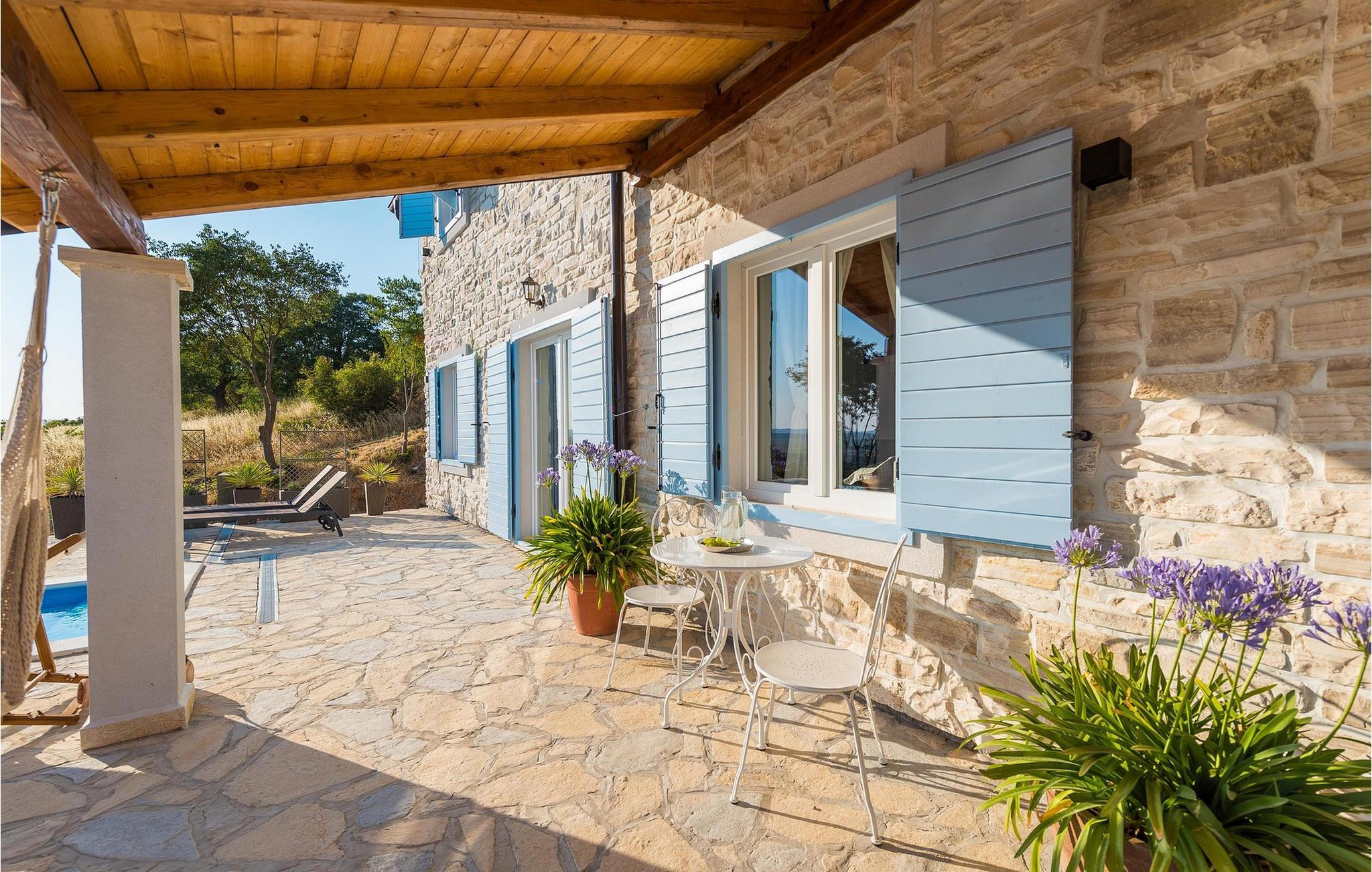 Genießen Sie den wunderschönen Blick über die sanfte Landschaft bis hin zum glitzernden Meer, während Sie am Pool entspannen. Erfrischen Sie sich mit einem Sprung ins kühle Wasser oder ruhen Sie sich auf einer der Sonnenliegen im Schatten der Terrasse aus. Lassen Sie den Tag gemütlich auf der überdachten Veranda ausklingen und beobachten Sie, wie die Abendsonne das Haus in goldenes Licht taucht.