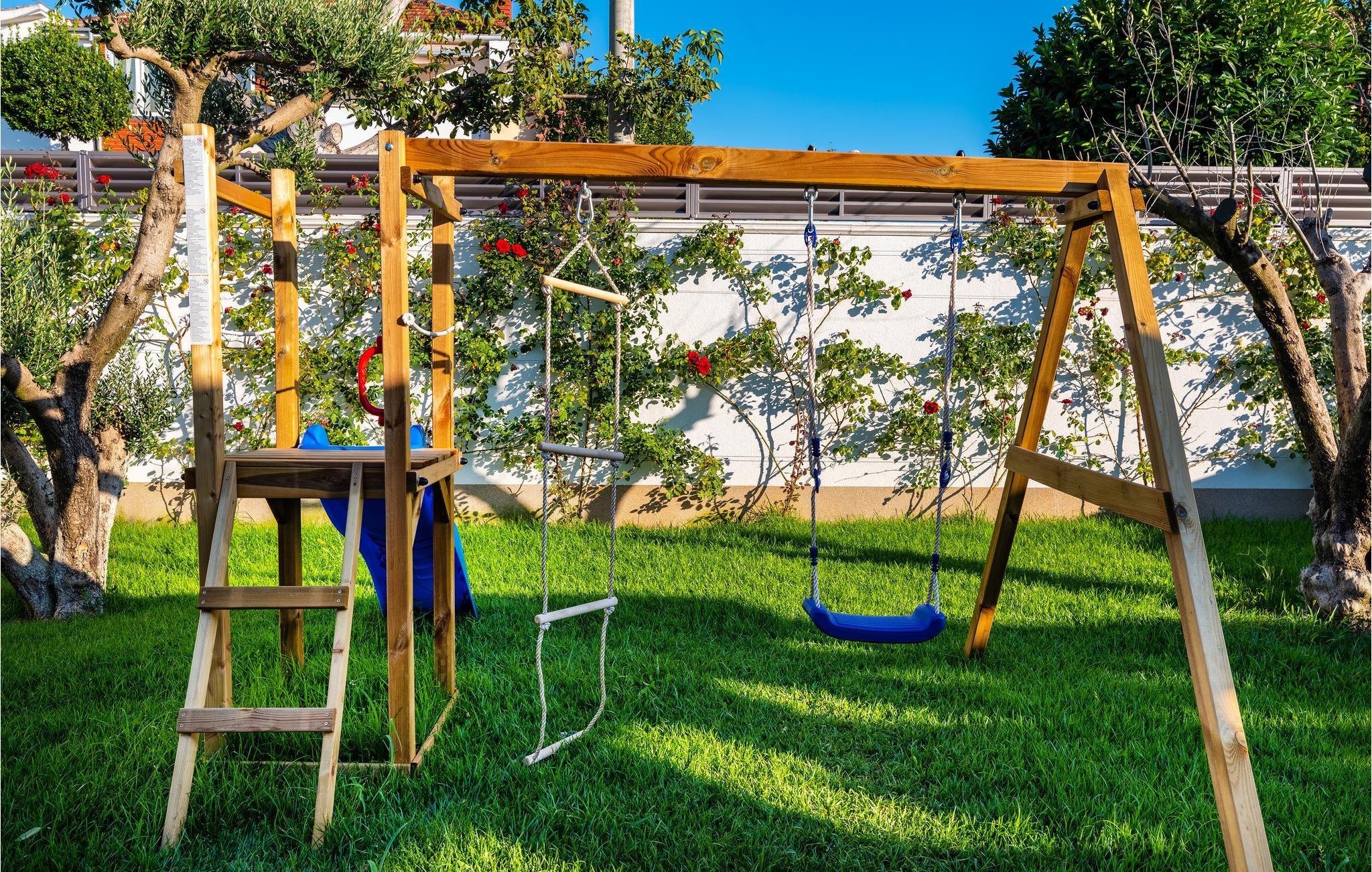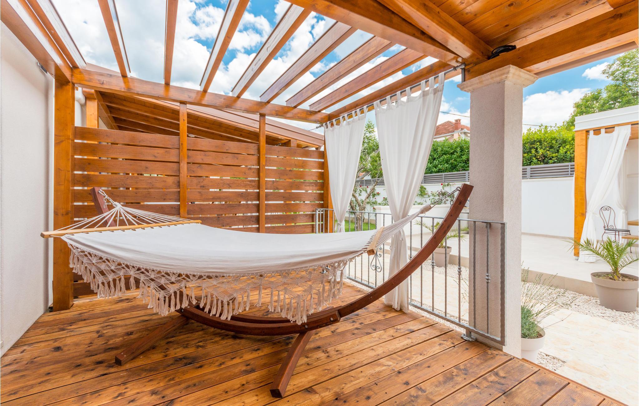 Dieses einzigartige Ferienhaus mit Pool liegt in der Stadt Biograd na Moru und bietet Ihnen alles, was den Urlaub für Sie und ihre Familie oder mit Freunden erholsam und gemütlich macht. Behaglicher Komfort, umzäunter Garten mit Pool, Liegestühle, angelegter Garten und Gartenmöbel sowie Spielsachen für Kinder sind die Vorteile dieses Domizils. Das Ferienhaus besteht aus drei separaten Wohnungen mit jeweils zwei Schlafzimmern, zwei Badezimmern und einer Wohnküche. Die große Außenküche mit Essbereich lädt zu geselligen Stunden im Freien ein. Schöne Strände und andere Attraktionen liegen in Reichweite. Es gibt auch einen Vergnügungspark nahe Biograd, der viele gastronomische Einrichtungen, Spielspaß besonders für Kinder sowie Souvenirläden bietet. Empfehlenswert ist auch ein Besuch der Städte Zadar und Šibenik, die voller historischer und kultureller Sehenswürdigkeiten sind.