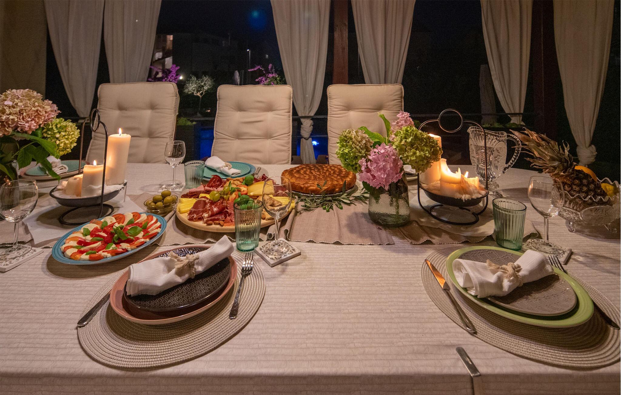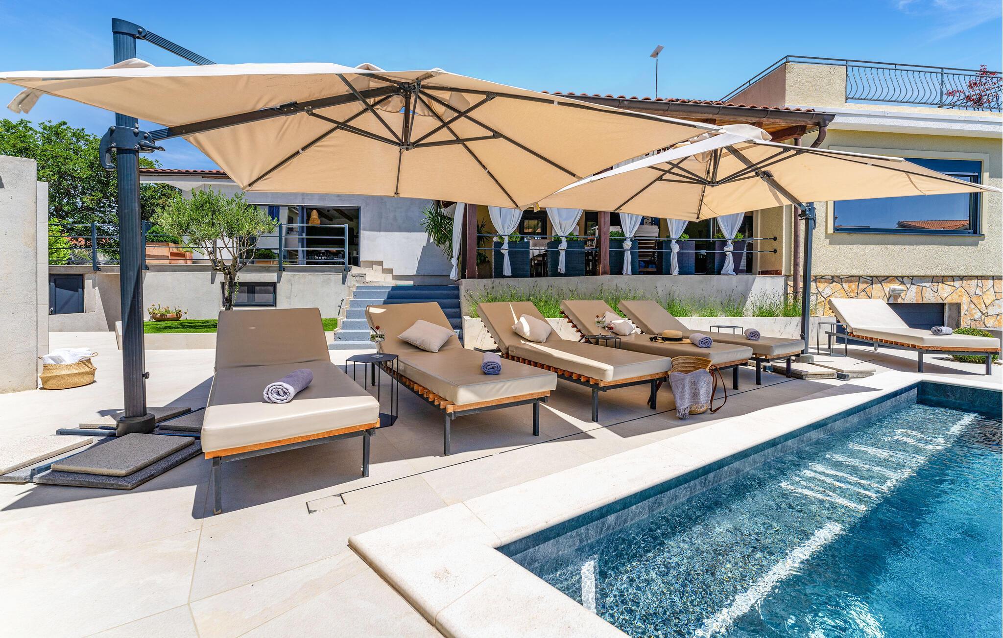 Sie haben die Möglichkeit auf der oberen Terrasse mit teilweise Meerblick Ihren Morgenkaffee zu genießen oder angenehme Momente auf der überdachten Terrasse mit Blick auf den Pool und Garten zu verbringen.