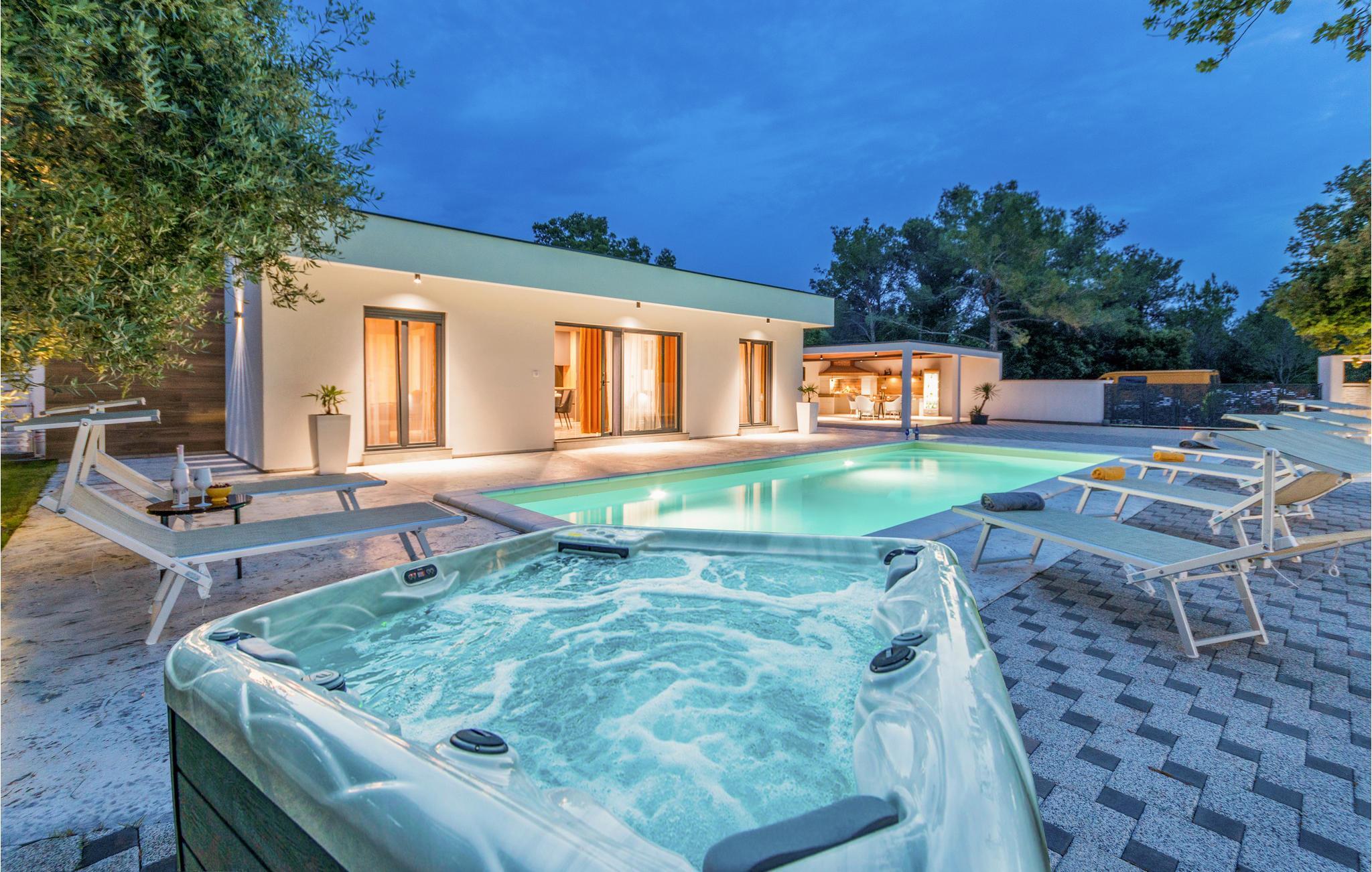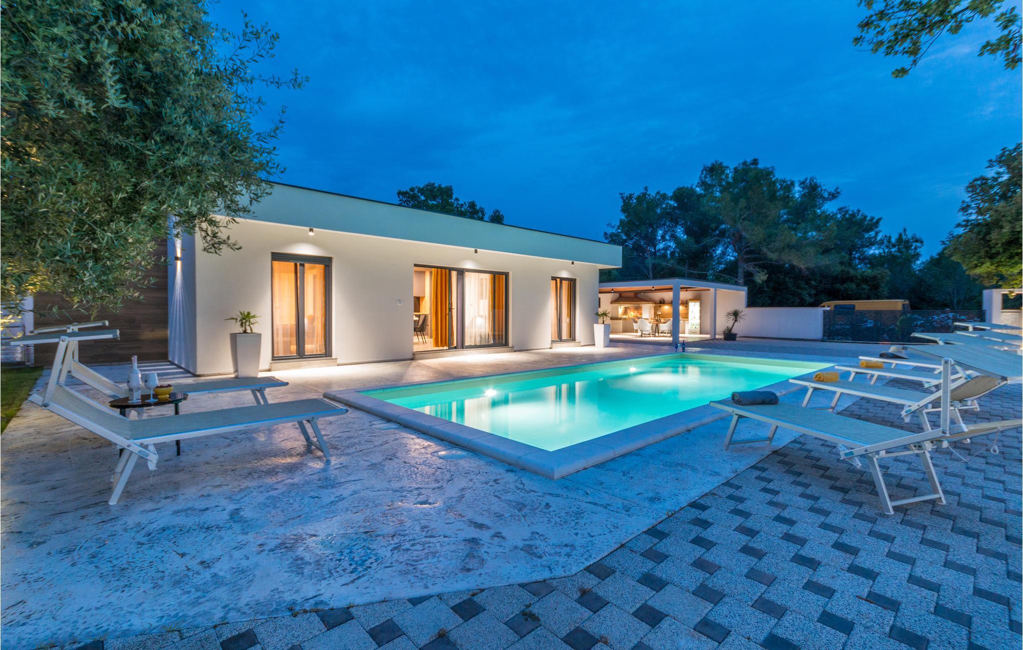Luxuriöses Ferienhaus mit Pool, Aussenküche und -dusche.