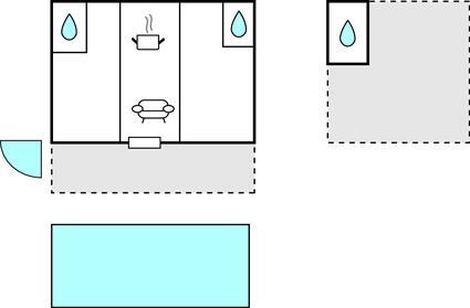 Badezimmer 6m2 (nr. 1) - WC. Warmes und kaltes Wasser. Dusche