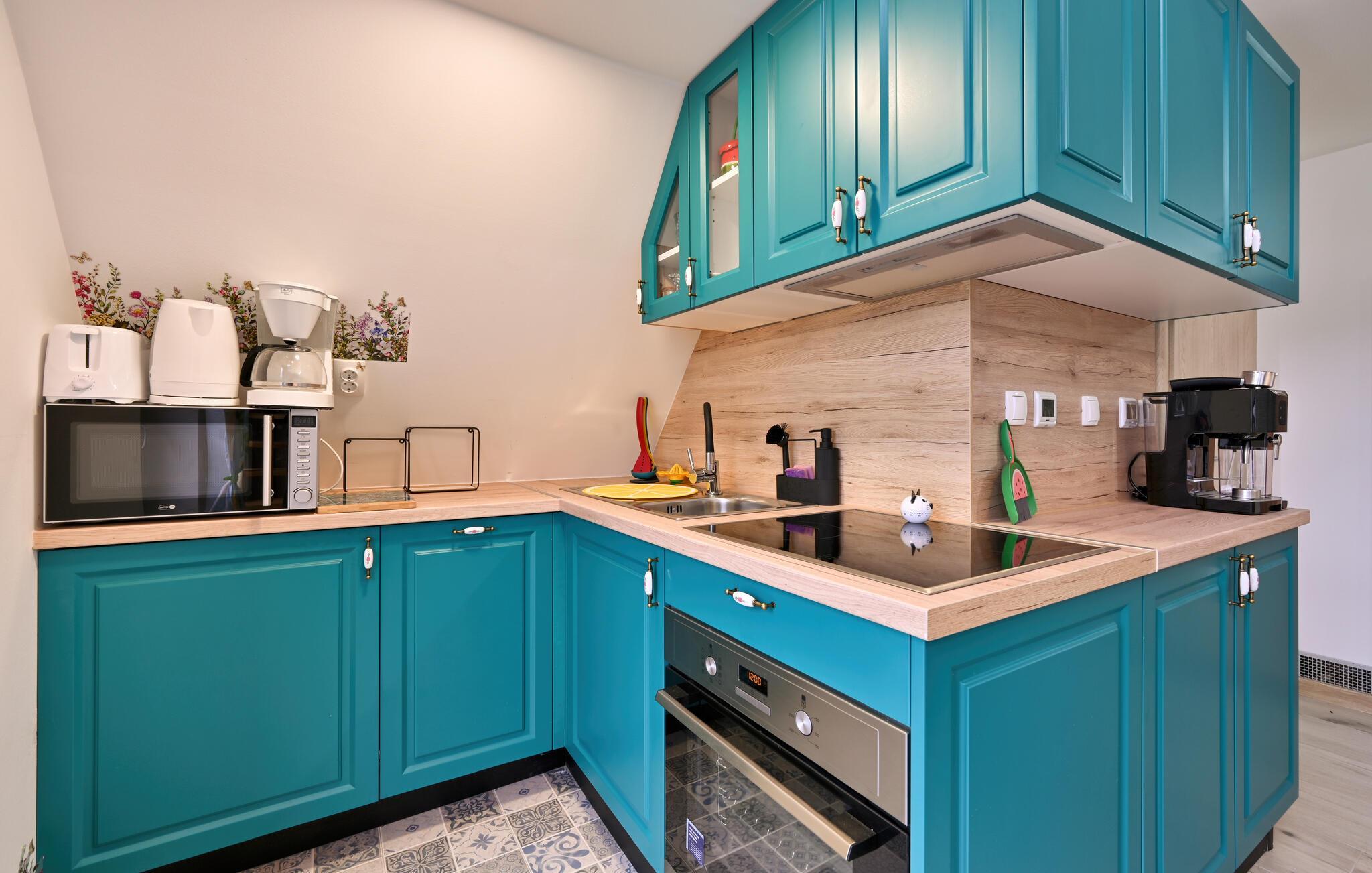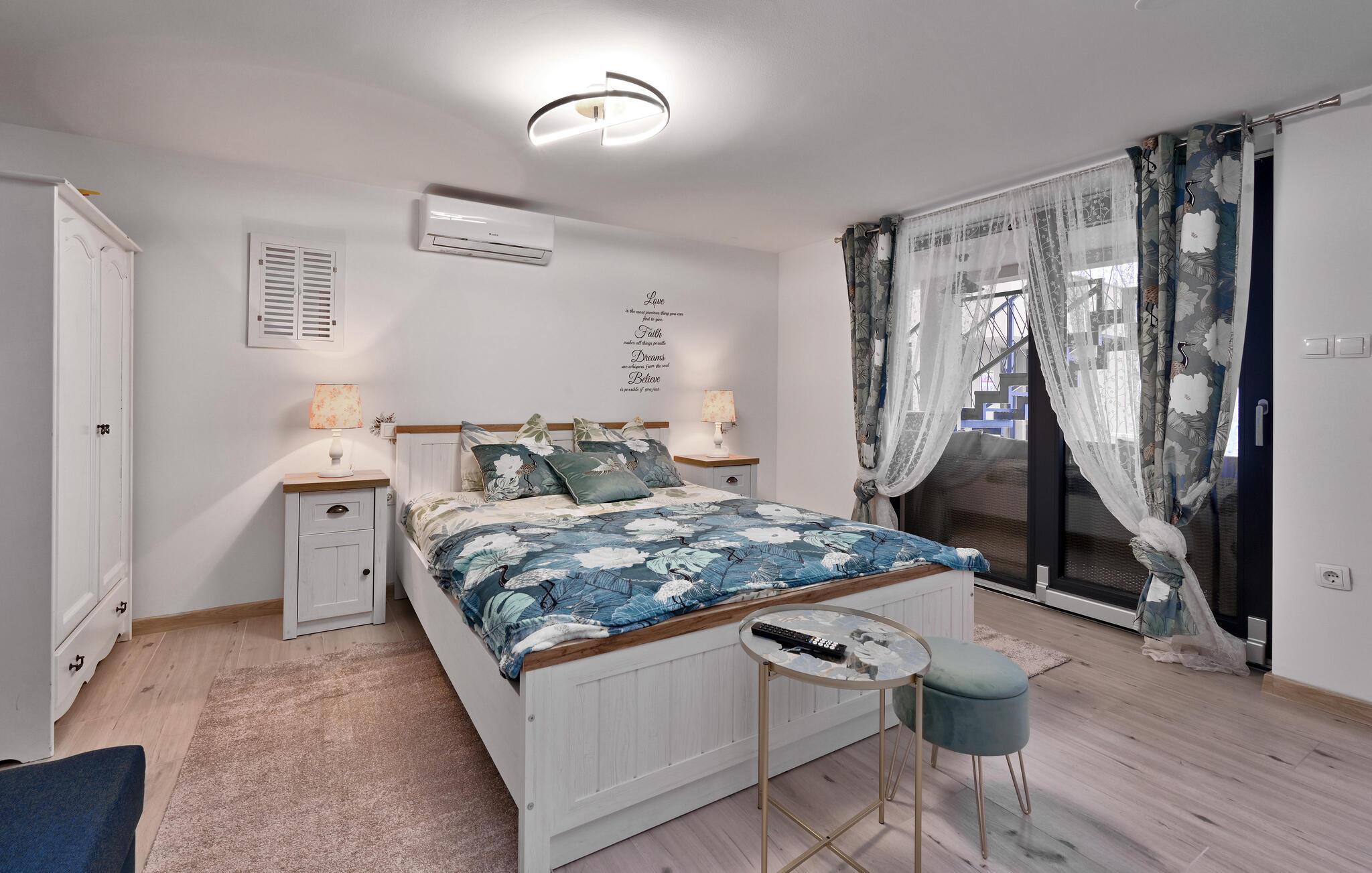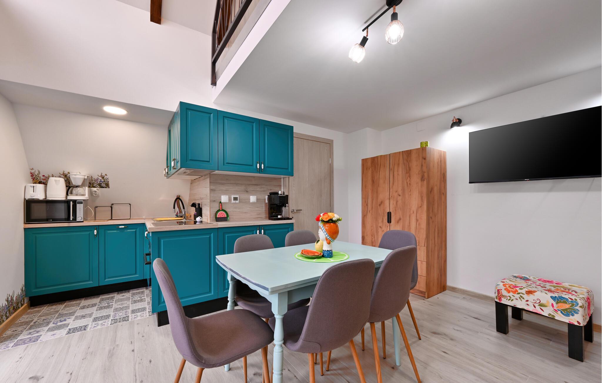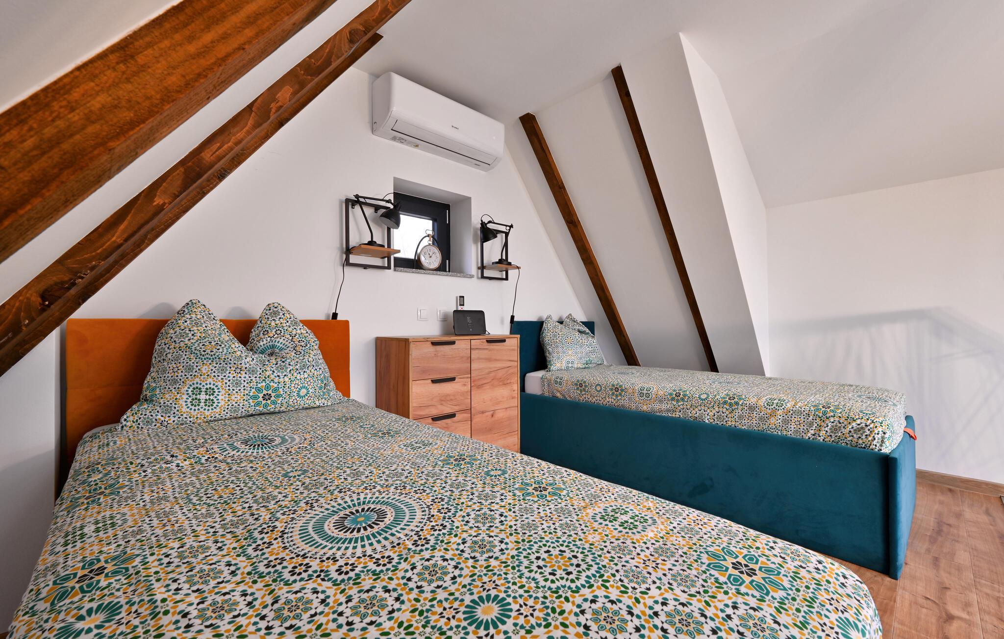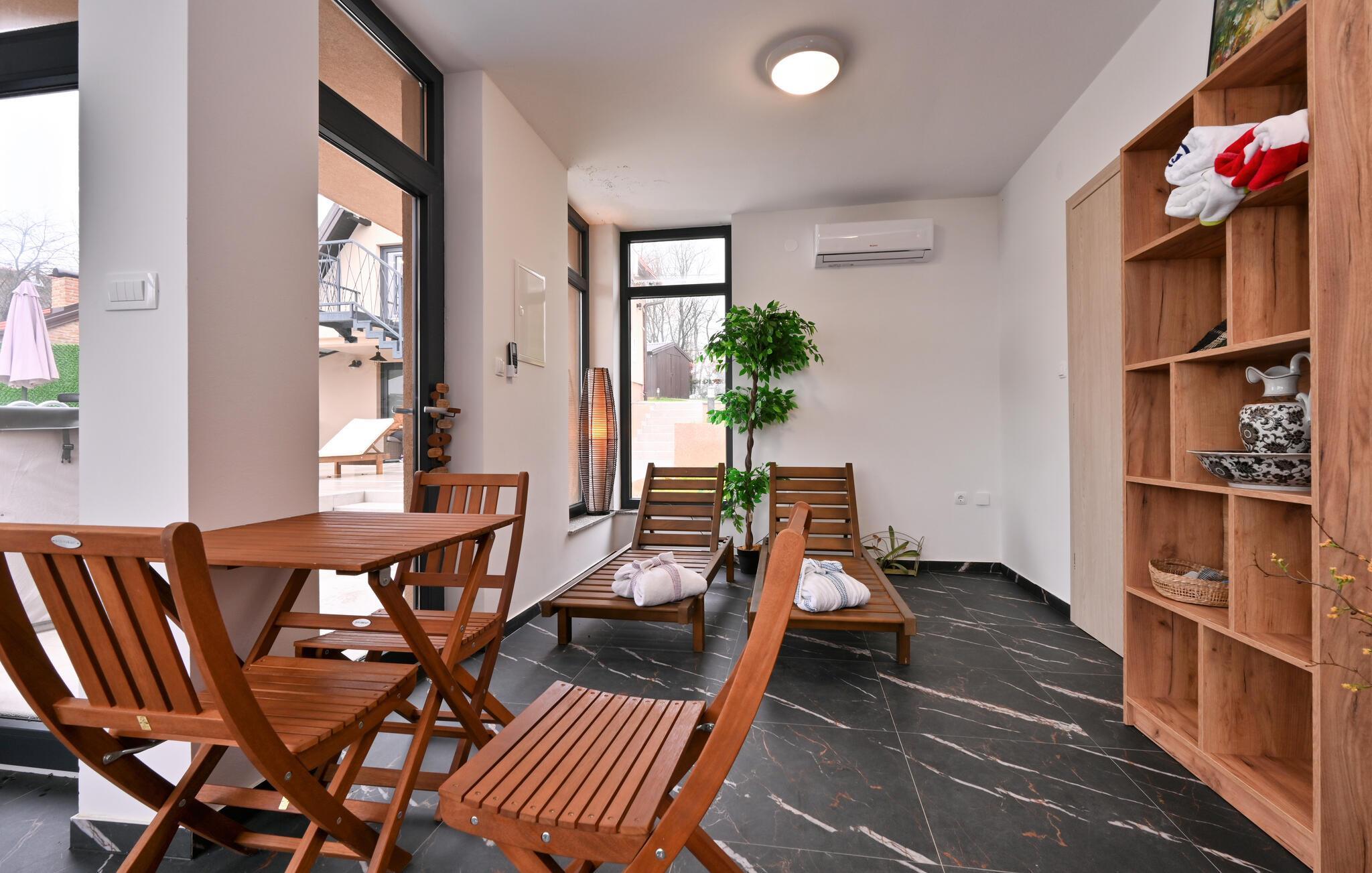 Willkommen in Ihrem gemütlichen Ferienhaus in Bjelovar, das Sie und Ihre Liebsten während eines entspannten Urlaubs rundum verwöhnen wird. Freuen Sie sich auf ein ausgedehntes Frühstück im liebevoll gestalteten Ambiente der offenen Küche, die Sie zum gemeinsamen Kochen Ihrer Lieblingsmahlzeiten einlädt. Gönnen Sie sich entspannte Momente in der Sauna oder im Whirlpool und finden Sie abends zu geselligen Film- oder Spieleabenden im behaglichen Wohnzimmer zusammen.