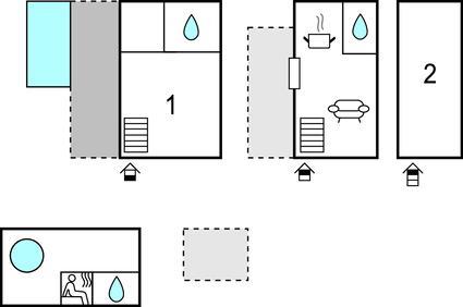 Badezimmer 4m2 (nr. 1) - WC. Warmes und kaltes Wasser. Dusche