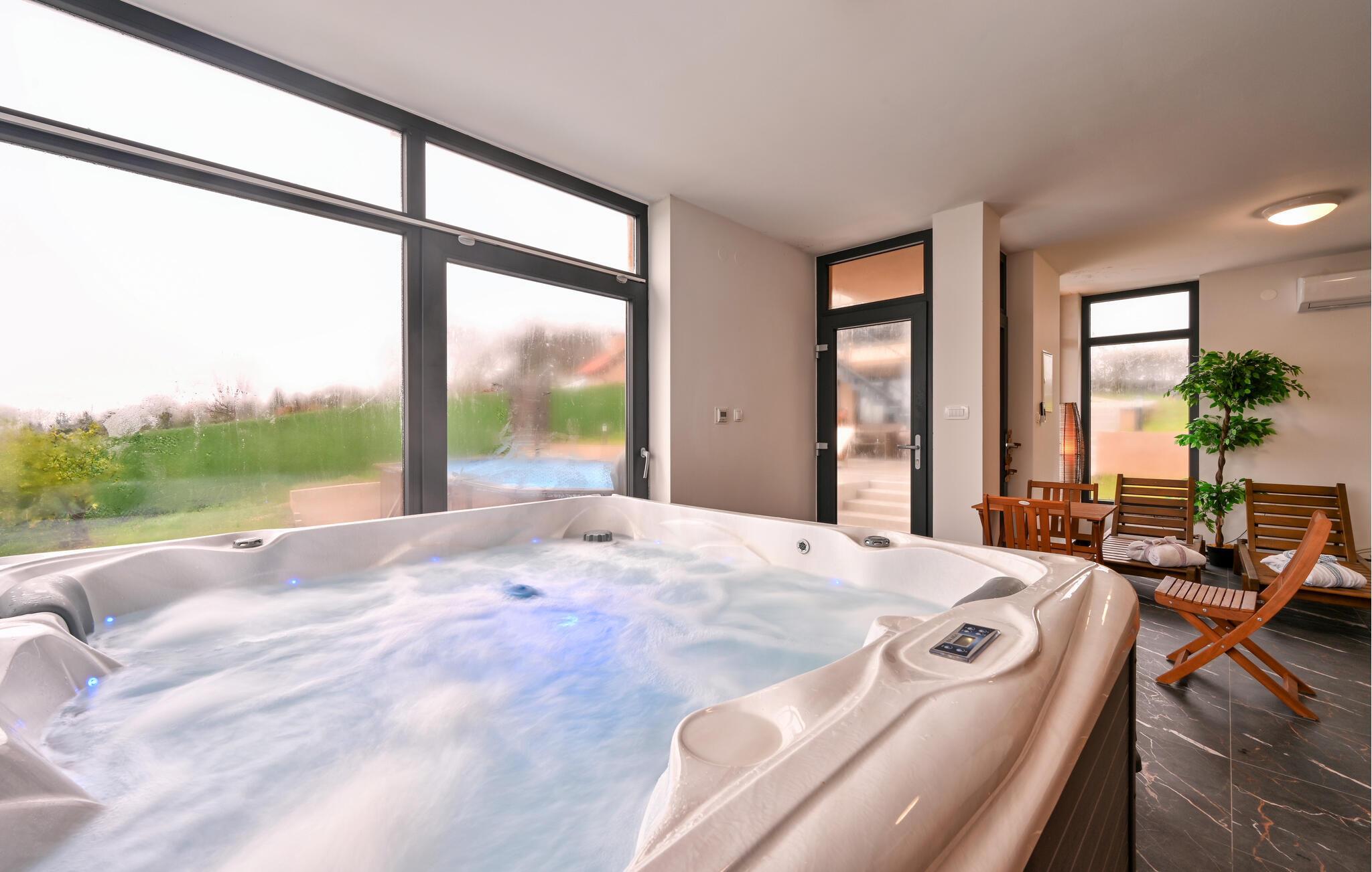 Gönnen Sie sich Erholung in diesem familienfreundlichen Ferienhaus mit eigenem Wellness-Bereich.