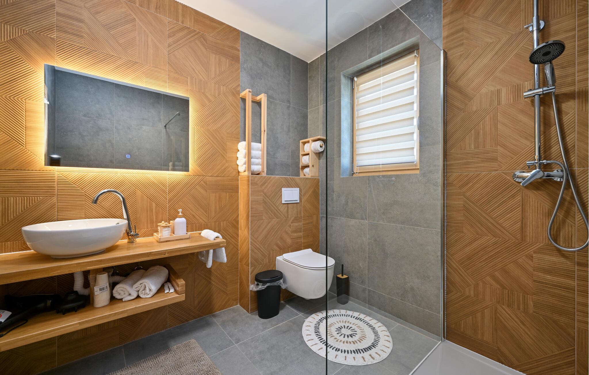Badezimmer (nr. 1) - WC. Warmes und kaltes Wasser. Dusche
