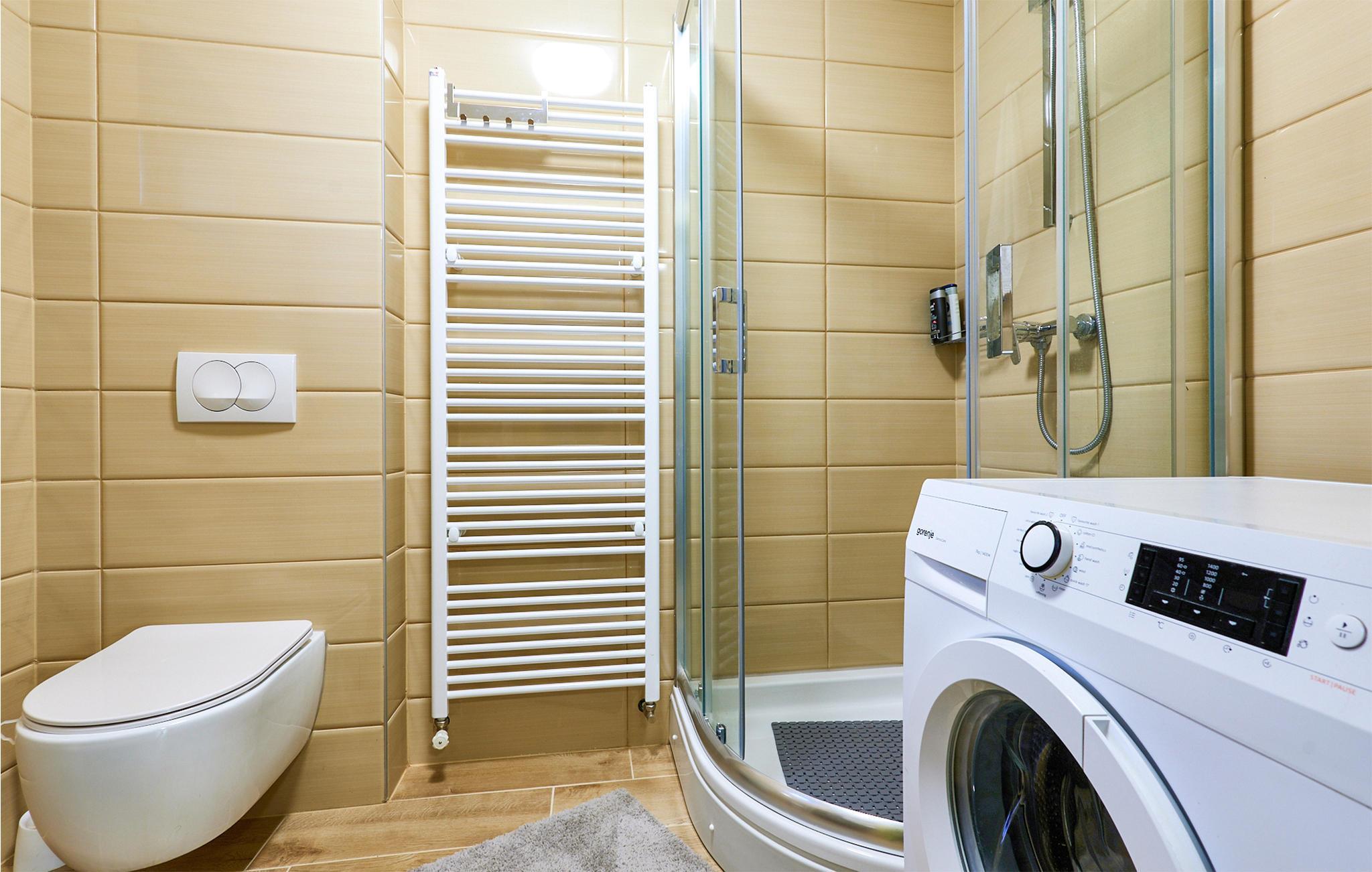 Badezimmer 4m2 (nr. 2) - WC. Warmes und kaltes Wasser. Dusche