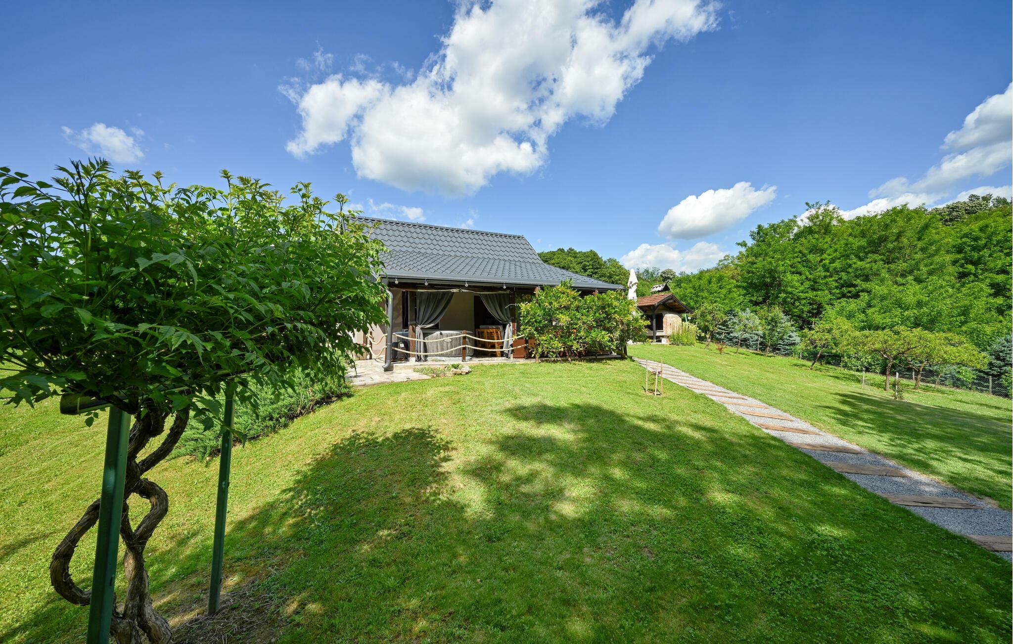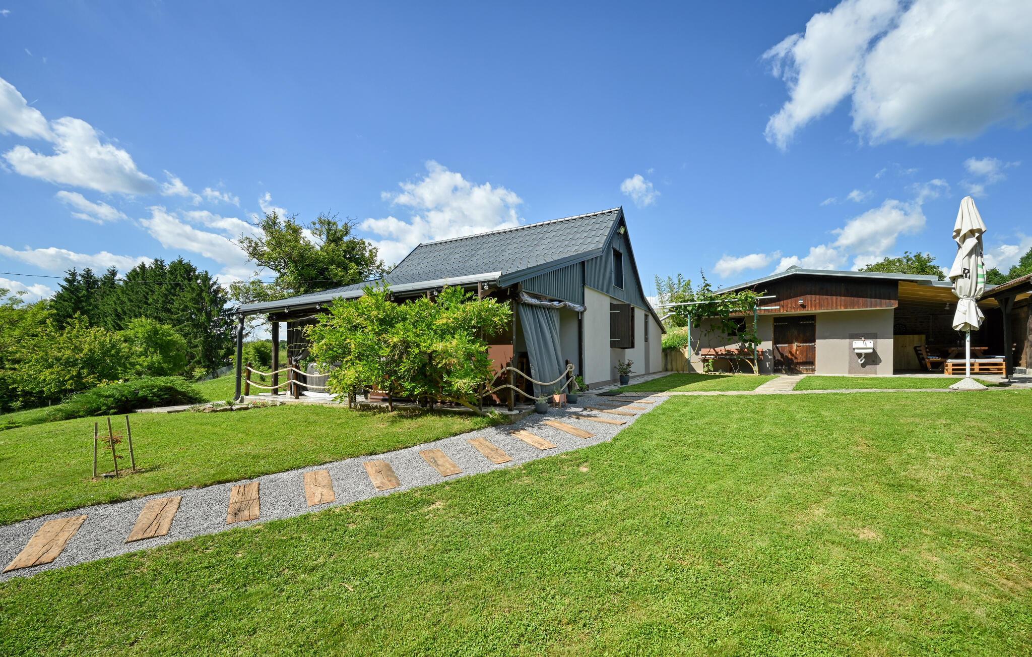 Verbringen Sie Ihren nächsten Familienurlaub in diesem schönen Ferienhaus mit Whirlpool und großem Garten in idyllischer Lage.