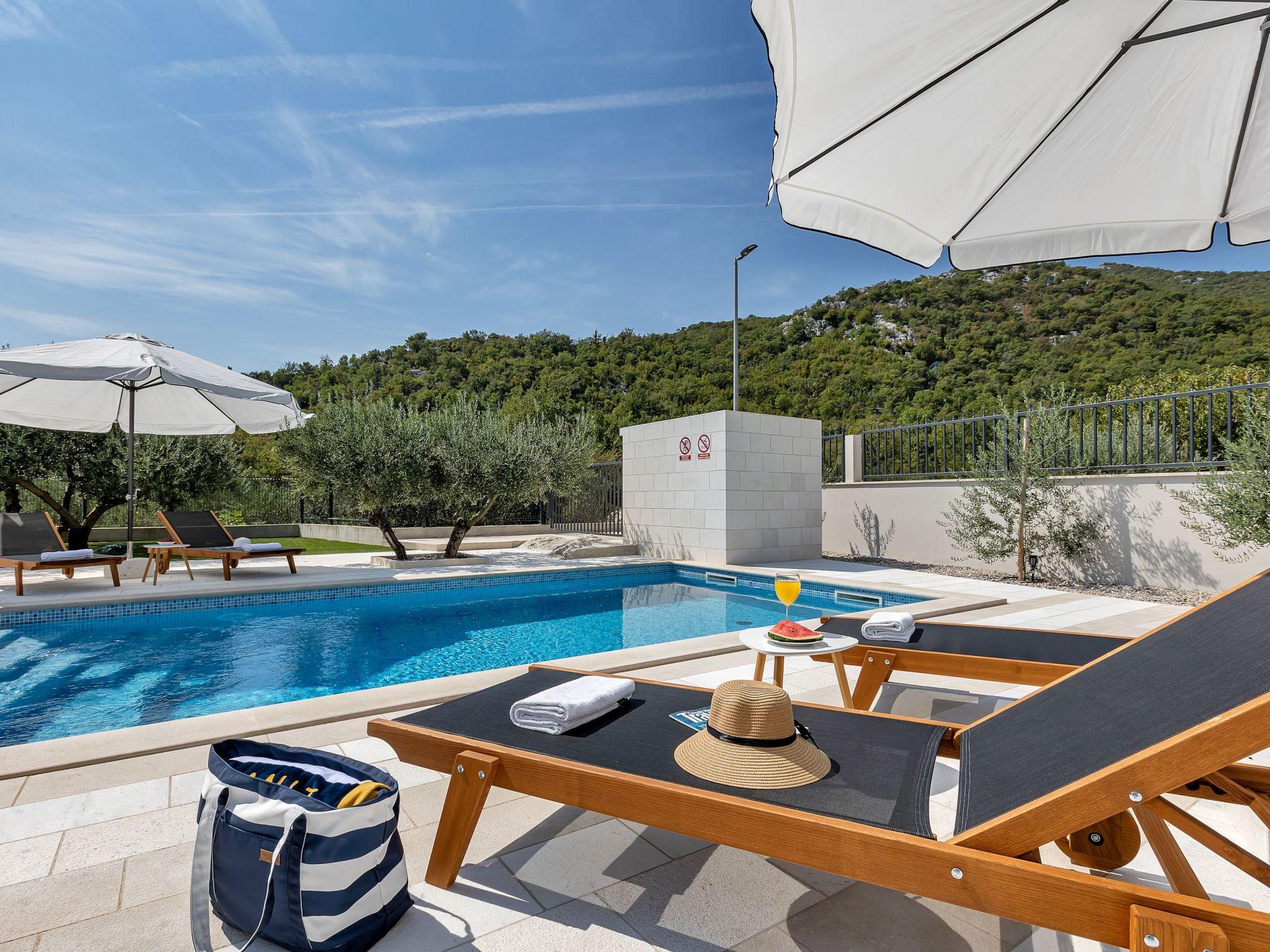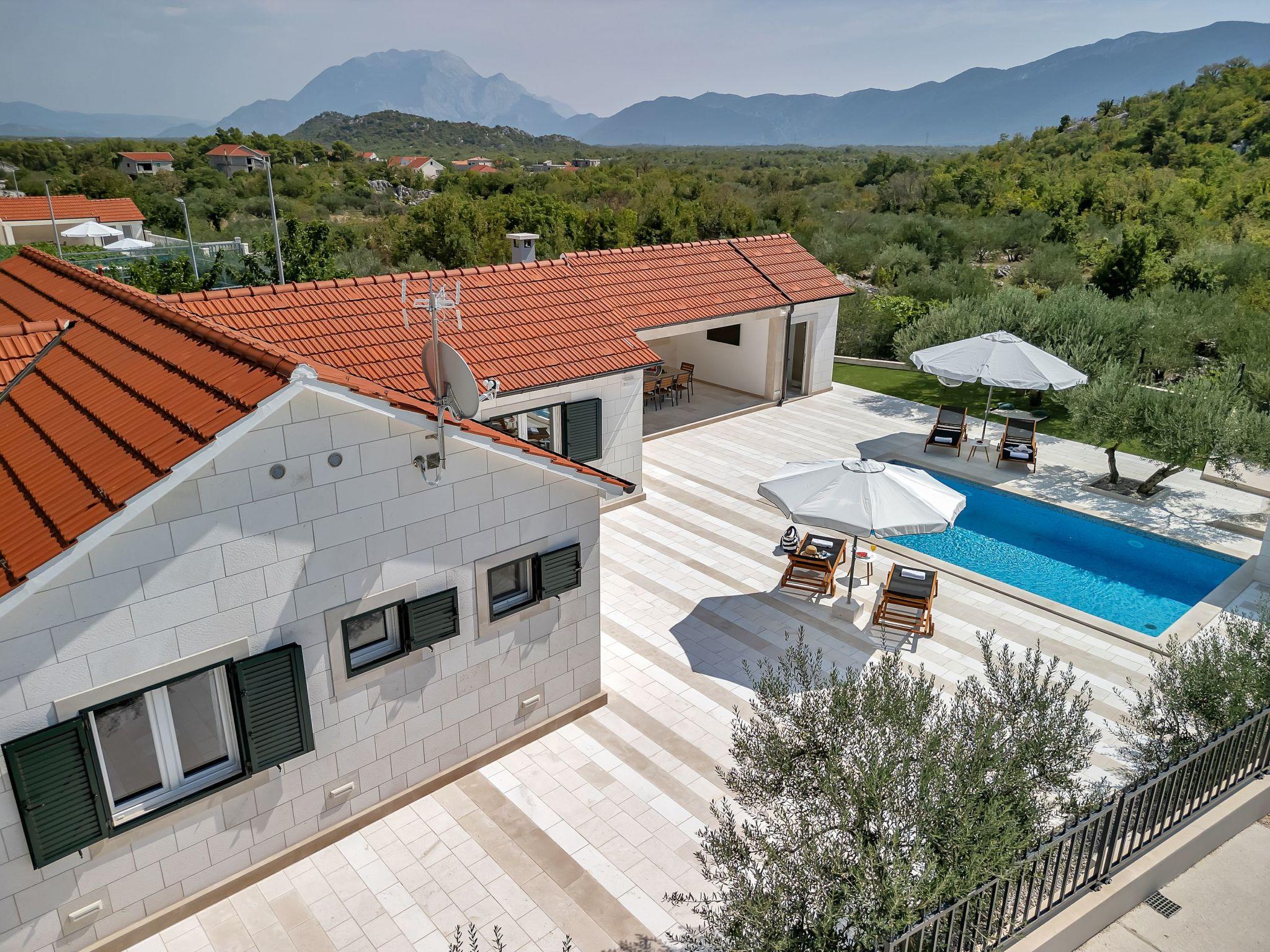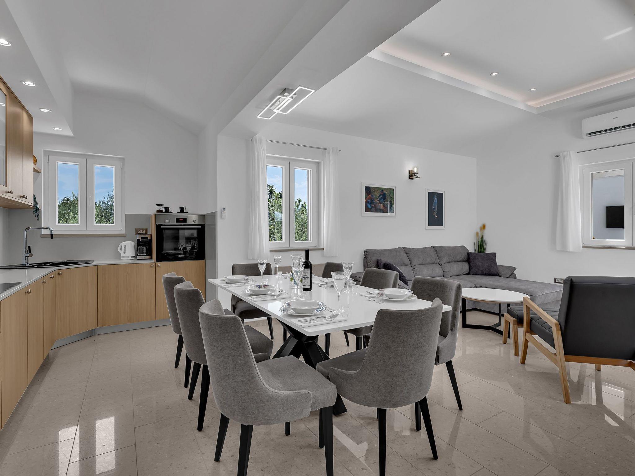 Die Villa Maslina bietet Platz für 6+2 Personen in 3 Schlafzimmern und einem Wohnzimmer (insgesamt 5 Betten). Villa Maslina verfügt über 2 Badezimmer und eine zusätzliche Toilette, eine ausgestattete Küche mit Essecke und einen privaten Swimmingpool im Freien.