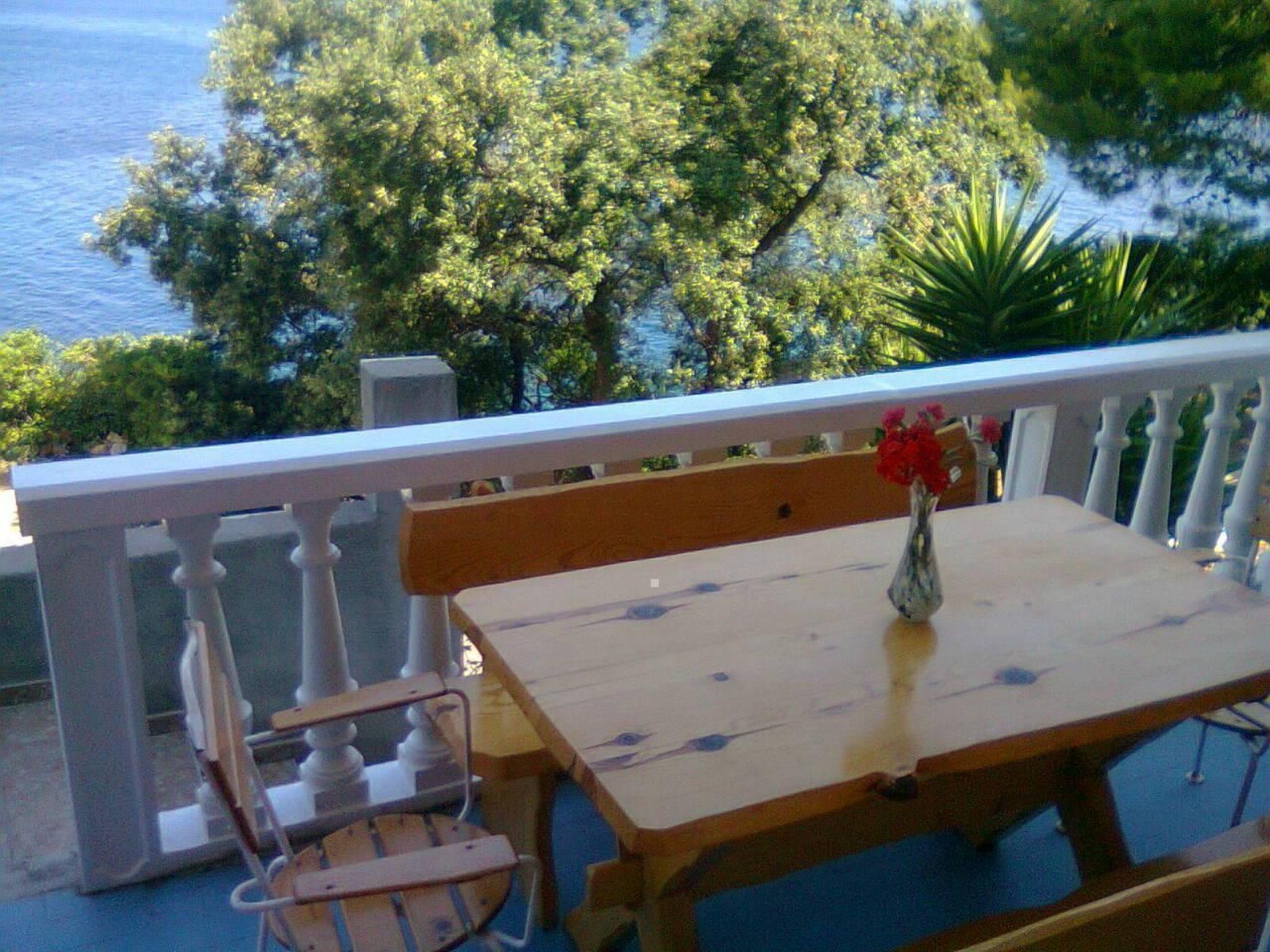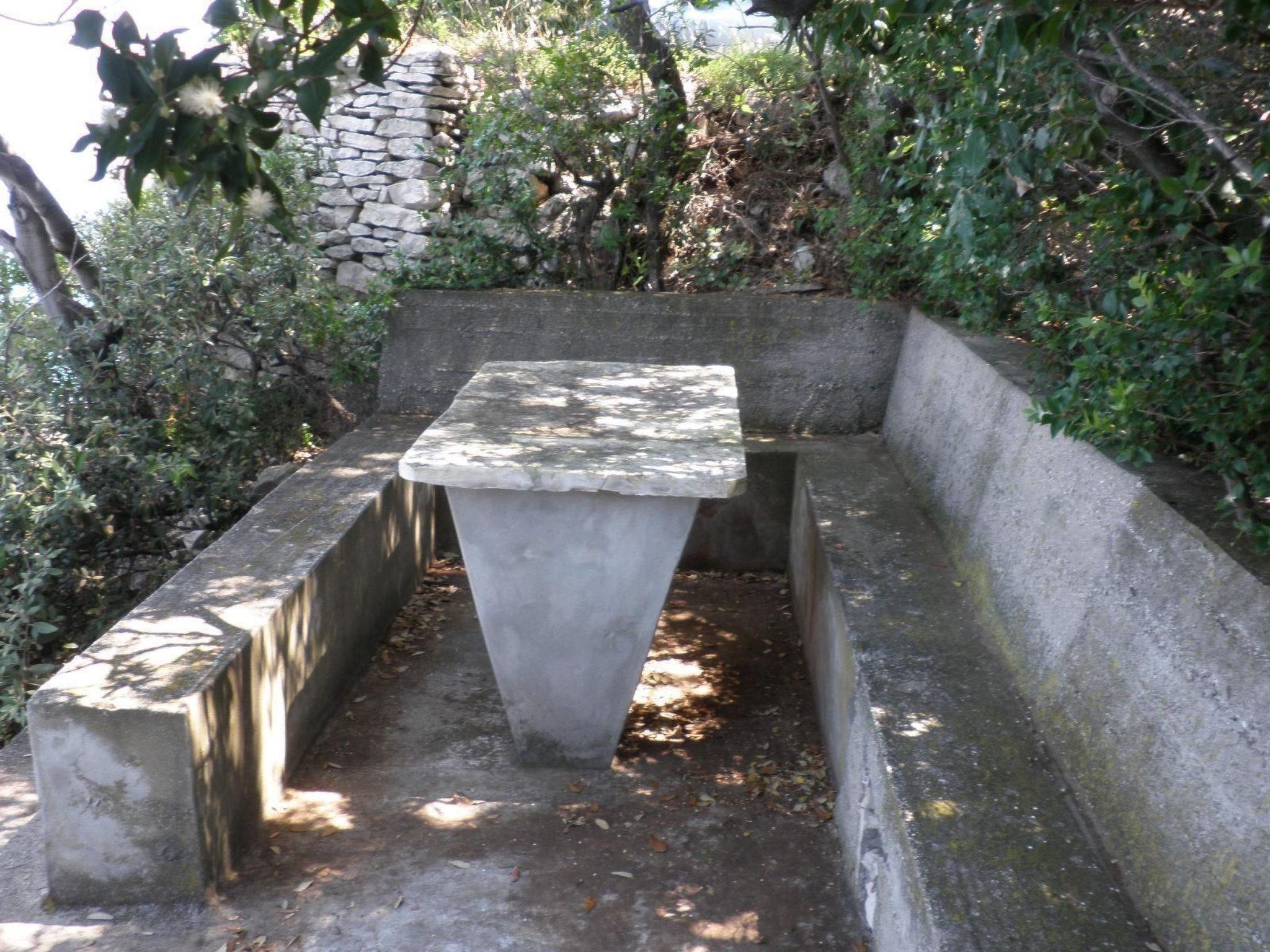 Von der Terrasse aus haben Sie einen herrlichen Panoramablick, besonders bei Sonnenuntergang. Sie verfügt über Gartenmöbel und einen Grillplatz. Der private Strandabschnitt und ein schattiger Bereich mit Steintisch und Sitzgelegenheiten bieten Schutz vor der Sonne.