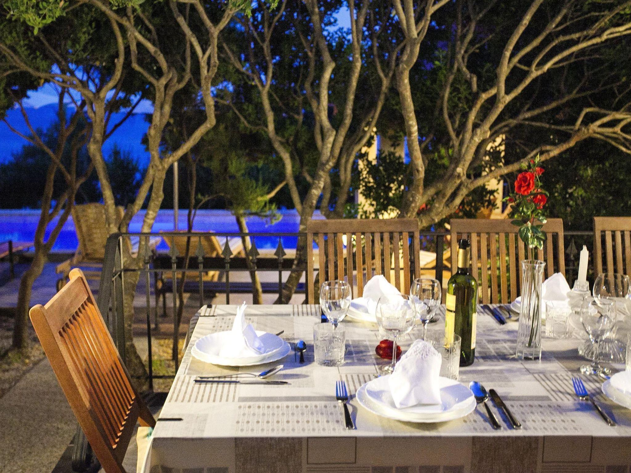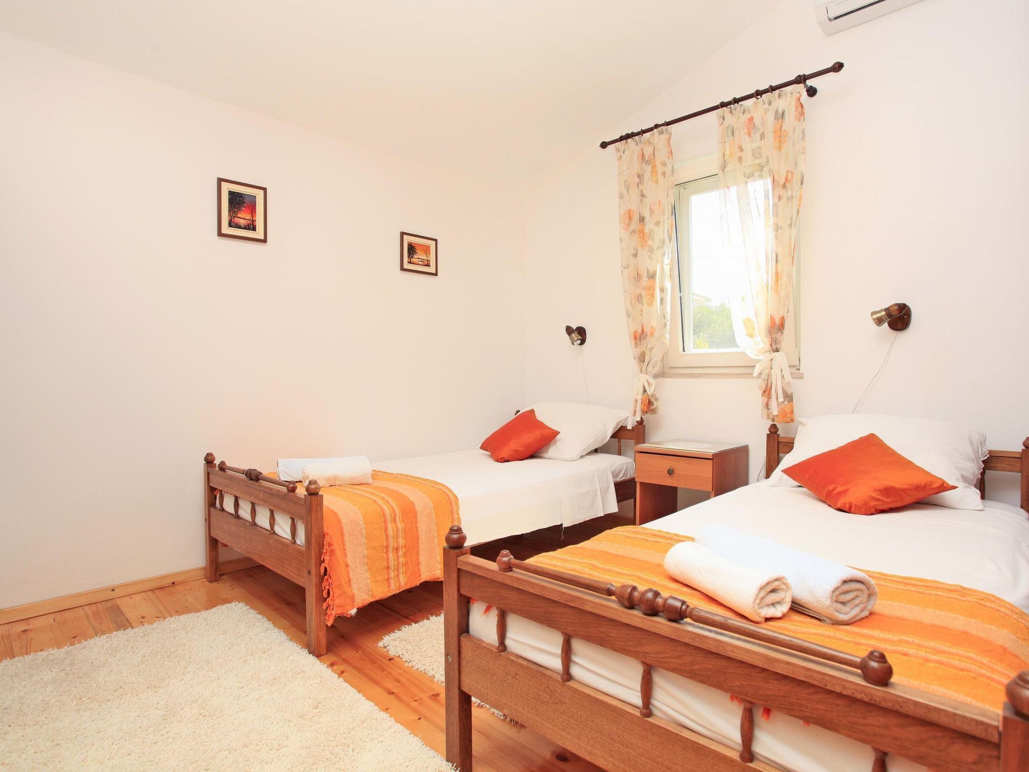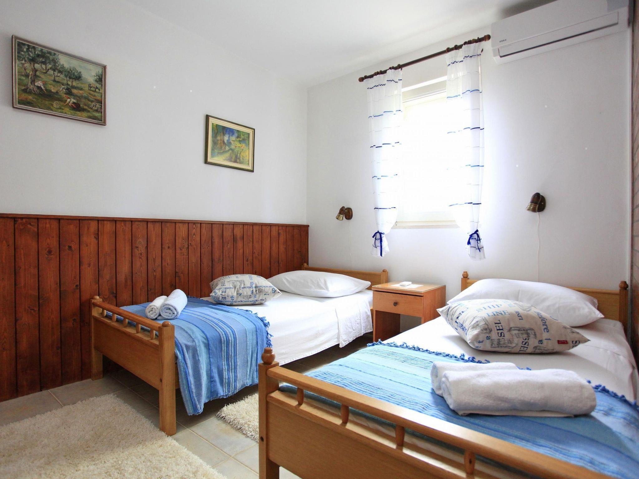 Bei diesem Haus handelt es sich um eine Steinvilla, gebaut im dalmatinischen Still, umgeben von einem Park mit typischen mediterranen Gewächsen, durch den ein Privatweg zum Strand führt. Die Villa besteht aus Erdgeschoss und erster Etage. Im Erdgeschoss sind Küche, Esszimmer mit Kamin, zwei Schlafzimmer und ein Badezimmer. Im ersten Stockwerk befinden sich die Aperitifbar mit Billardtisch, zwei Schlafzimmer mit Holzfußböden, ein Badezimmer und der Balkon. Die Etage wird über eine Außentreppe erreicht. Alle Zimmer verfügen über Klimaanlage. Zwei der vier Zimmer sind mit einem französischen Bett (150 x 195 cm) und die beiden anderen Zimmer mit je zwei Einzelbetten ( 90 x 195 cm) ausgestattet. Vom Haus gelangen Sie auf die große, teilweise überdachte Terrasse mit ihren gemütlichen Lounge Möbeln. Entspannen Sie am Pool und nutzen Sie zur Zubereitung der Mahlzeiten auch ruhig einmal den Außengrill. Es sind genügend Liegestühle vorhanden. Außerdem gibt es ein kleine Laube, die Schutz vor der Sonne spendet.