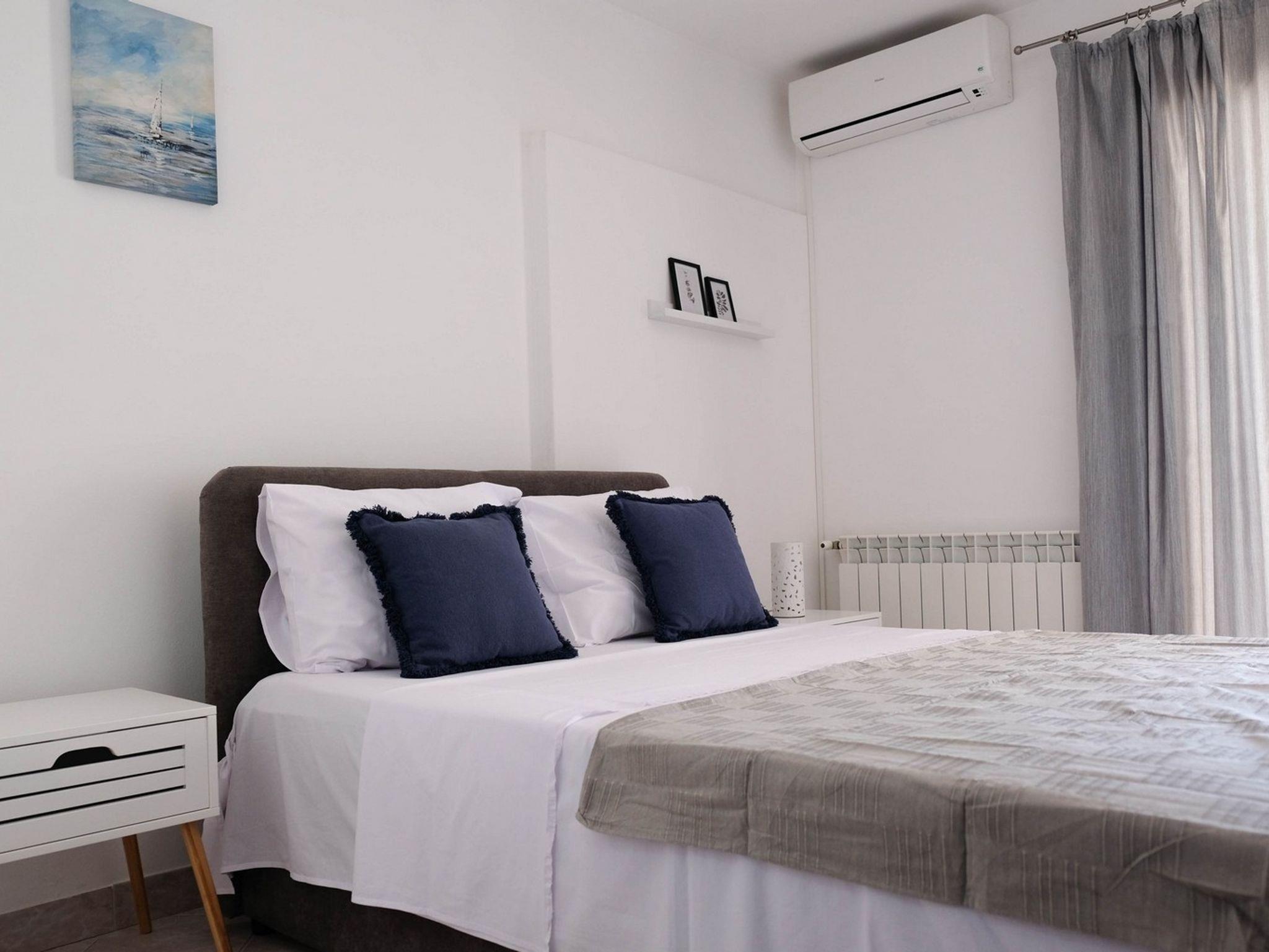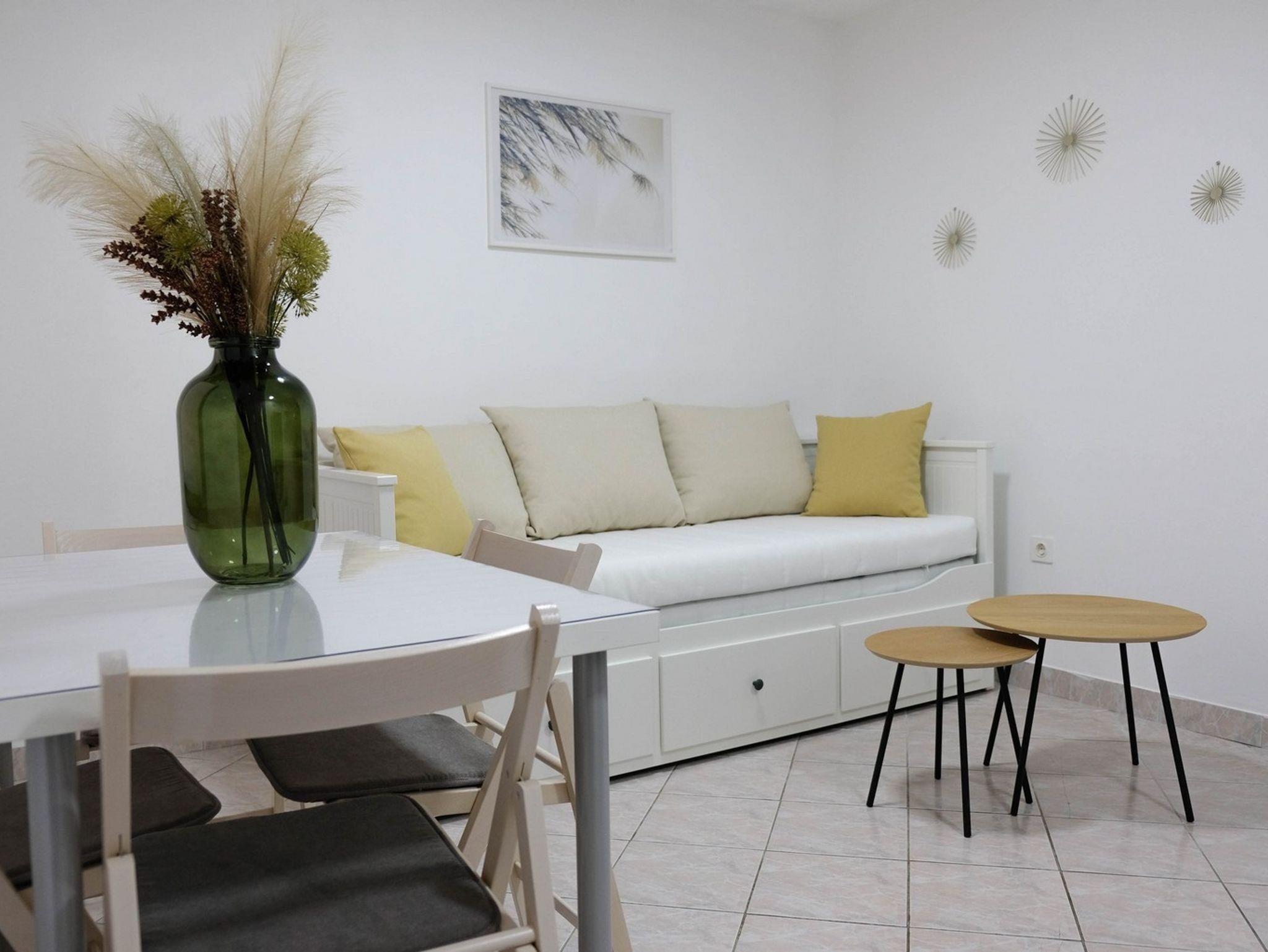 Ferienwohnung bietet Platz für 4 Gäste. Die Betten sind in Schlafzimmern, die es 1 gibt, und in Wohnzimmer, innerhalb einer Gesamtfläche von 28m2, angeordnet. Die Gäste haben eine eigene Terrasse zur Verfügung, auf der sie in warmen Sommernächten genießen können. Das Apartment bietet Meerblick. Es ist erlaubt, Speisen auf dem Gemeinschafts-Grill vorzubereiten. IM PREIS INBEGRIFFEN: Kurtaxe, Endreinigung, Klimatisierung, Zentralheizung, Parkplatz, Internet, Kinderbett, Föhn, Sonnenschirm, Liegestühle. Die Verfügbarkeit zusätzlicher Dienstleistungen in Ihrem reservierten Termin und die Preise derselben (falls nicht aufgeführt) müssen im Voraus überprüft werden. Zusätzliche Dienstleistungen die in der Zahlungsaufforderung nicht aufgeführt sind werden direkt beim Vermieter bezahlt, angenommen der Gast nutzt auch diese.