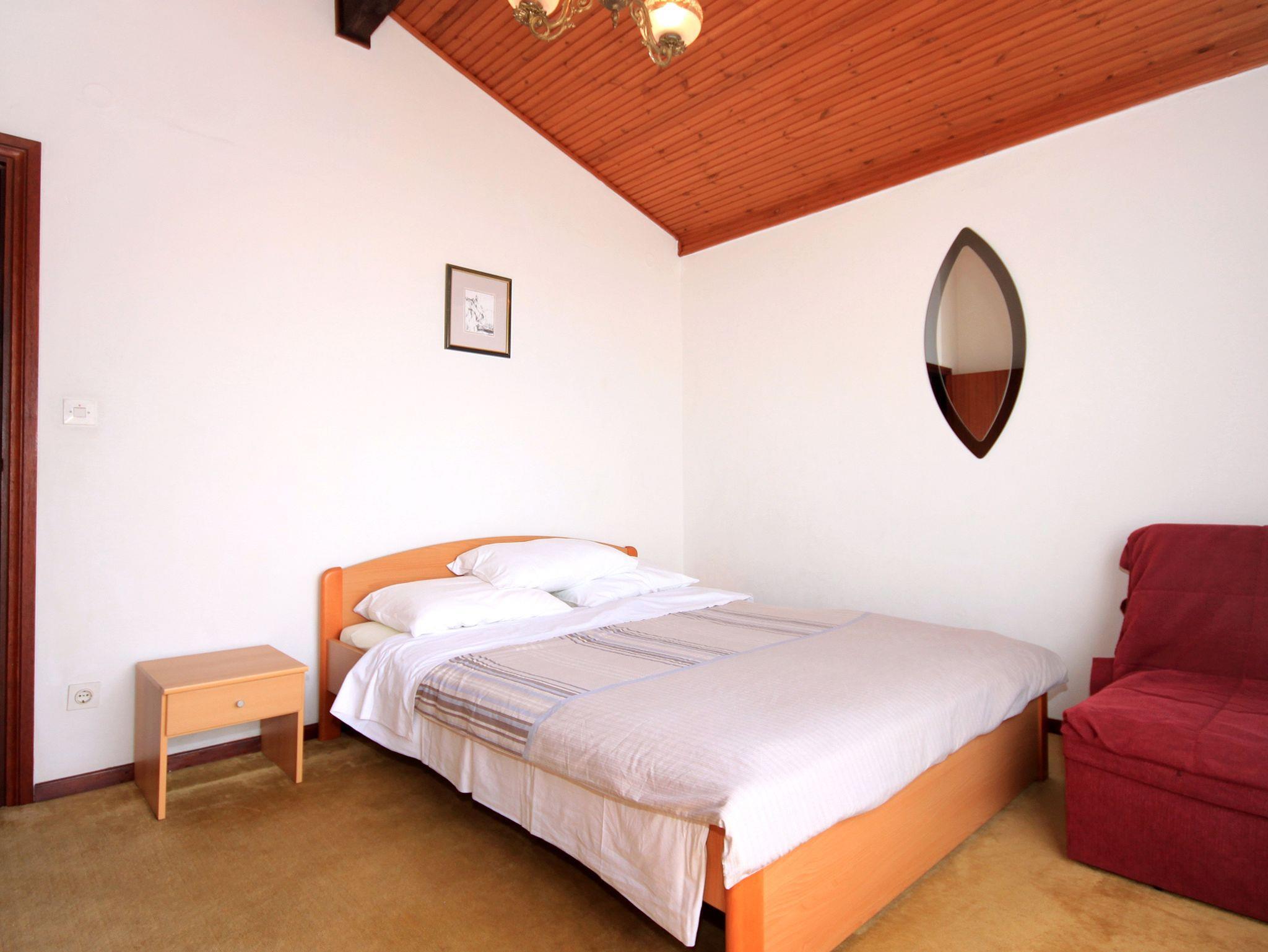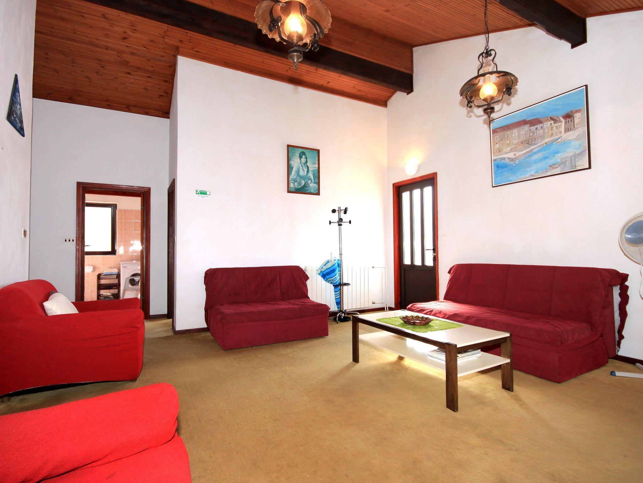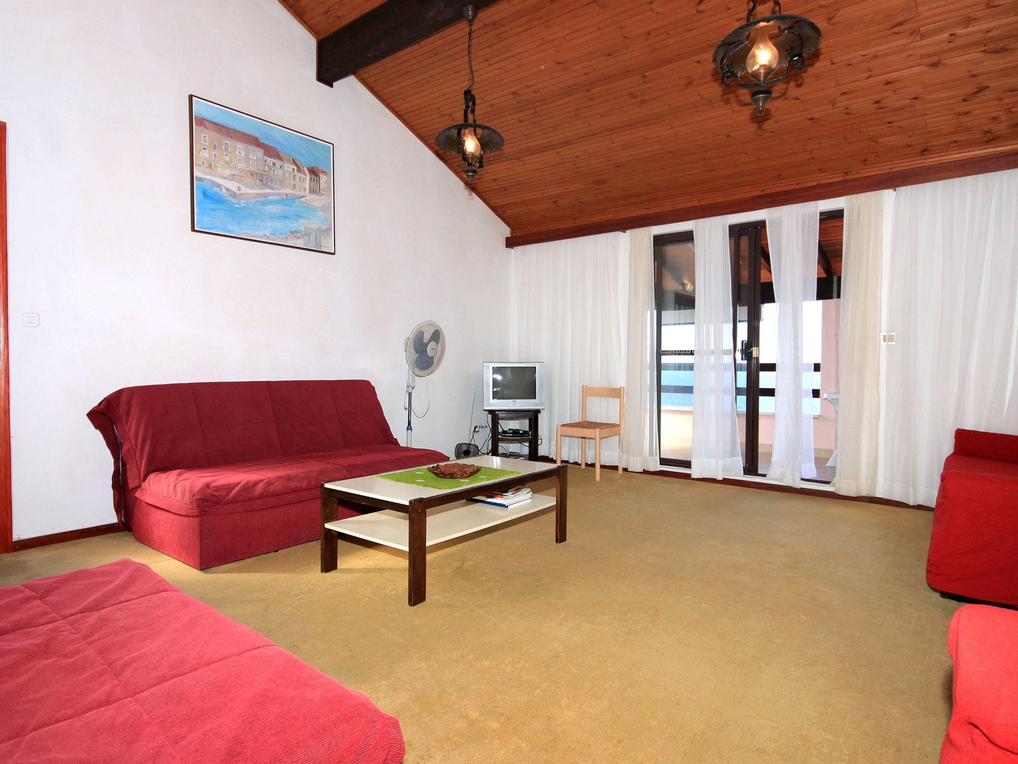 Ferienwohnung bietet Platz für 8 Gäste. Die Betten sind in Schlafzimmern, die es 3 gibt, und in Wohnzimmer, innerhalb einer Gesamtfläche von 96m2, angeordnet. Die Gäste haben eine eigene Terrasse zur Verfügung, auf der sie in warmen Sommernächten genießen können. Das Apartment bietet Meerblick. Für vollen Genuss und Entspannung gibt es einen privaten Grill für Gäste dieser Unterkunft. In der Unterkunftseinheit besteht die Möglichkeit des Mitbringens von Haustieren gegen Aufpreis. IM PREIS INBEGRIFFEN: Kurtaxe, Endreinigung, Klimatisierung, Parkplatz, Internet, Kinderbett, Bügeleisen, Bügelbrett, Föhn, Sonnenschirm. VERBINDLICHE ZUSÄTZLICHE KOSTEN: Aufzahlung für Kurzaufenthalte (prozentualer Zuschlag pro Nächtigungsanzahl: 30% - 1, 20% - 2, 10% - 3). UNVERBINDLICHE ZUSÄTZLICHE KOSTEN: Zentralheizung (10,00 € pro Nacht), Haustiere (8,00 € pro Nacht). Die Verfügbarkeit zusätzlicher Dienstleistungen in Ihrem reservierten Termin und die Preise derselben (falls nicht aufgeführt) müssen im Voraus überprüft werden. Zusätzliche Dienstleistungen die in der Zahlungsaufforderung nicht aufgeführt sind werden direkt beim Vermieter bezahlt, angenommen der Gast nutzt auch diese. Ermäßigung auf den Grundpreis: Gratistag 28=25 (bei einem Aufenthalt von 28 oder mehr Tagen erhalten Sie 3 kostenlose Tage für den Aufenthalt bis 31.12.26).