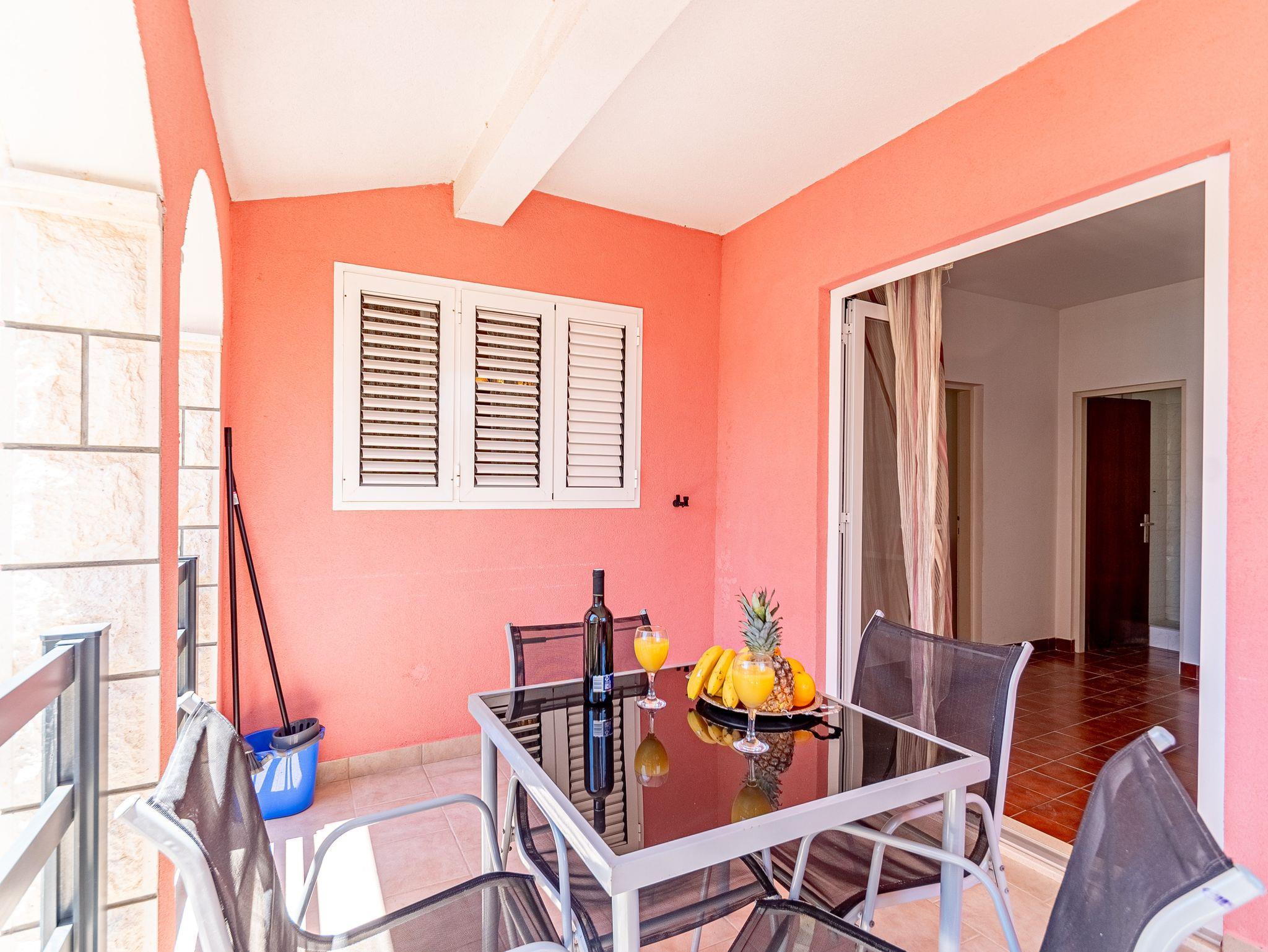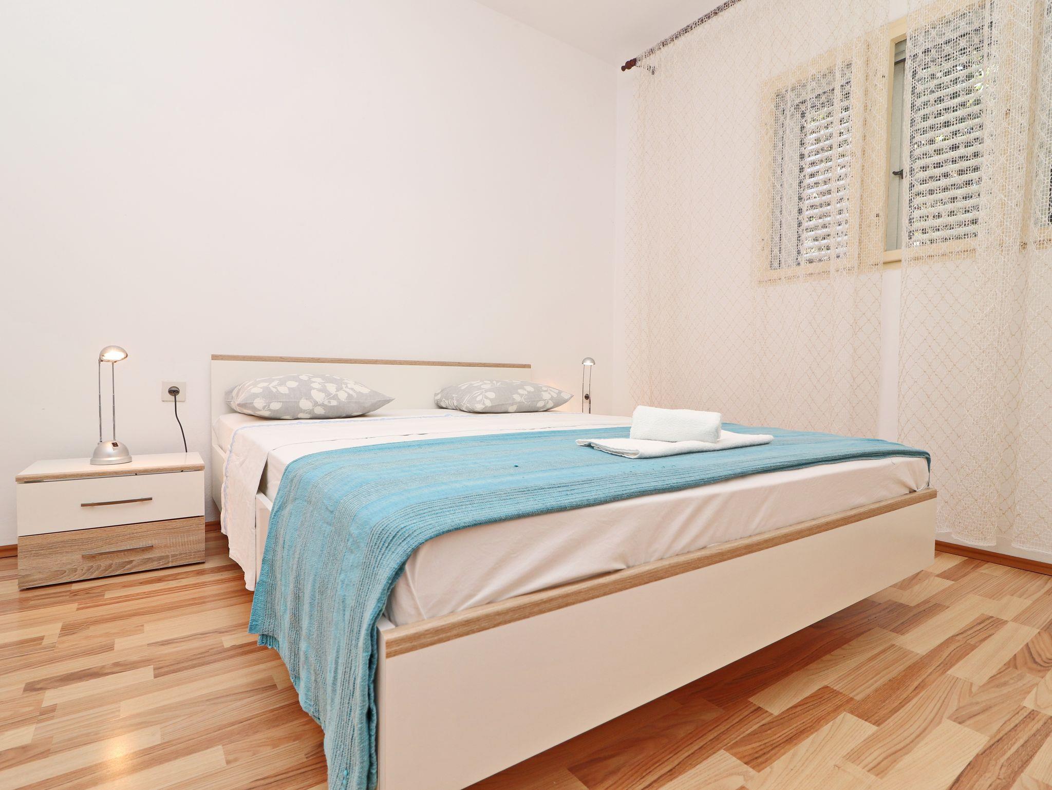 Ferienwohnung bietet Platz für 4 Gäste. Die Betten sind in Schlafzimmern, die es 2 gibt, innerhalb einer Gesamtfläche von 44m2, angeordnet. Die Gäste haben eine eigene Terrasse zur Verfügung, auf der sie in warmen Sommernächten genießen können. Das Apartment bietet Meerblick. Es ist erlaubt, Speisen auf dem Gemeinschafts-Grill vorzubereiten. IM PREIS INBEGRIFFEN: Kurtaxe, Endreinigung, Klimatisierung, Parkplatz, Internet, Kinderbett, Bügeleisen, Bügelbrett, Föhn, Sonnenschirm. VERBINDLICHE ZUSÄTZLICHE KOSTEN: Aufzahlung für Kurzaufenthalte (prozentualer Zuschlag pro Nächtigungsanzahl: 30% - 1, 20% - 2, 10% - 3). Die Verfügbarkeit zusätzlicher Dienstleistungen in Ihrem reservierten Termin und die Preise derselben (falls nicht aufgeführt) müssen im Voraus überprüft werden. Zusätzliche Dienstleistungen die in der Zahlungsaufforderung nicht aufgeführt sind werden direkt beim Vermieter bezahlt, angenommen der Gast nutzt auch diese. Ermäßigung auf den Grundpreis: Gratistag 21=19 (bei einem Aufenthalt von 21 Tagen oder mehr erhalten Sie 2 Gratistage für den Aufenthalt bis 31.12.26).