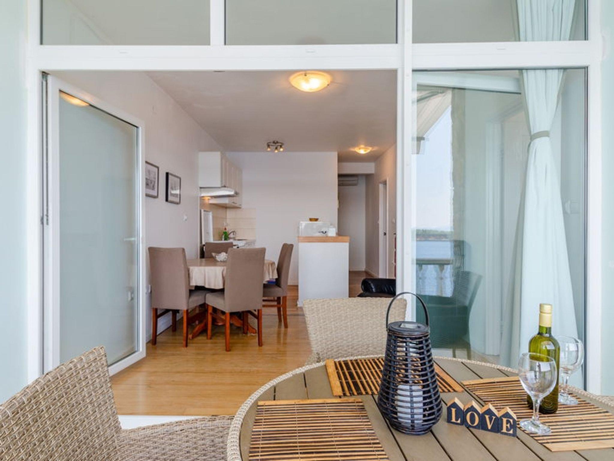 Ferienwohnung bietet Platz für 4 Gäste. Die Betten sind in Schlafzimmern, die es 2 gibt, innerhalb einer Gesamtfläche von 44m2, angeordnet. Die Gäste haben eine eigene Terrasse zur Verfügung, auf der sie in warmen Sommernächten genießen können. Das Apartment bietet Meerblick. In der Unterkunftseinheit besteht die Möglichkeit des Mitbringens von Haustieren gegen Aufpreis. IM PREIS INBEGRIFFEN: Kurtaxe, Endreinigung, Klimatisierung, Parkplatz, Internet, Bootsanlegeplatz, Kinderbett, Bügeleisen, Bügelbrett, Föhn, Liegestühle. VERBINDLICHE ZUSÄTZLICHE KOSTEN: Aufzahlung für Kurzaufenthalte (prozentualer Zuschlag pro Nächtigungsanzahl: 30% - 1, 20% - 2, 10% - 3). UNVERBINDLICHE ZUSÄTZLICHE KOSTEN: Haustiere (10,00 € pro Nacht), Zusatzbett (7,50 € pro Nacht). Die Verfügbarkeit zusätzlicher Dienstleistungen in Ihrem reservierten Termin und die Preise derselben (falls nicht aufgeführt) müssen im Voraus überprüft werden. Zusätzliche Dienstleistungen die in der Zahlungsaufforderung nicht aufgeführt sind werden direkt beim Vermieter bezahlt, angenommen der Gast nutzt auch diese. Ermäßigung auf den Grundpreis: Gratistag 28=25 (bei einem Aufenthalt von 28 oder mehr Tagen erhalten Sie 3 kostenlose Tage für den Aufenthalt bis 31.12.26).