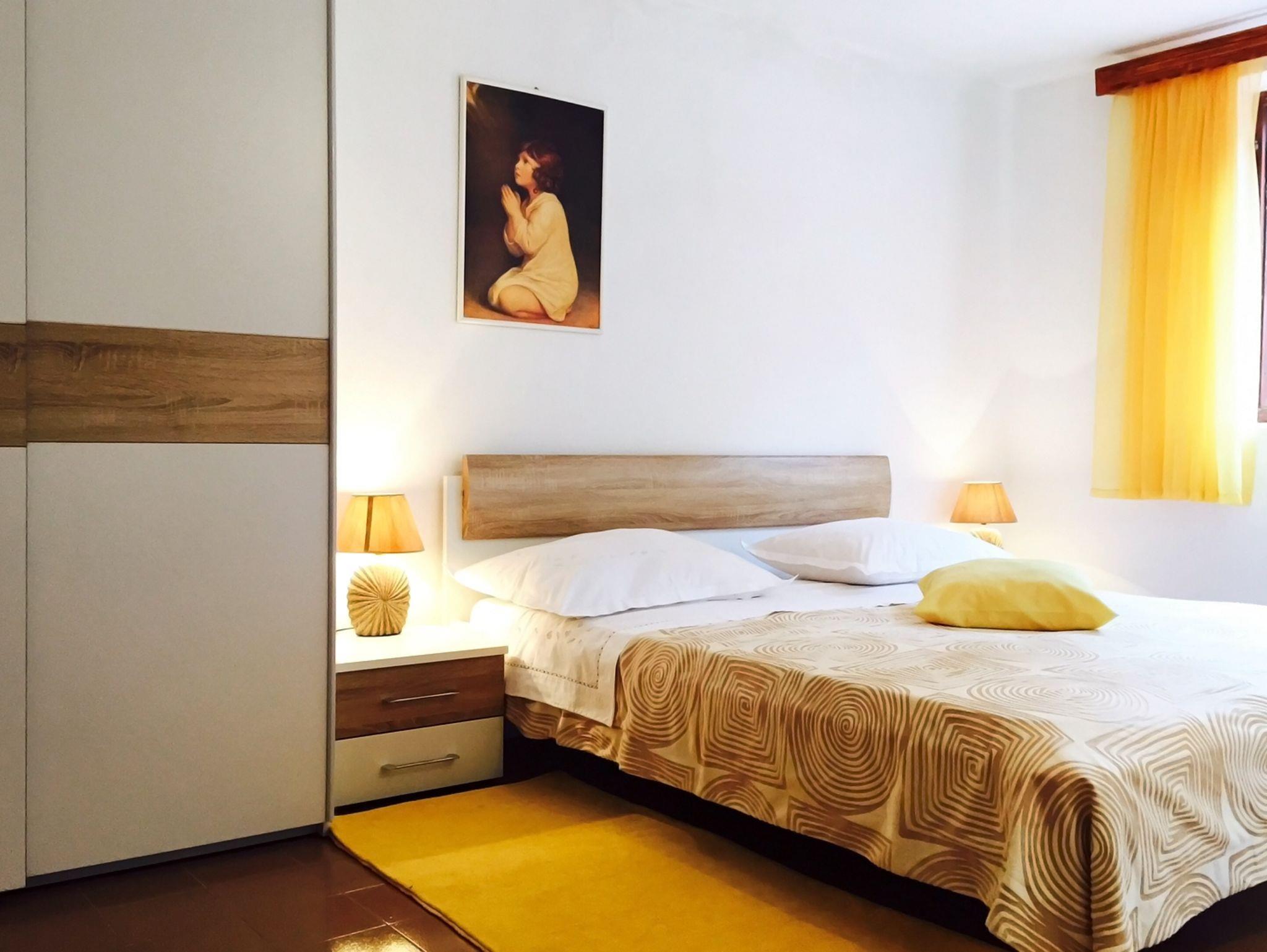 Ferienwohnung bietet Platz für 4 Gäste. Die Betten sind in Schlafzimmern, die es 2 gibt, innerhalb einer Gesamtfläche von 45m2, angeordnet. Die Gäste haben eine eigene Terrasse zur Verfügung, auf der sie in warmen Sommernächten genießen können. Das Apartment bietet Meerblick. Es ist erlaubt, Speisen auf dem Gemeinschafts-Grill vorzubereiten. In der Unterkunftseinheit besteht die Möglichkeit des Mitbringens von Haustieren gegen Aufpreis. Unterkunftseinheit hat Räume, die von dem Rest der Einheit abgetrennt werden. IM PREIS INBEGRIFFEN: Kurtaxe, Endreinigung, Klimatisierung, Parkplatz, Internet, Bootsanlegeplatz, 1 Bett für Kinder (im Preis enthalten). UNVERBINDLICHE ZUSÄTZLICHE KOSTEN: Haustiere (5,00 € pro Nacht). Die Verfügbarkeit zusätzlicher Dienstleistungen in Ihrem reservierten Termin und die Preise derselben (falls nicht aufgeführt) müssen im Voraus überprüft werden. Zusätzliche Dienstleistungen die in der Zahlungsaufforderung nicht aufgeführt sind werden direkt beim Vermieter bezahlt, angenommen der Gast nutzt auch diese.