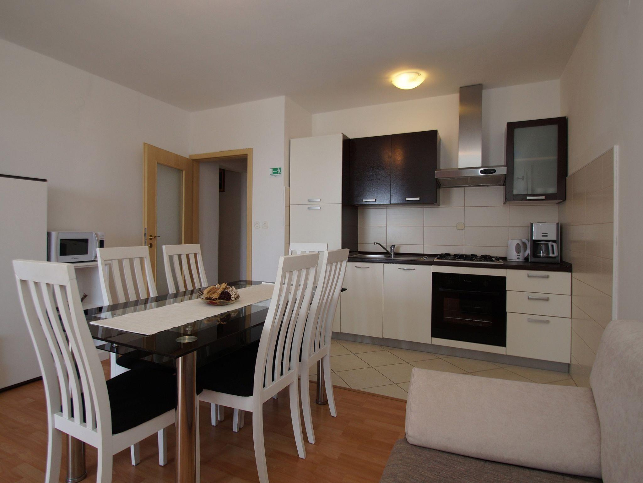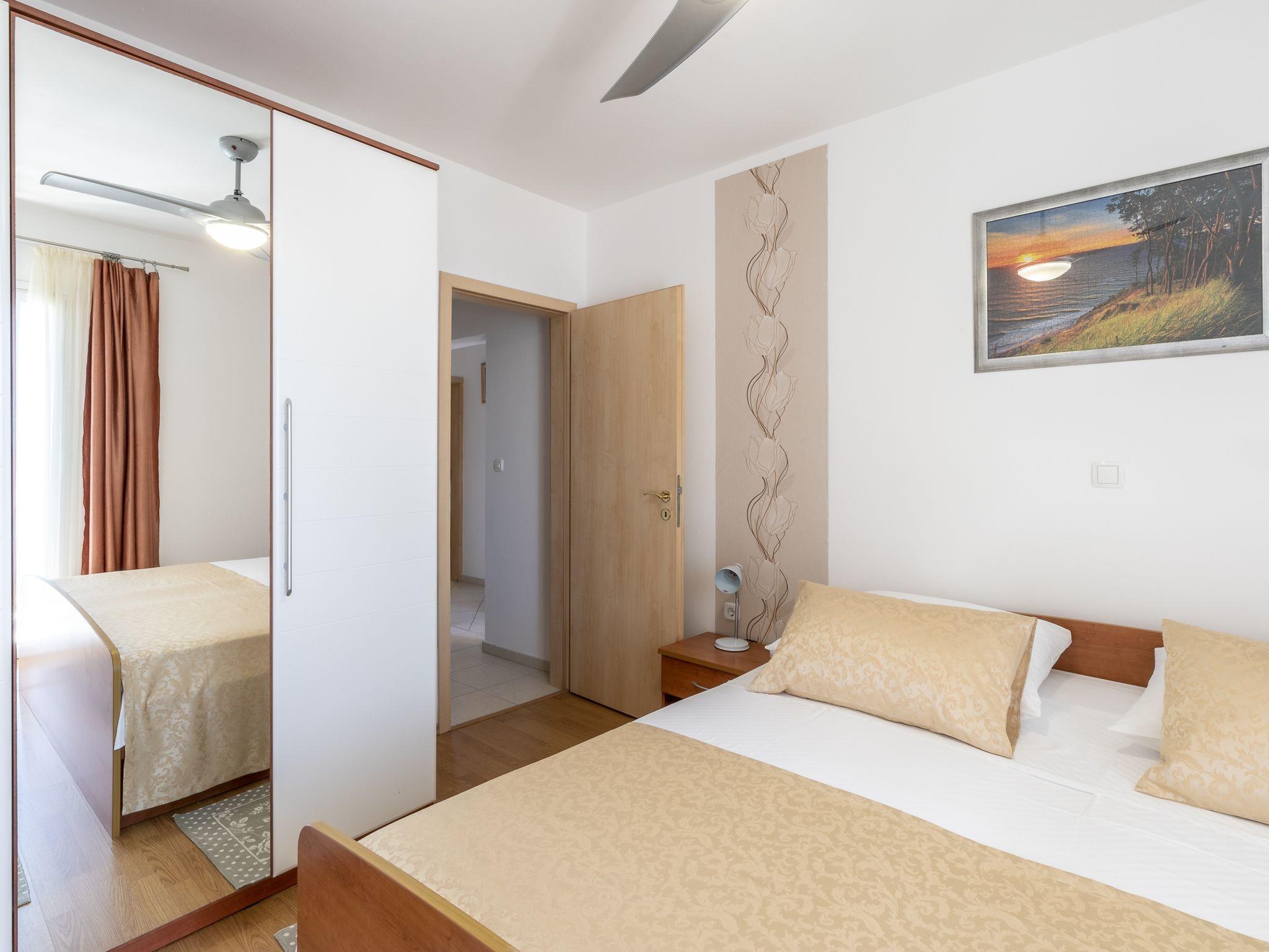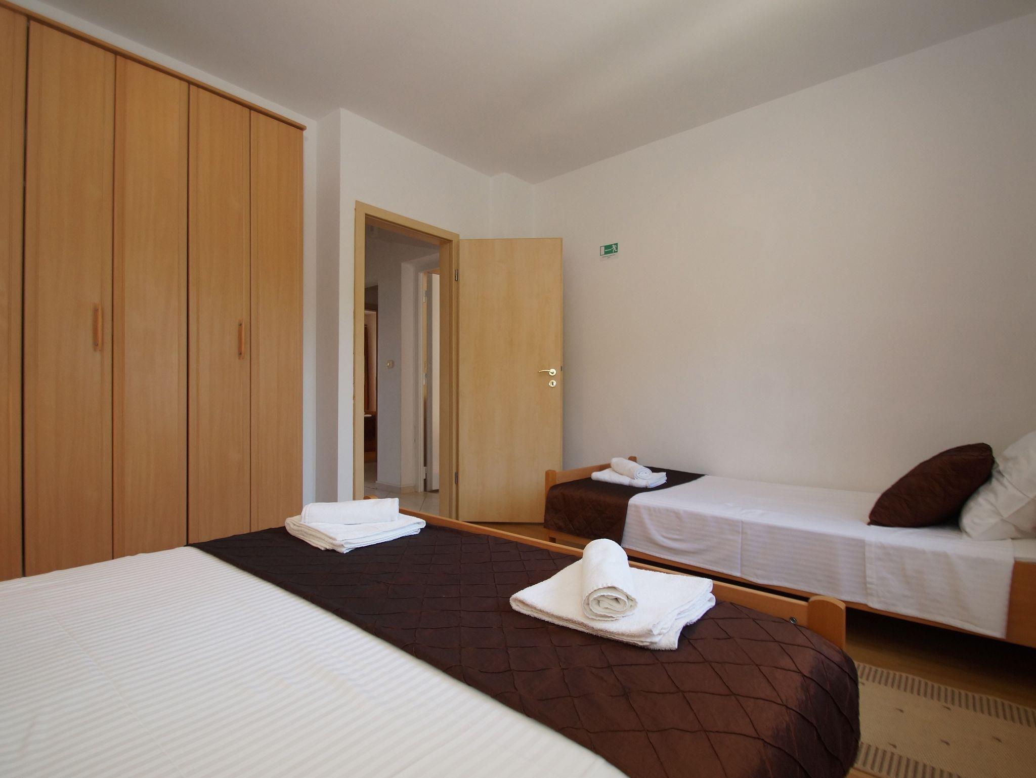Ferienwohnung bietet Platz für 6 Gäste. Die Betten sind in Schlafzimmern, die es 2 gibt, und in Wohnzimmer, innerhalb einer Gesamtfläche von 56m2, angeordnet. Die Gäste haben eine eigene Terrasse zur Verfügung, auf der sie in warmen Sommernächten genießen können. Das Apartment bietet Meerblick. Es ist erlaubt, Speisen auf dem Gemeinschafts-Grill vorzubereiten. Während ihres Aufenthalts können Gäste das gemeinsam zur Nutzung stehende Schwimmbad benutzen. In der gebuchten Unterkunftseinheit zahlt man am Ort ein Depositum ( der Preis ist an der Internetseite angeführt ). IM PREIS INBEGRIFFEN: Kurtaxe, Endreinigung, Klimatisierung, Pool, Parkplatz, Internet, Kinderbett, Bügeleisen, Bügelbrett, Föhn. VERBINDLICHE ZUSÄTZLICHE KOSTEN: Kaution (50,00 € Einmalzahlung). Die Verfügbarkeit zusätzlicher Dienstleistungen in Ihrem reservierten Termin und die Preise derselben (falls nicht aufgeführt) müssen im Voraus überprüft werden. Zusätzliche Dienstleistungen die in der Zahlungsaufforderung nicht aufgeführt sind werden direkt beim Vermieter bezahlt, angenommen der Gast nutzt auch diese. Ermäßigung auf den Grundpreis: Gratistag 14=13 (bei einem Aufenthalt von 14 Tagen oder mehr erhalten Sie einen Gratistag für den Aufenthalt bis 31.12.26).