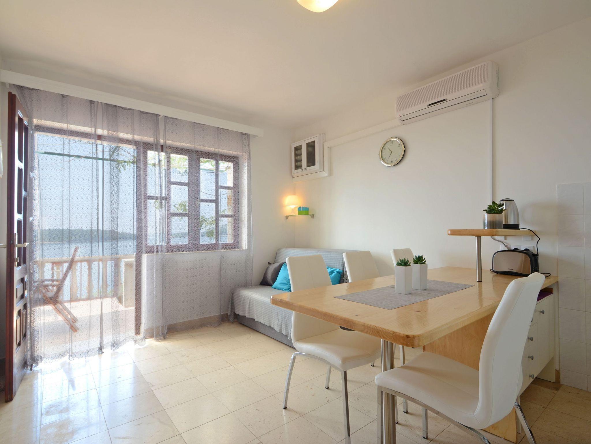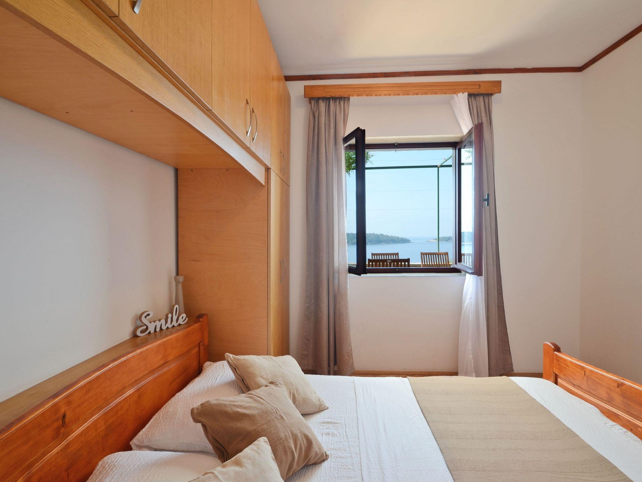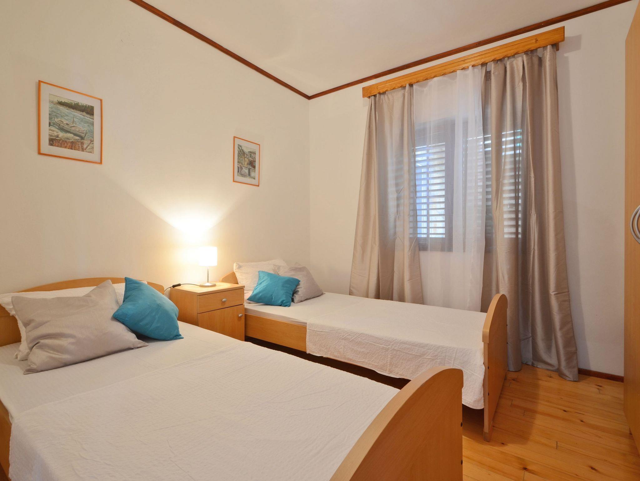 Ferienwohnung bietet Platz für 5 Gäste. Die Betten sind in Schlafzimmern, die es 2 gibt, und in Wohnzimmer, innerhalb einer Gesamtfläche von 43m2, angeordnet. Die Gäste haben eine eigene Terrasse zur Verfügung, auf der sie in warmen Sommernächten genießen können. Das Apartment bietet Meerblick. Für vollen Genuss und Entspannung gibt es einen privaten Grill für Gäste dieser Unterkunft. In der Unterkunftseinheit besteht die Möglichkeit des Mitbringens von Haustieren gegen Aufpreis. IM PREIS INBEGRIFFEN: Kurtaxe, Endreinigung, Klimatisierung, Parkplatz, Internet, Bootsanlegeplatz, Kinderbett, Bügeleisen, Bügelbrett, Föhn, Liegestühle. VERBINDLICHE ZUSÄTZLICHE KOSTEN: Aufzahlung für Kurzaufenthalte (prozentualer Zuschlag pro Nächtigungsanzahl: 30% - 1, 20% - 2, 10% - 3). UNVERBINDLICHE ZUSÄTZLICHE KOSTEN: Haustiere (10,00 € pro Nacht). Die Verfügbarkeit zusätzlicher Dienstleistungen in Ihrem reservierten Termin und die Preise derselben (falls nicht aufgeführt) müssen im Voraus überprüft werden. Zusätzliche Dienstleistungen die in der Zahlungsaufforderung nicht aufgeführt sind werden direkt beim Vermieter bezahlt, angenommen der Gast nutzt auch diese. Ermäßigung auf den Grundpreis: Gratistag 28=25 (bei einem Aufenthalt von 28 oder mehr Tagen erhalten Sie 3 kostenlose Tage für den Aufenthalt bis 31.12.26).