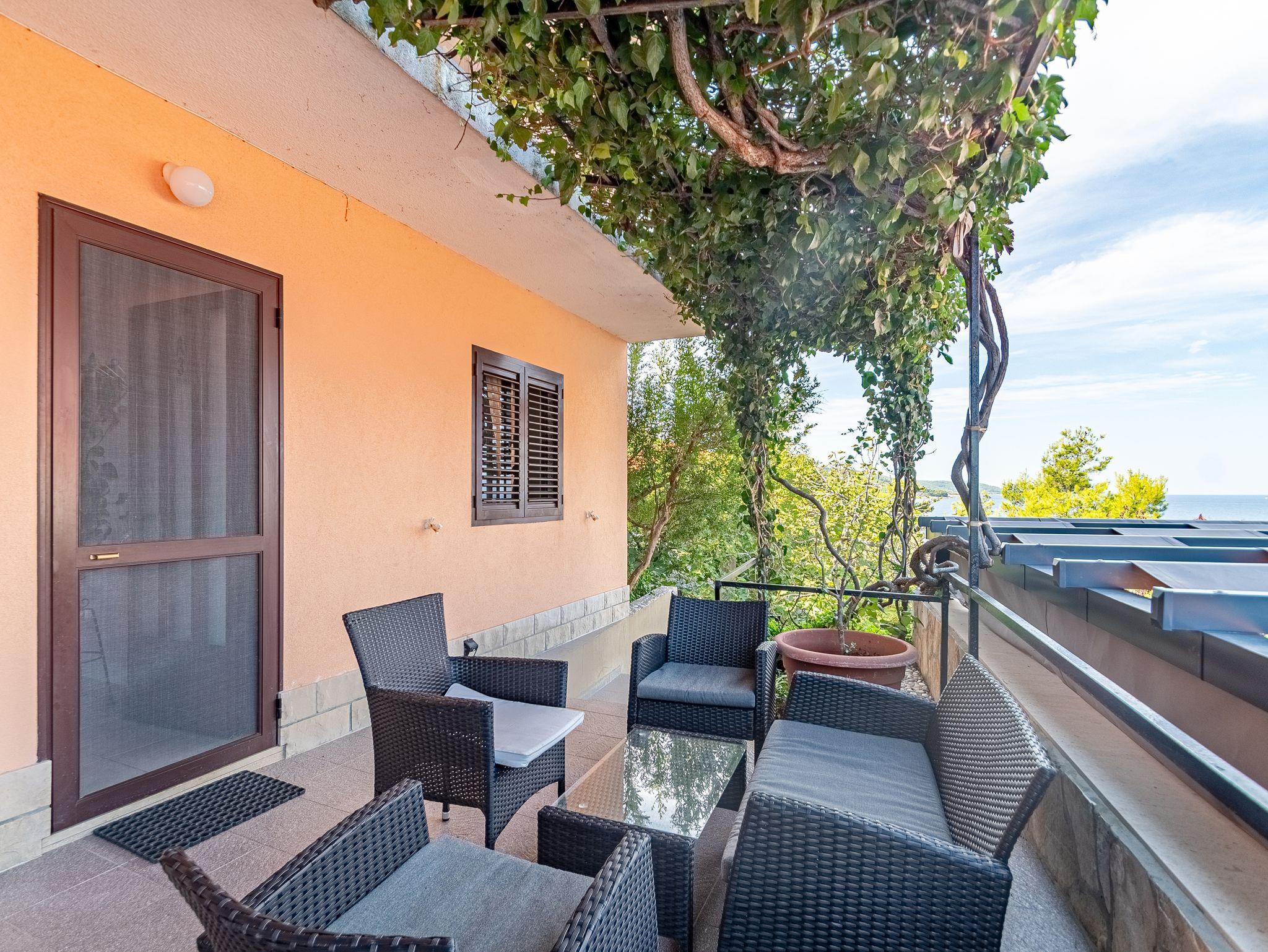 Ferienwohnung bietet Platz für 4 Gäste. Die Betten sind in Schlafzimmern, die es 1 gibt, und in Esszimmer, innerhalb einer Gesamtfläche von 38m2, angeordnet. Die Gäste haben eine eigene Terrasse zur Verfügung, auf der sie in warmen Sommernächten genießen können. Das Apartment bietet Meerblick. In der Unterkunftseinheit besteht die Möglichkeit des Mitbringens von Haustieren gegen Aufpreis. IM PREIS INBEGRIFFEN: Kurtaxe, Endreinigung, Klimatisierung, Parkplatz, Internet, Kinderbett, Bügeleisen, Bügelbrett, Föhn, Sonnenschirm. VERBINDLICHE ZUSÄTZLICHE KOSTEN: Aufzahlung für Kurzaufenthalte (prozentualer Zuschlag pro Nächtigungsanzahl: 30% - 1, 20% - 2, 10% - 3). UNVERBINDLICHE ZUSÄTZLICHE KOSTEN: Zentralheizung (10,00 € pro Nacht), Haustiere (8,00 € pro Nacht). Die Verfügbarkeit zusätzlicher Dienstleistungen in Ihrem reservierten Termin und die Preise derselben (falls nicht aufgeführt) müssen im Voraus überprüft werden. Zusätzliche Dienstleistungen die in der Zahlungsaufforderung nicht aufgeführt sind werden direkt beim Vermieter bezahlt, angenommen der Gast nutzt auch diese. Ermäßigung auf den Grundpreis: Gratistag 28=25 (bei einem Aufenthalt von 28 oder mehr Tagen erhalten Sie 3 kostenlose Tage für den Aufenthalt bis 31.12.26).