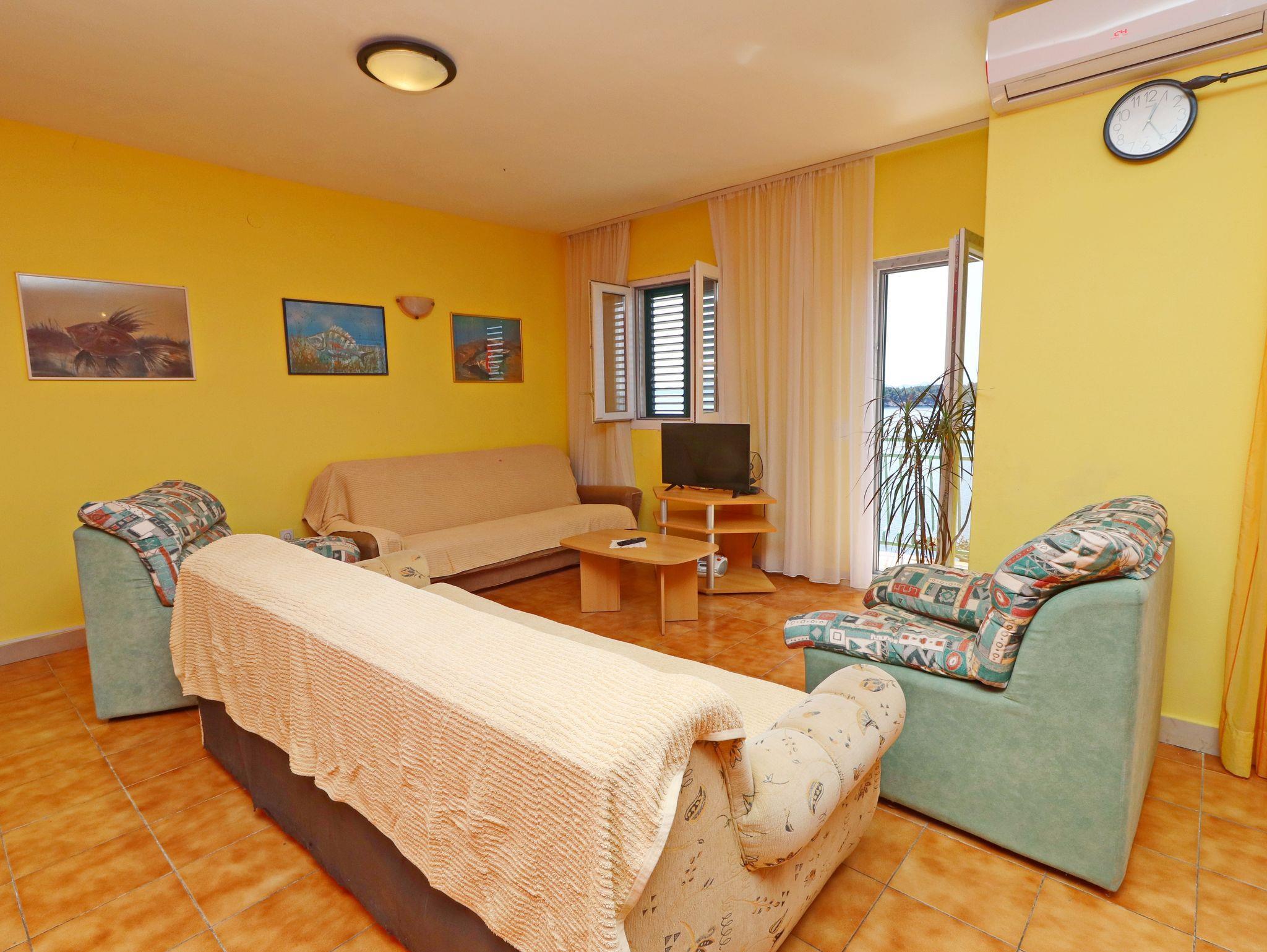 Ferienwohnung bietet Platz für 6 Gäste. Die Betten sind in Schlafzimmern, die es 3 gibt, innerhalb einer Gesamtfläche von 72m2, angeordnet. Die Gäste haben eine eigene Terrasse zur Verfügung, auf der sie in warmen Sommernächten genießen können. Das Apartment bietet Meerblick. Es ist erlaubt, Speisen auf dem Gemeinschafts-Grill vorzubereiten. In der Unterkunftseinheit besteht die Möglichkeit des Mitbringens von Haustieren gegen Aufpreis. IM PREIS INBEGRIFFEN: Kurtaxe, Endreinigung, Klimatisierung, Parkplatz, Internet, Kinderbett, Bügeleisen, Bügelbrett, Föhn, Sonnenschirm, Liegestühle. VERBINDLICHE ZUSÄTZLICHE KOSTEN: Aufzahlung für Kurzaufenthalte (prozentualer Zuschlag pro Nächtigungsanzahl: 30% - 1, 20% - 2, 10% - 3). UNVERBINDLICHE ZUSÄTZLICHE KOSTEN: Haustiere (5,00 € pro Nacht). Die Verfügbarkeit zusätzlicher Dienstleistungen in Ihrem reservierten Termin und die Preise derselben (falls nicht aufgeführt) müssen im Voraus überprüft werden. Zusätzliche Dienstleistungen die in der Zahlungsaufforderung nicht aufgeführt sind werden direkt beim Vermieter bezahlt, angenommen der Gast nutzt auch diese.