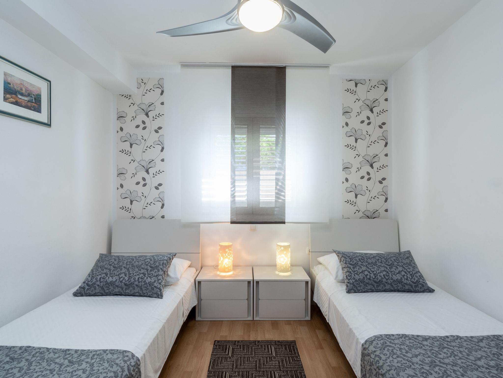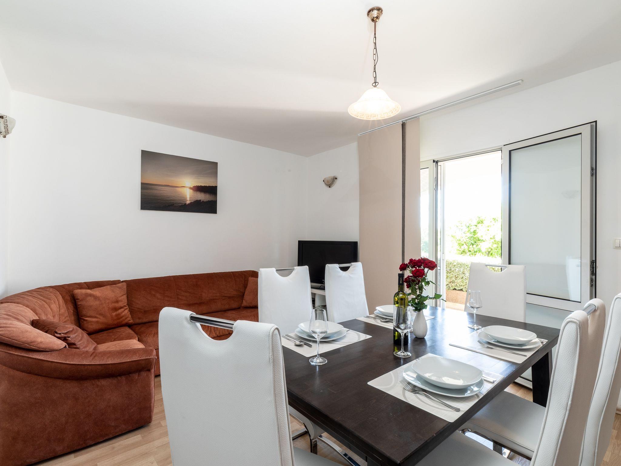 Ferienwohnung bietet Platz für 5 Gäste. Die Betten sind in Schlafzimmern, die es 2 gibt, und in Wohnzimmer, innerhalb einer Gesamtfläche von 65m2, angeordnet. Die Gäste haben eine eigene Terrasse zur Verfügung, auf der sie in warmen Sommernächten genießen können. Das Apartment bietet Meerblick. Es ist erlaubt, Speisen auf dem Gemeinschafts-Grill vorzubereiten. Während ihres Aufenthalts können Gäste das gemeinsam zur Nutzung stehende Schwimmbad benutzen. In der gebuchten Unterkunftseinheit zahlt man am Ort ein Depositum ( der Preis ist an der Internetseite angeführt ). IM PREIS INBEGRIFFEN: Kurtaxe, Endreinigung, Klimatisierung, Pool, Parkplatz, Internet, Kinderbett, Bügeleisen, Bügelbrett, Föhn. VERBINDLICHE ZUSÄTZLICHE KOSTEN: Kaution (50,00 € Einmalzahlung). Die Verfügbarkeit zusätzlicher Dienstleistungen in Ihrem reservierten Termin und die Preise derselben (falls nicht aufgeführt) müssen im Voraus überprüft werden. Zusätzliche Dienstleistungen die in der Zahlungsaufforderung nicht aufgeführt sind werden direkt beim Vermieter bezahlt, angenommen der Gast nutzt auch diese. Ermäßigung auf den Grundpreis: Gratistag 14=13 (bei einem Aufenthalt von 14 Tagen oder mehr erhalten Sie einen Gratistag für den Aufenthalt bis 31.12.26).