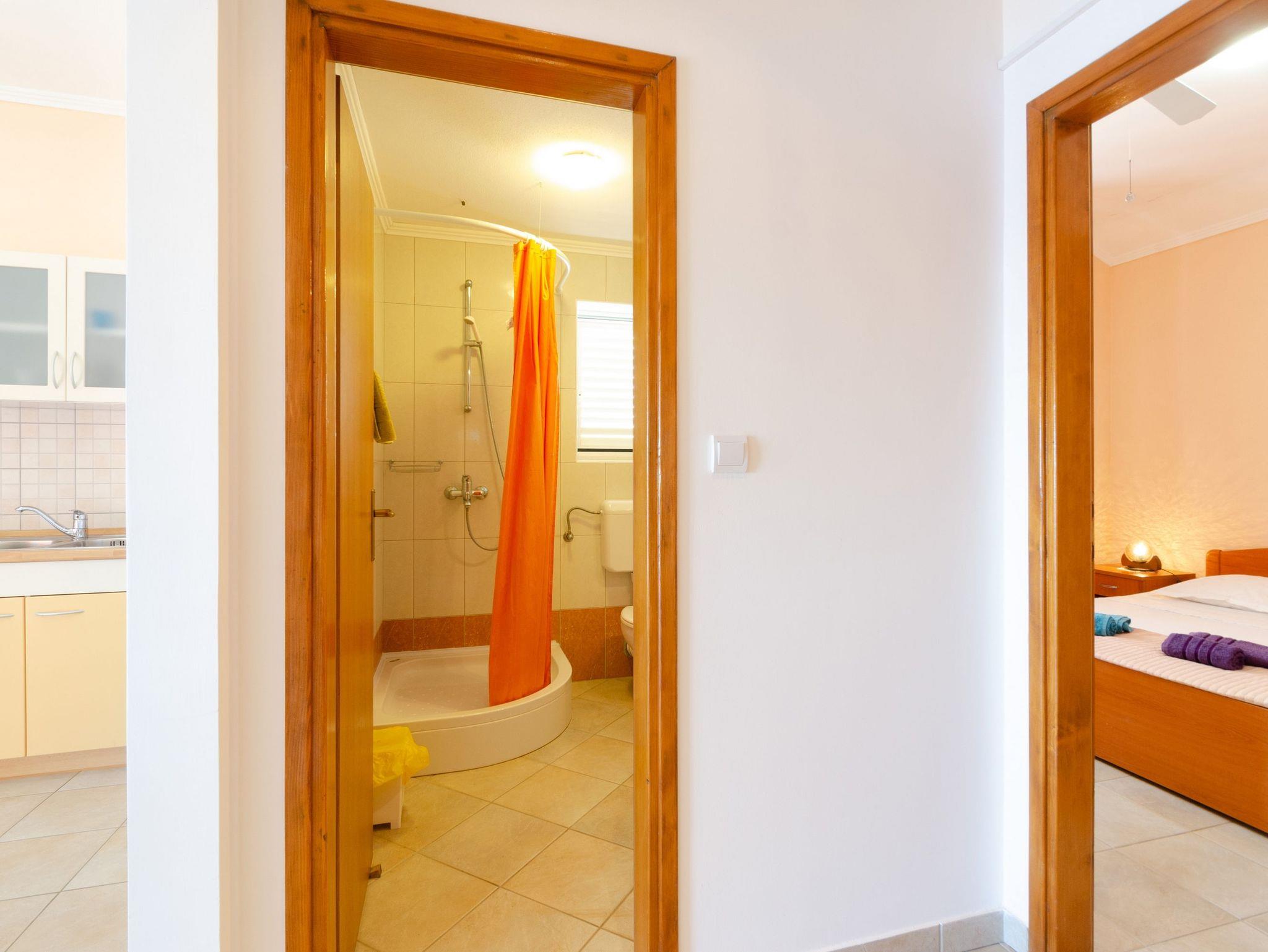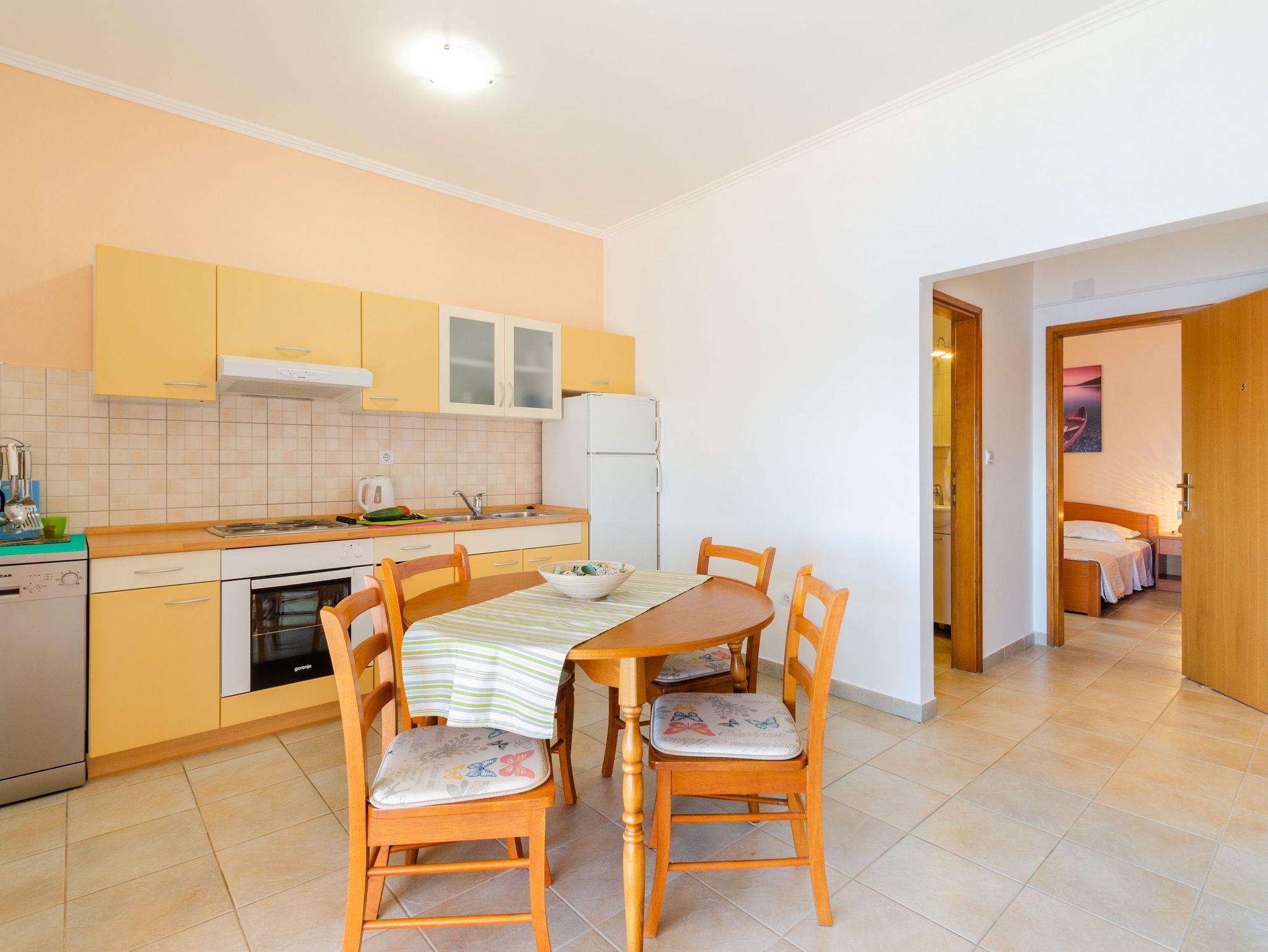 Ferienwohnung bietet Platz für 4 Gäste. Die Betten sind in Schlafzimmern, die es 1 gibt, und in Wohnzimmer, innerhalb einer Gesamtfläche von 38m2, angeordnet. Die Gäste haben eine eigene Terrasse zur Verfügung, auf der sie in warmen Sommernächten genießen können. Das Apartment bietet Meerblick. Es ist erlaubt, Speisen auf dem Gemeinschafts-Grill vorzubereiten. In der Unterkunftseinheit besteht die Möglichkeit des Mitbringens von Haustieren, und die Dienstleistung ist im Preis der Unterkunft enthalten. IM PREIS INBEGRIFFEN: Kurtaxe, Endreinigung, Klimatisierung, Parkplatz, Internet, Haustiere, Kinderbett, Föhn, Liegestühle. VERBINDLICHE ZUSÄTZLICHE KOSTEN: Aufzahlung für Kurzaufenthalte (prozentualer Zuschlag pro Nächtigungsanzahl: 30% - 1, 20% - 2, 10% - 3). UNVERBINDLICHE ZUSÄTZLICHE KOSTEN: Wäschewaschen (2,00 € Waschen). Die Verfügbarkeit zusätzlicher Dienstleistungen in Ihrem reservierten Termin und die Preise derselben (falls nicht aufgeführt) müssen im Voraus überprüft werden. Zusätzliche Dienstleistungen die in der Zahlungsaufforderung nicht aufgeführt sind werden direkt beim Vermieter bezahlt, angenommen der Gast nutzt auch diese.