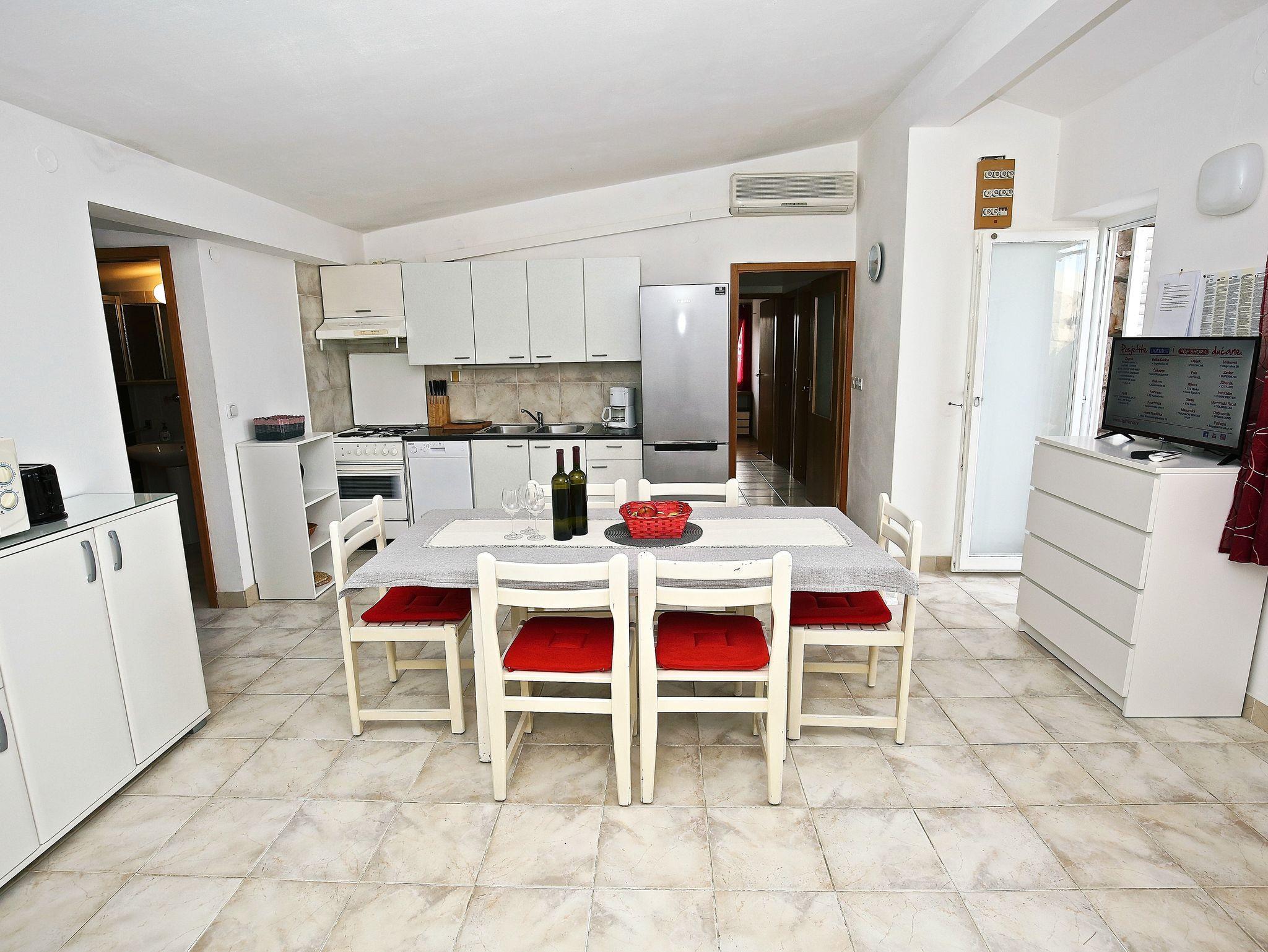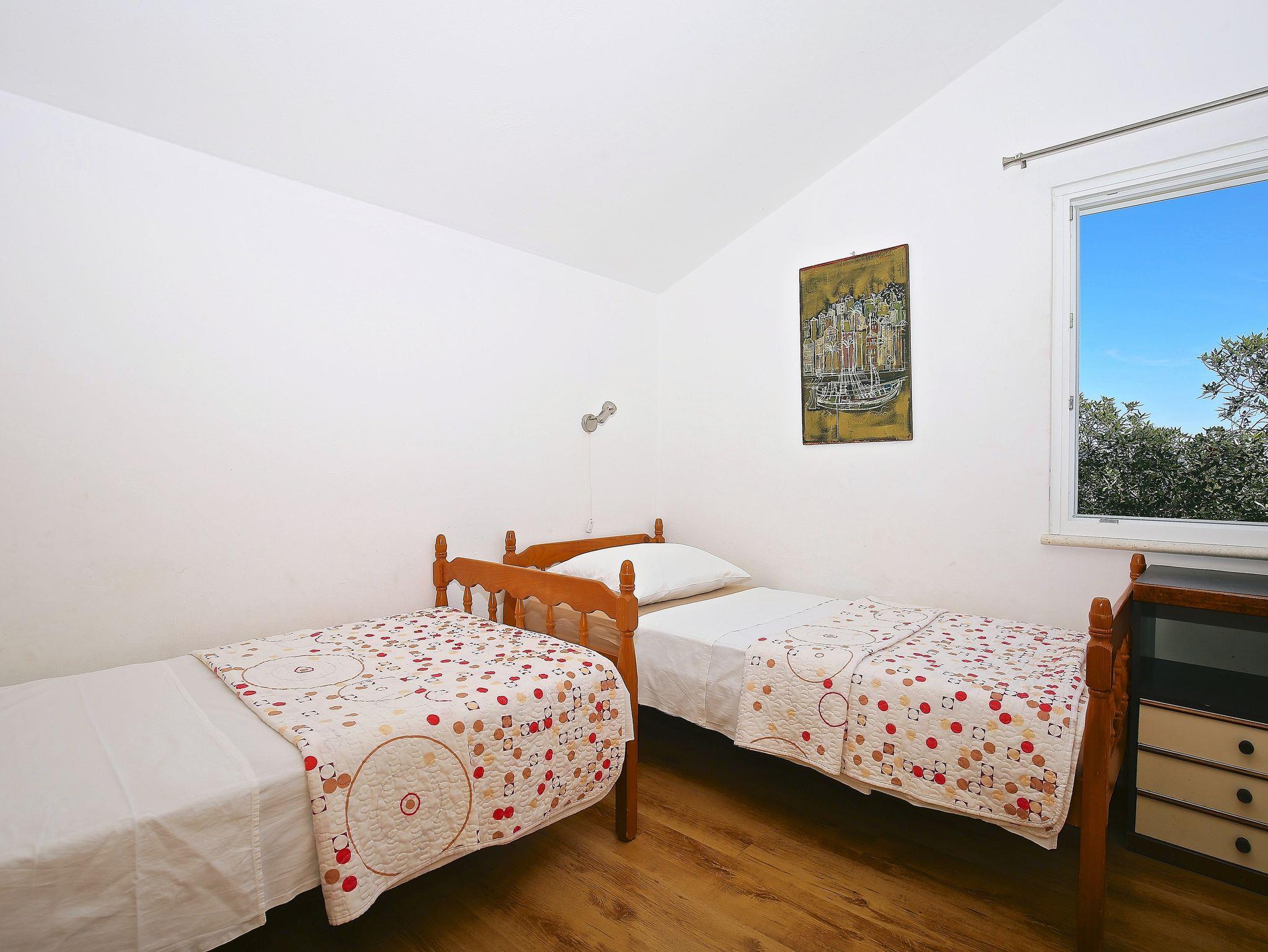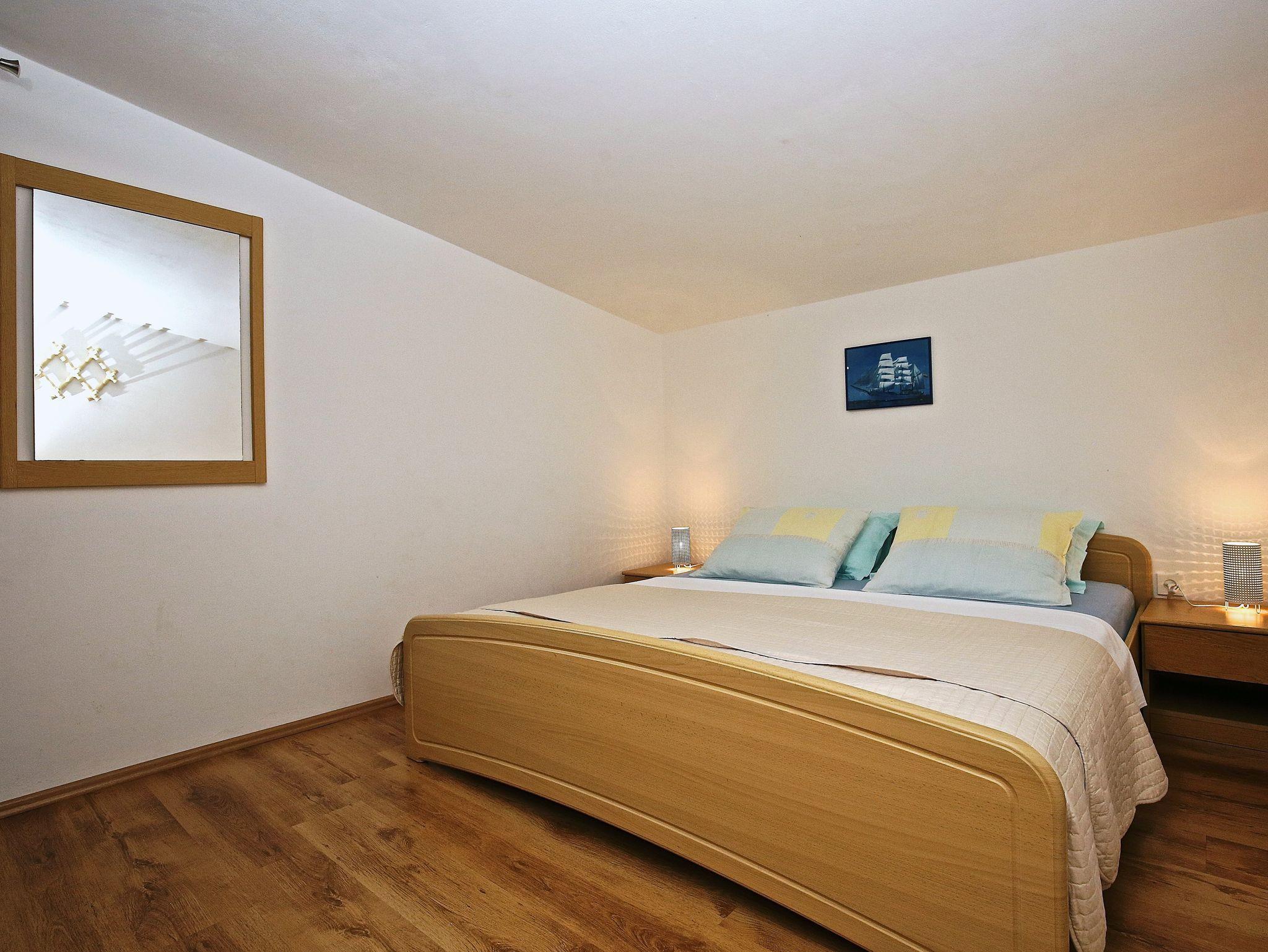 Ferienwohnung bietet Platz für 8 Gäste. Die Betten sind in Schlafzimmern, die es 4 gibt, innerhalb einer Gesamtfläche von 74m2, angeordnet. Die Gäste haben eine eigene Terrasse zur Verfügung, auf der sie in warmen Sommernächten genießen können. Das Apartment bietet Meerblick. Es ist erlaubt, Speisen auf dem Gemeinschafts-Grill vorzubereiten. In der Unterkunftseinheit besteht die Möglichkeit des Mitbringens von Haustieren gegen Aufpreis. In der gebuchten Unterkunftseinheit zahlt man am Ort ein Depositum ( der Preis ist an der Internetseite angeführt ). IM PREIS INBEGRIFFEN: Kurtaxe, Endreinigung, Klimatisierung, Parkplatz, Internet, Wäschewaschen, Bootsanlegeplatz, Kinderbett, Bügeleisen, Bügelbrett. VERBINDLICHE ZUSÄTZLICHE KOSTEN: Kaution (100,00 € Einmalzahlung), Aufzahlung für Kurzaufenthalte (prozentualer Zuschlag pro Nächtigungsanzahl: 30% - 1, 20% - 2, 10% - 3). UNVERBINDLICHE ZUSÄTZLICHE KOSTEN: Haustiere (7,00 € pro Nacht). Die Verfügbarkeit zusätzlicher Dienstleistungen in Ihrem reservierten Termin und die Preise derselben (falls nicht aufgeführt) müssen im Voraus überprüft werden. Zusätzliche Dienstleistungen die in der Zahlungsaufforderung nicht aufgeführt sind werden direkt beim Vermieter bezahlt, angenommen der Gast nutzt auch diese. Ermäßigung auf den Grundpreis: Gratistag 14=13 (bei einem Aufenthalt von 14 Tagen oder mehr erhalten Sie einen Gratistag für den Aufenthalt bis 31.12.26).