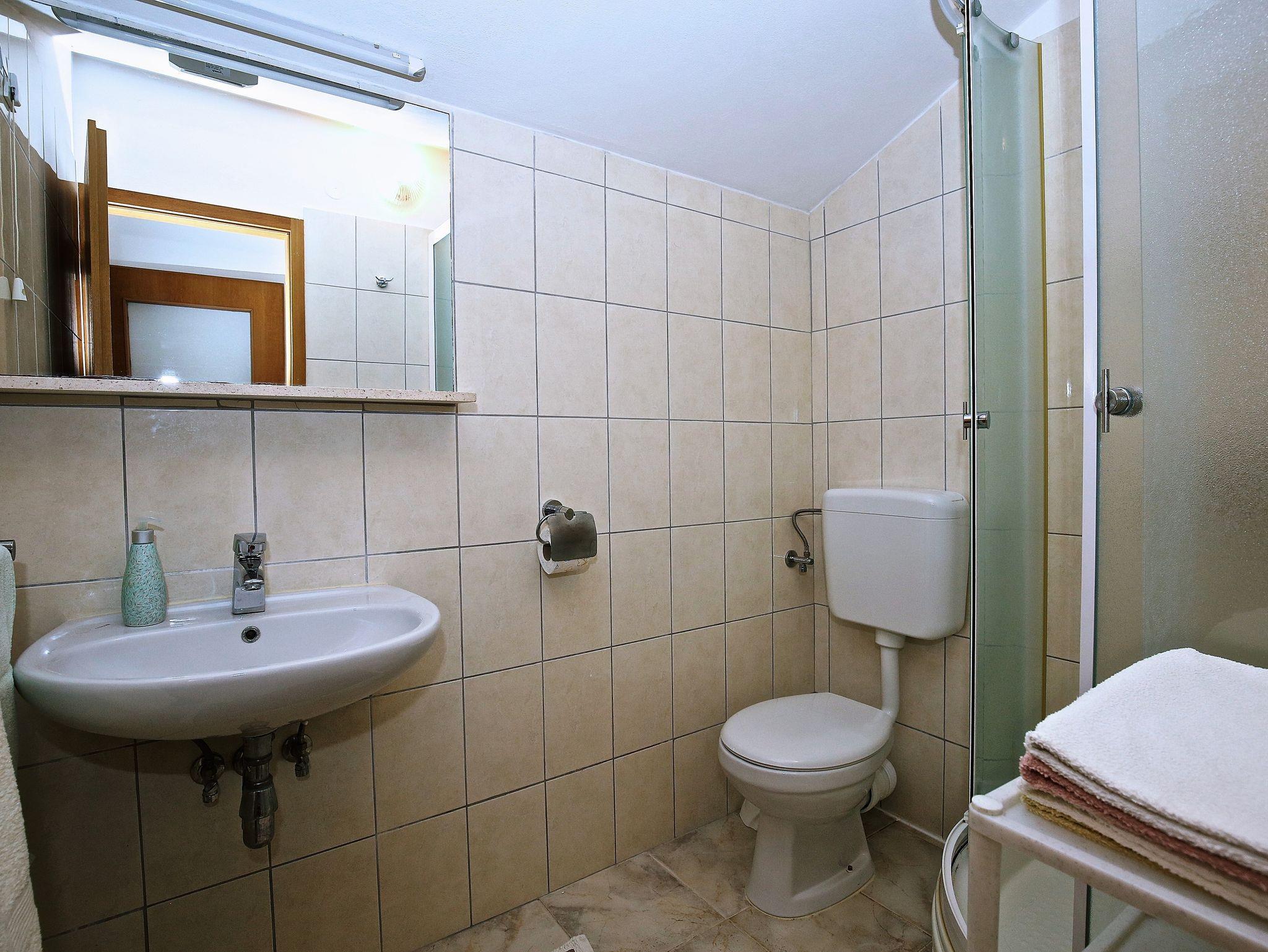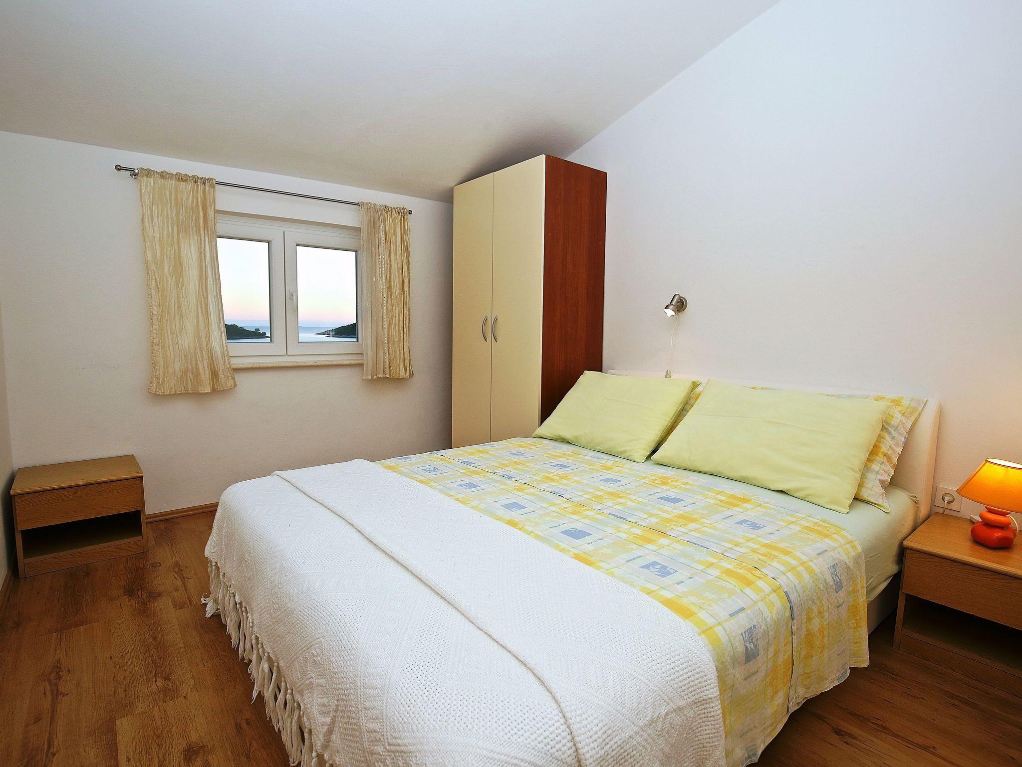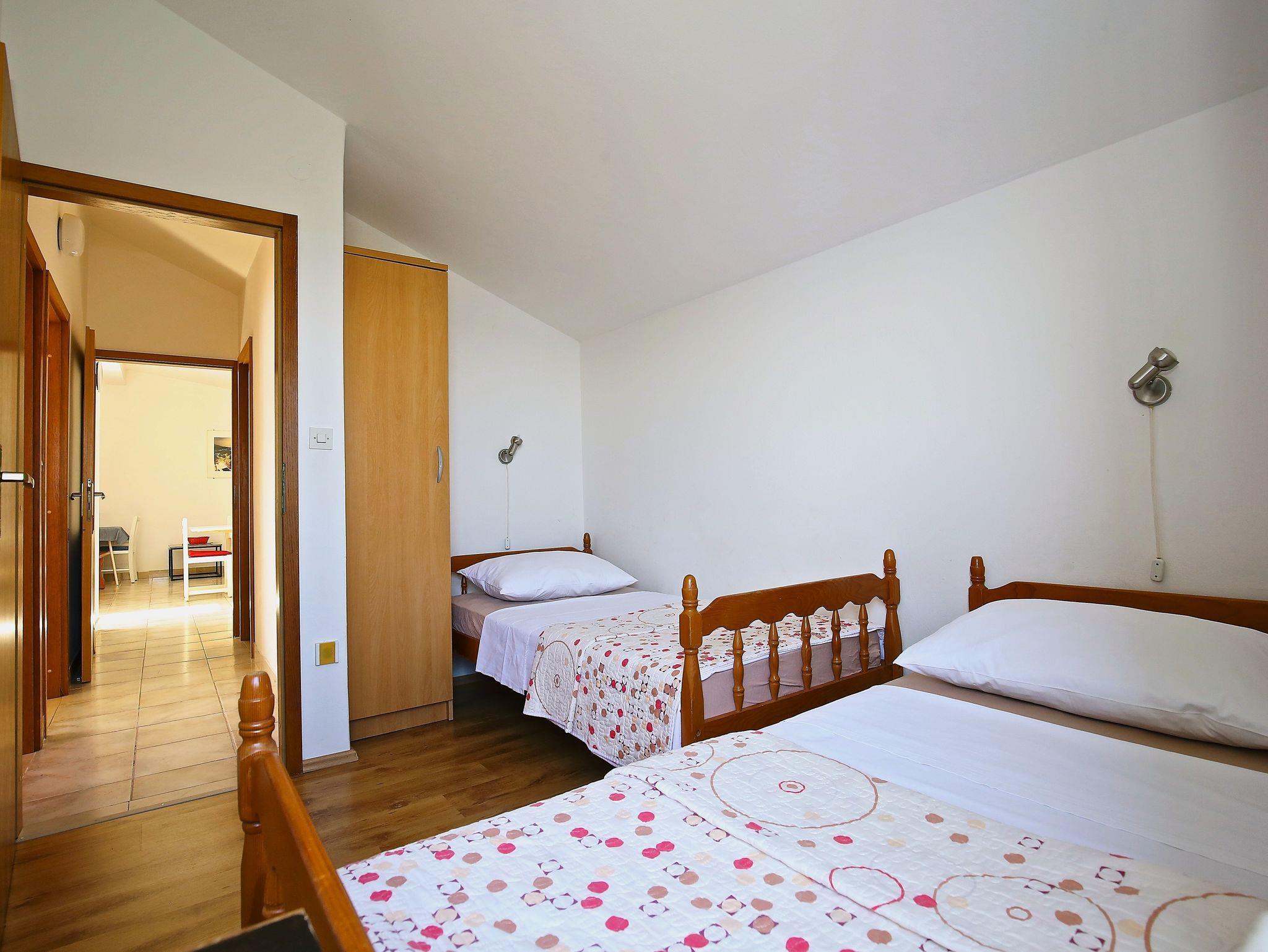 Ferienwohnung bietet Platz für 8 Gäste. Die Betten sind in Schlafzimmern, die es 4 gibt, innerhalb einer Gesamtfläche von 74m2, angeordnet. Die Gäste haben eine eigene Terrasse zur Verfügung, auf der sie in warmen Sommernächten genießen können. Das Apartment bietet Meerblick. Es ist erlaubt, Speisen auf dem Gemeinschafts-Grill vorzubereiten. In der Unterkunftseinheit besteht die Möglichkeit des Mitbringens von Haustieren gegen Aufpreis. In der gebuchten Unterkunftseinheit zahlt man am Ort ein Depositum ( der Preis ist an der Internetseite angeführt ). IM PREIS INBEGRIFFEN: Kurtaxe, Endreinigung, Klimatisierung, Parkplatz, Internet, Wäschewaschen, Bootsanlegeplatz, Kinderbett, Bügeleisen, Bügelbrett. VERBINDLICHE ZUSÄTZLICHE KOSTEN: Kaution (100,00 € Einmalzahlung), Aufzahlung für Kurzaufenthalte (prozentualer Zuschlag pro Nächtigungsanzahl: 30% - 1, 20% - 2, 10% - 3). UNVERBINDLICHE ZUSÄTZLICHE KOSTEN: Haustiere (7,00 € pro Nacht). Die Verfügbarkeit zusätzlicher Dienstleistungen in Ihrem reservierten Termin und die Preise derselben (falls nicht aufgeführt) müssen im Voraus überprüft werden. Zusätzliche Dienstleistungen die in der Zahlungsaufforderung nicht aufgeführt sind werden direkt beim Vermieter bezahlt, angenommen der Gast nutzt auch diese. Ermäßigung auf den Grundpreis: Gratistag 14=13 (bei einem Aufenthalt von 14 Tagen oder mehr erhalten Sie einen Gratistag für den Aufenthalt bis 31.12.26).