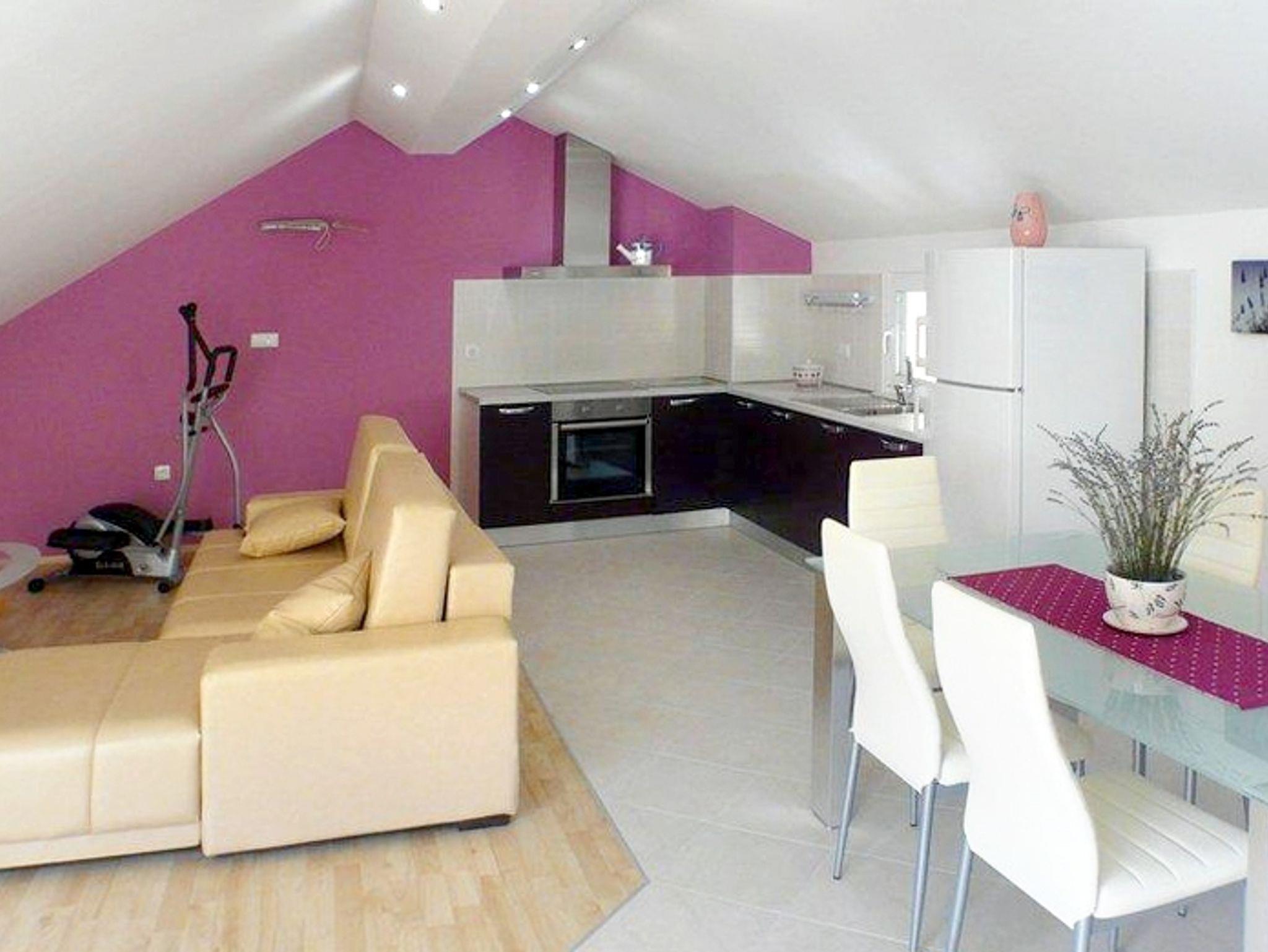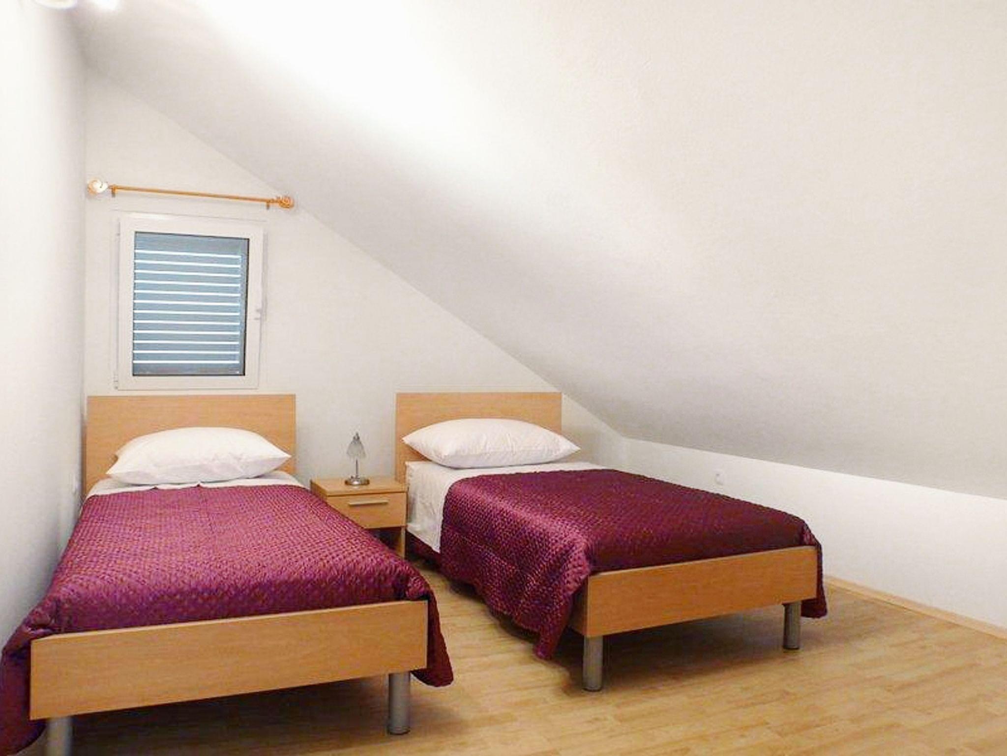 Ferienwohnung bietet Platz für 5 Gäste. Die Betten sind in Schlafzimmern, die es 2 gibt, und in Wohnzimmer, innerhalb einer Gesamtfläche von 81m2, angeordnet. Die Gäste haben eine eigene Terrasse zur Verfügung, auf der sie in warmen Sommernächten genießen können. Das Apartment bietet Meerblick. Es ist erlaubt, Speisen auf dem Gemeinschafts-Grill vorzubereiten. IM PREIS INBEGRIFFEN: Kurtaxe, Endreinigung, Klimatisierung, Parkplatz, Internet, Wäschewaschen, Bootsanlegeplatz, Bügeleisen, Bügelbrett, Föhn. VERBINDLICHE ZUSÄTZLICHE KOSTEN: Aufzahlung für Kurzaufenthalte (prozentualer Zuschlag pro Nächtigungsanzahl: 30% - 1, 20% - 2, 10% - 3). Die Verfügbarkeit zusätzlicher Dienstleistungen in Ihrem reservierten Termin und die Preise derselben (falls nicht aufgeführt) müssen im Voraus überprüft werden. Zusätzliche Dienstleistungen die in der Zahlungsaufforderung nicht aufgeführt sind werden direkt beim Vermieter bezahlt, angenommen der Gast nutzt auch diese. Ermäßigung auf den Grundpreis: Aktion (erzielen Sie während der Buchung zusätzliche Ermäßigung von 10%).