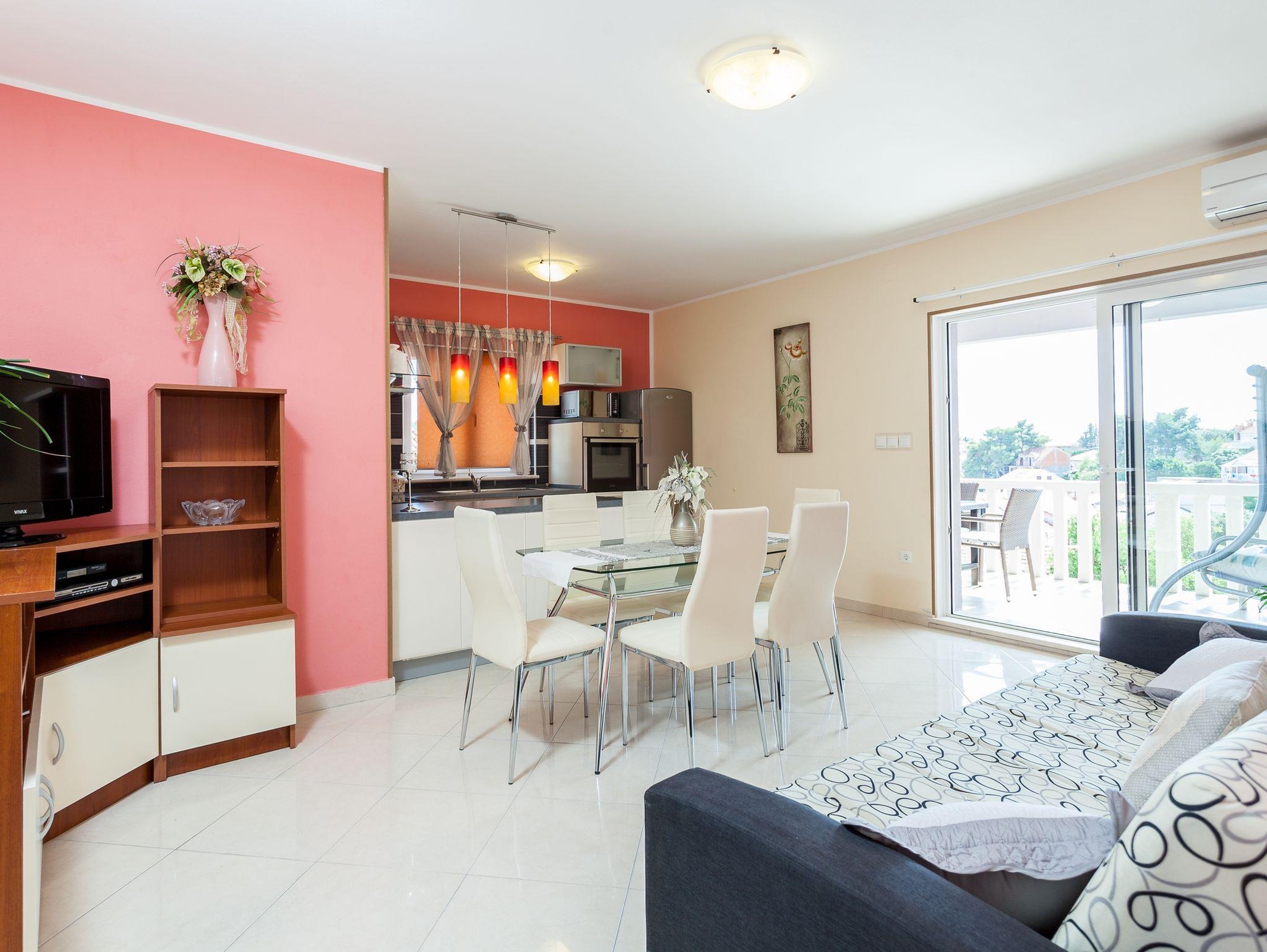 Ferienwohnung bietet Platz für 10 Gäste. Die Betten sind in Schlafzimmern, die es 3 gibt, und in Wohnzimmer, innerhalb einer Gesamtfläche von 101m2, angeordnet. Die Gäste haben eine eigene Terrasse zur Verfügung, auf der sie in warmen Sommernächten genießen können. Das Apartment bietet Meerblick. Es ist erlaubt, Speisen auf dem Gemeinschafts-Grill vorzubereiten. IM PREIS INBEGRIFFEN: Kurtaxe, Endreinigung, Klimatisierung, Parkplatz, Garage, Internet, Kinderbett, Bügeleisen, Bügelbrett, Föhn. Die Verfügbarkeit zusätzlicher Dienstleistungen in Ihrem reservierten Termin und die Preise derselben (falls nicht aufgeführt) müssen im Voraus überprüft werden. Zusätzliche Dienstleistungen die in der Zahlungsaufforderung nicht aufgeführt sind werden direkt beim Vermieter bezahlt, angenommen der Gast nutzt auch diese.